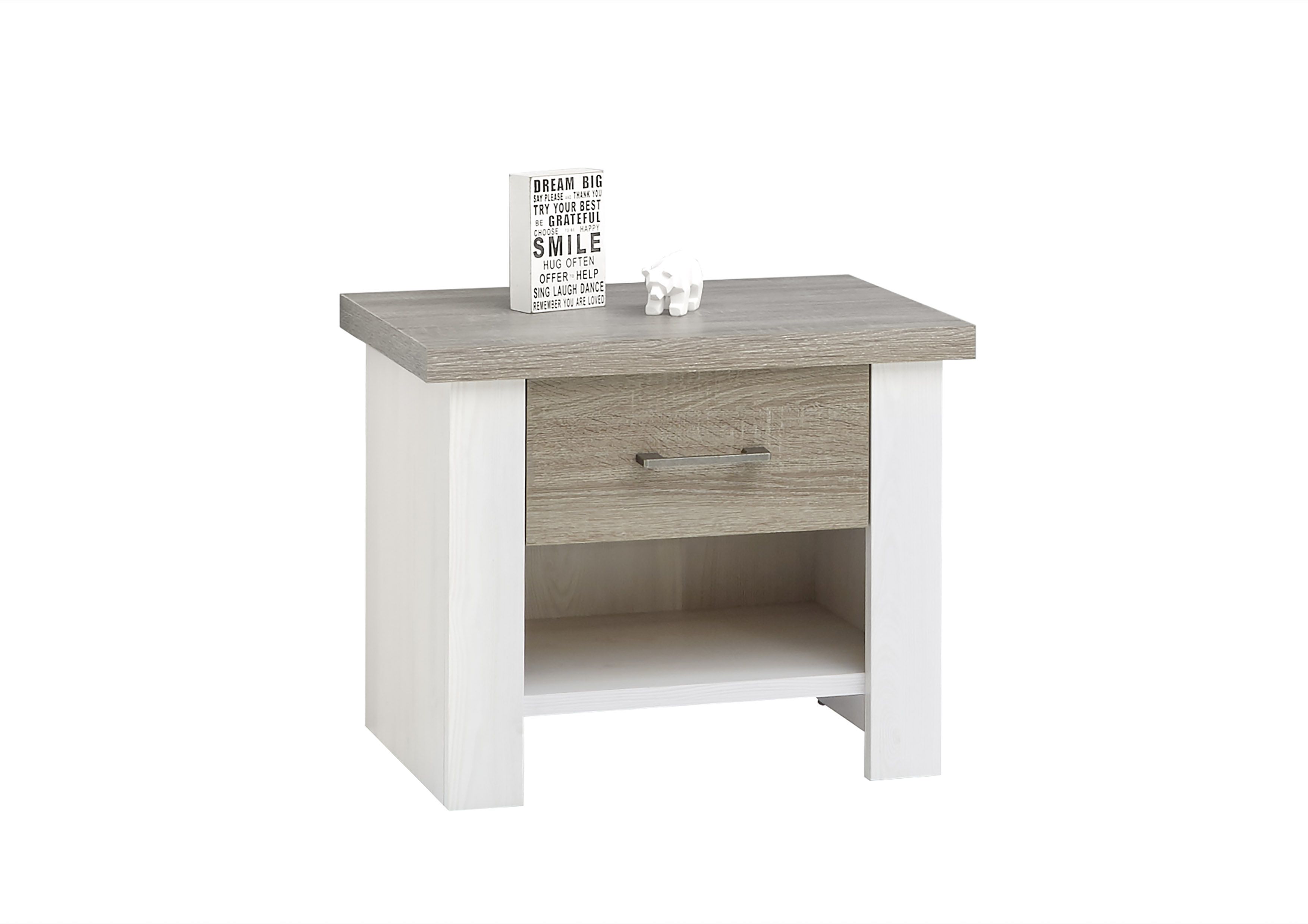 LUCA KOMFORT Eleganter Nachttisch im Landhausstil - Stilvoller Nachtschrank mit Schubladen in Pinie Weiß / Trüffel für Ihr Bett - 60 x 49 x 42 cm (B/H/T)