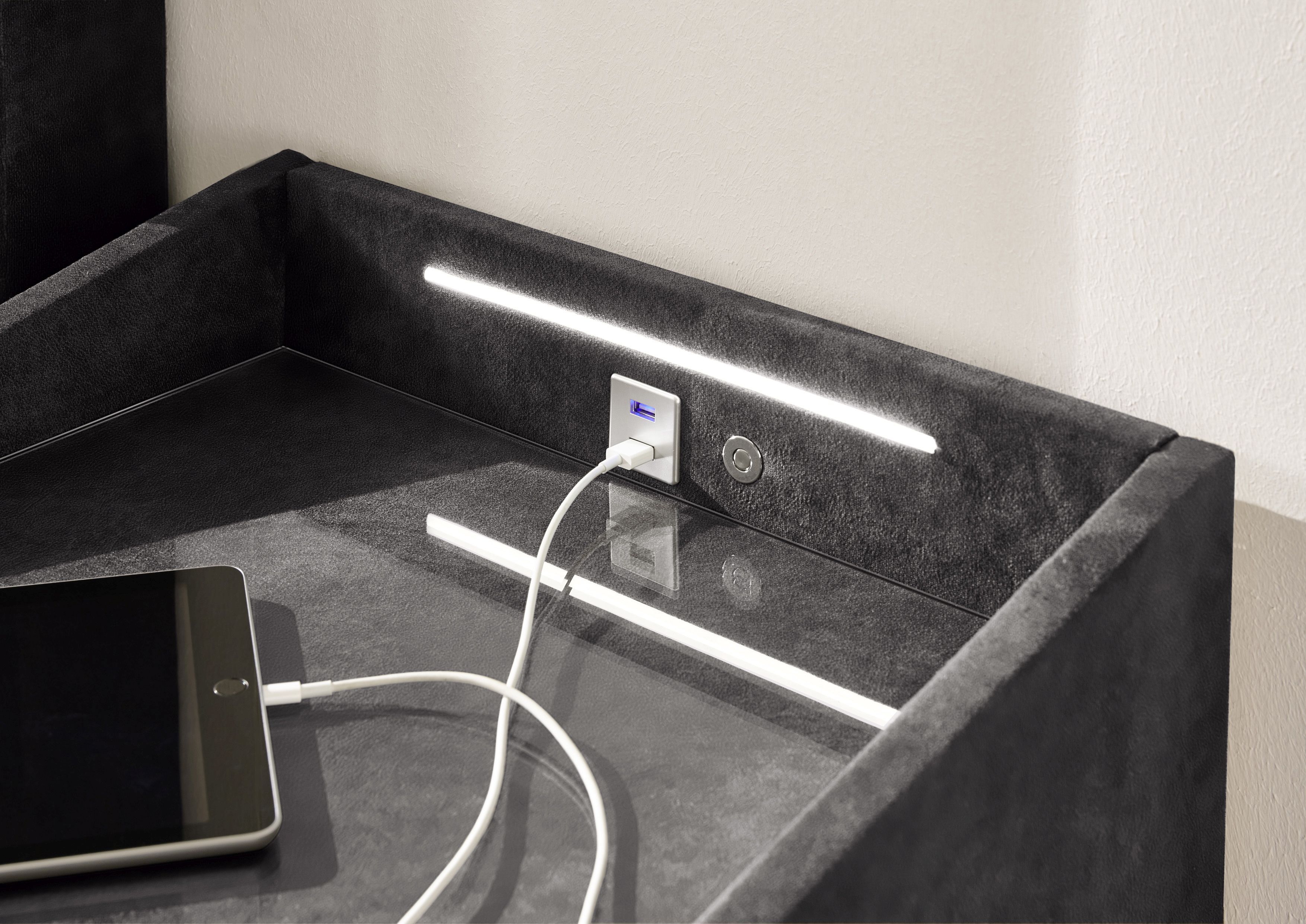 Ausstattung Kommoden Phono Büro Regal: | Glasplatte, Schublade(n), inkl. Beleuchtung, inkl. USB-Anschluss |