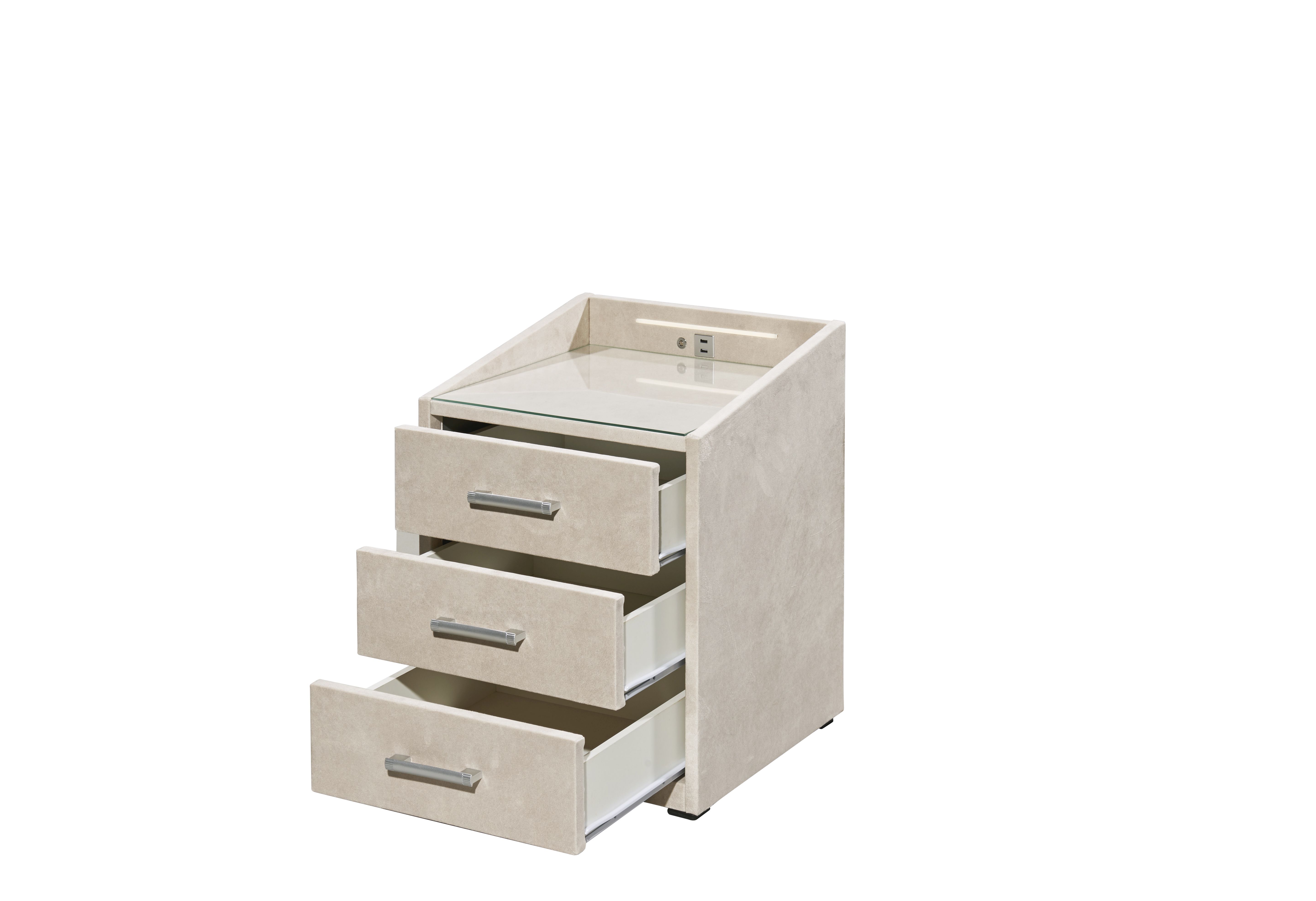 | Ausstattung Kommoden Phono Büro Regal: | Glasplatte, Schublade(n), inkl. Beleuchtung, inkl. USB-Anschluss | ||