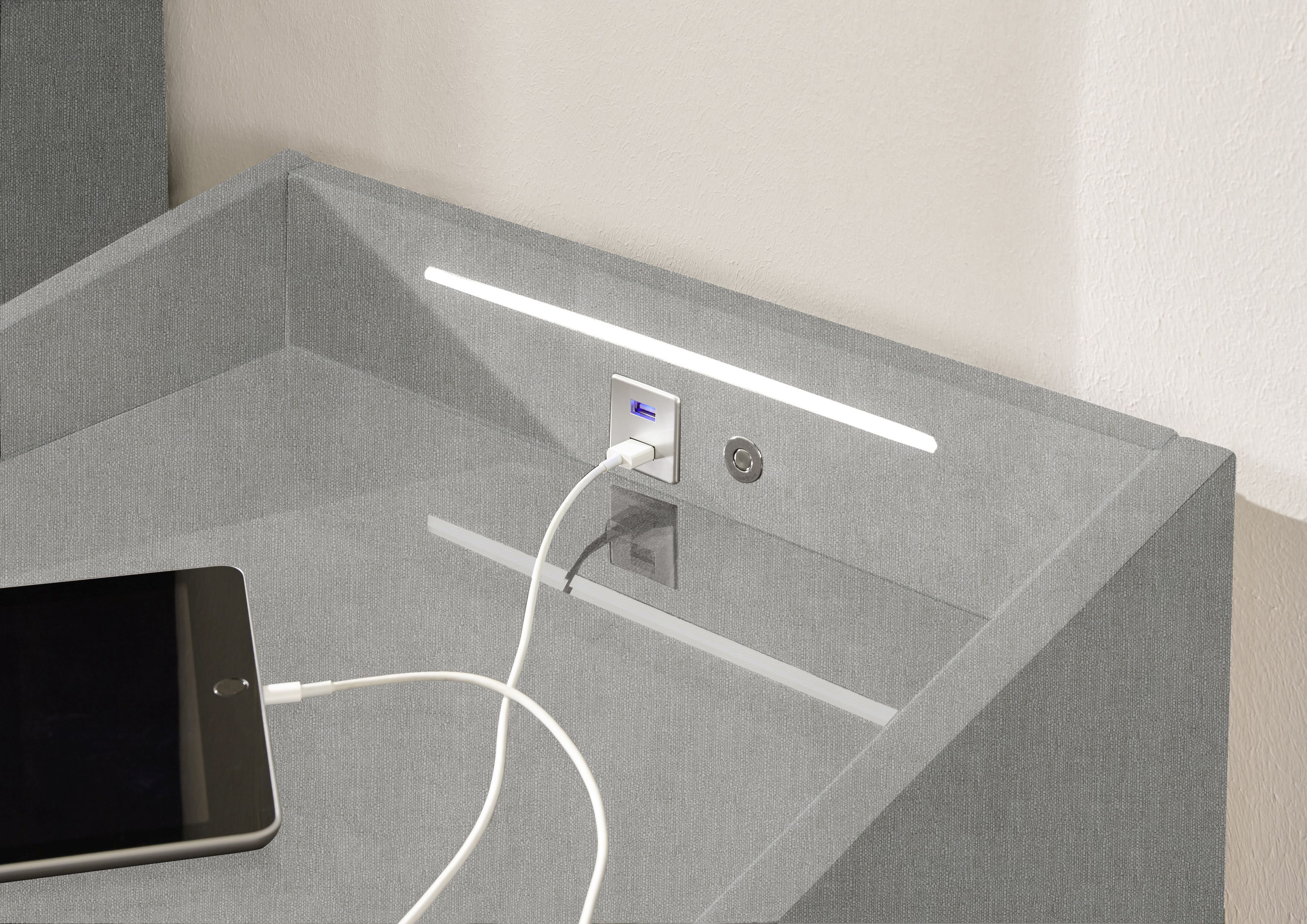 | Ausstattung Kommoden Phono Büro Regal: | Glasplatte, Schublade(n), inkl. Beleuchtung, inkl. USB-Anschluss | ||