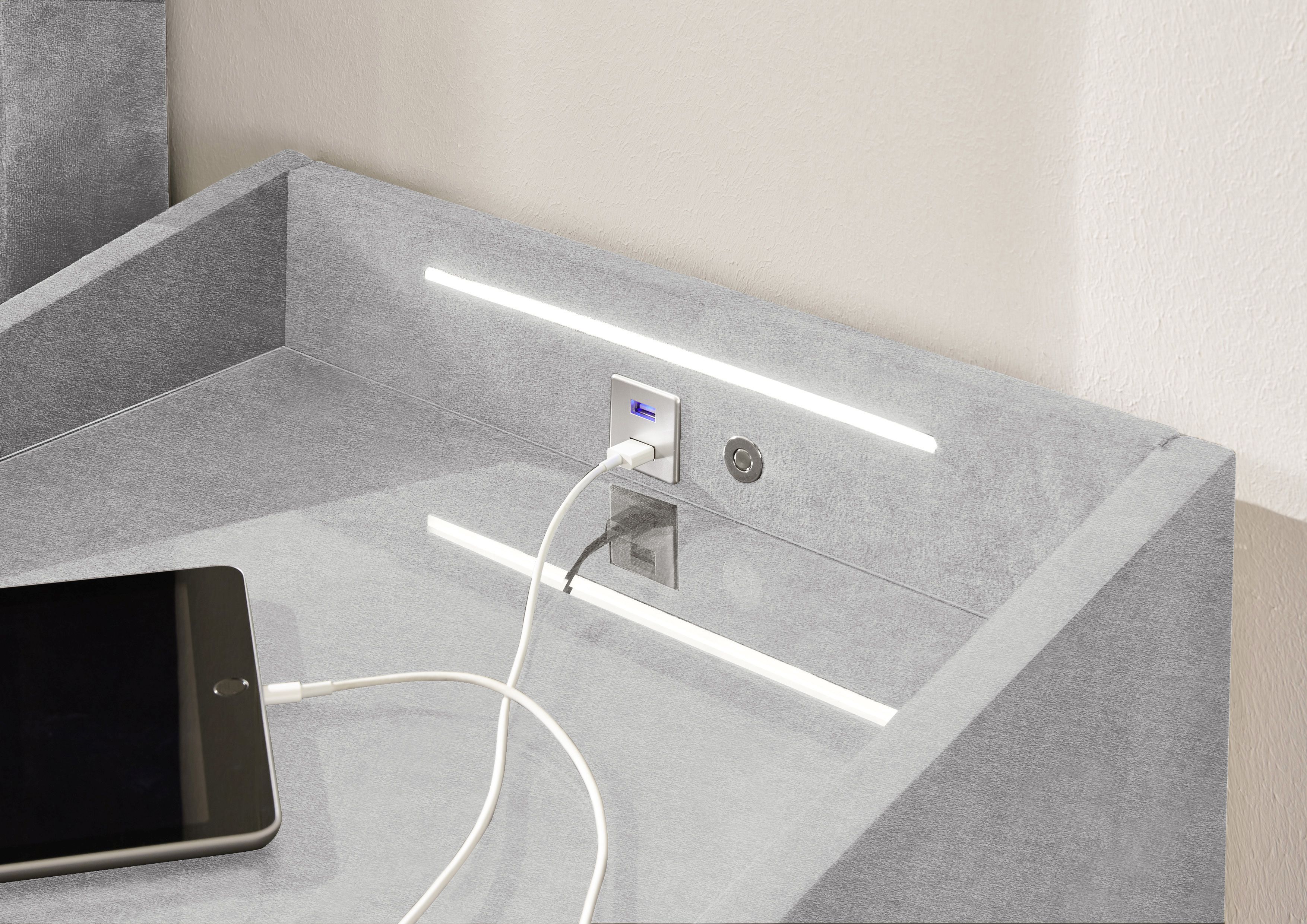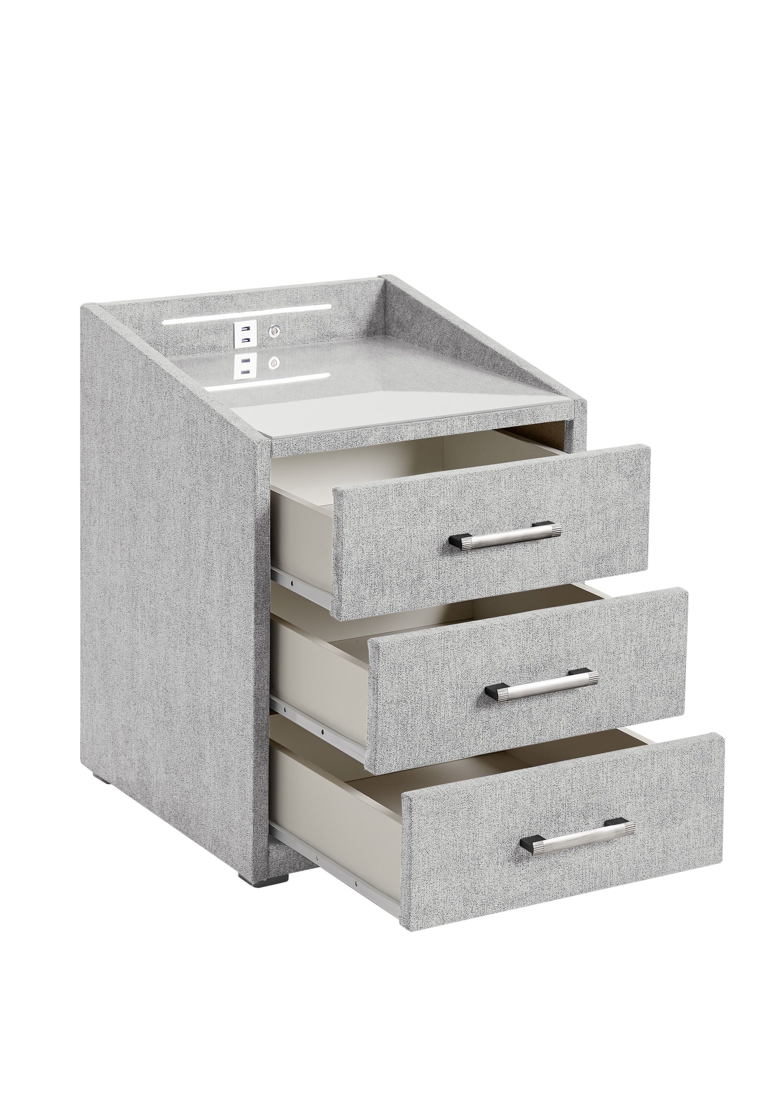 | Ausstattung Kommoden Phono Büro Regal: | Glasplatte, Schublade(n), inkl. Beleuchtung, inkl. USB-Anschluss | ||