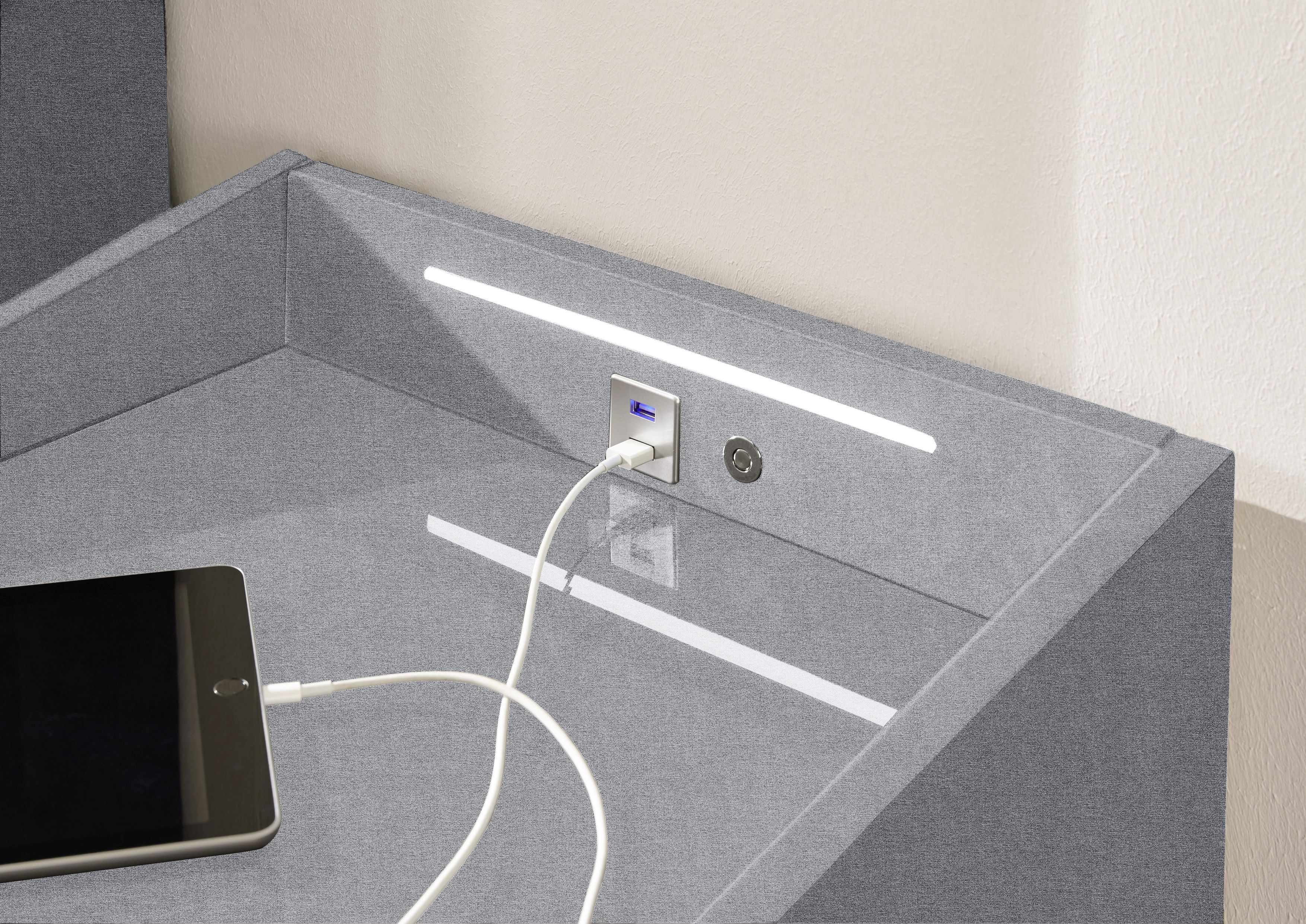 | Ausstattung Kommoden Phono Büro Regal: | Glasplatte, Schublade(n), inkl. Beleuchtung, inkl. USB-Anschluss | ||