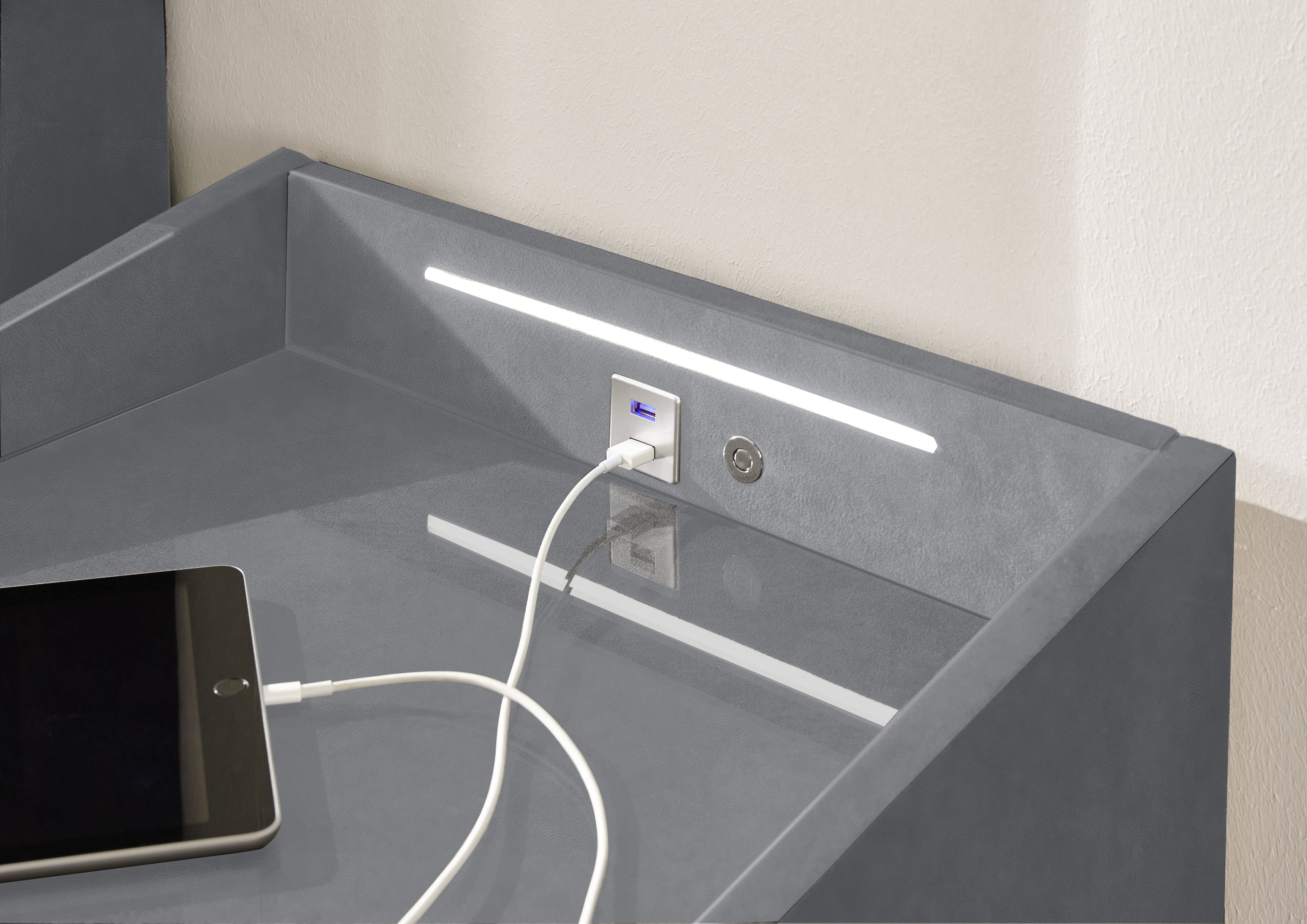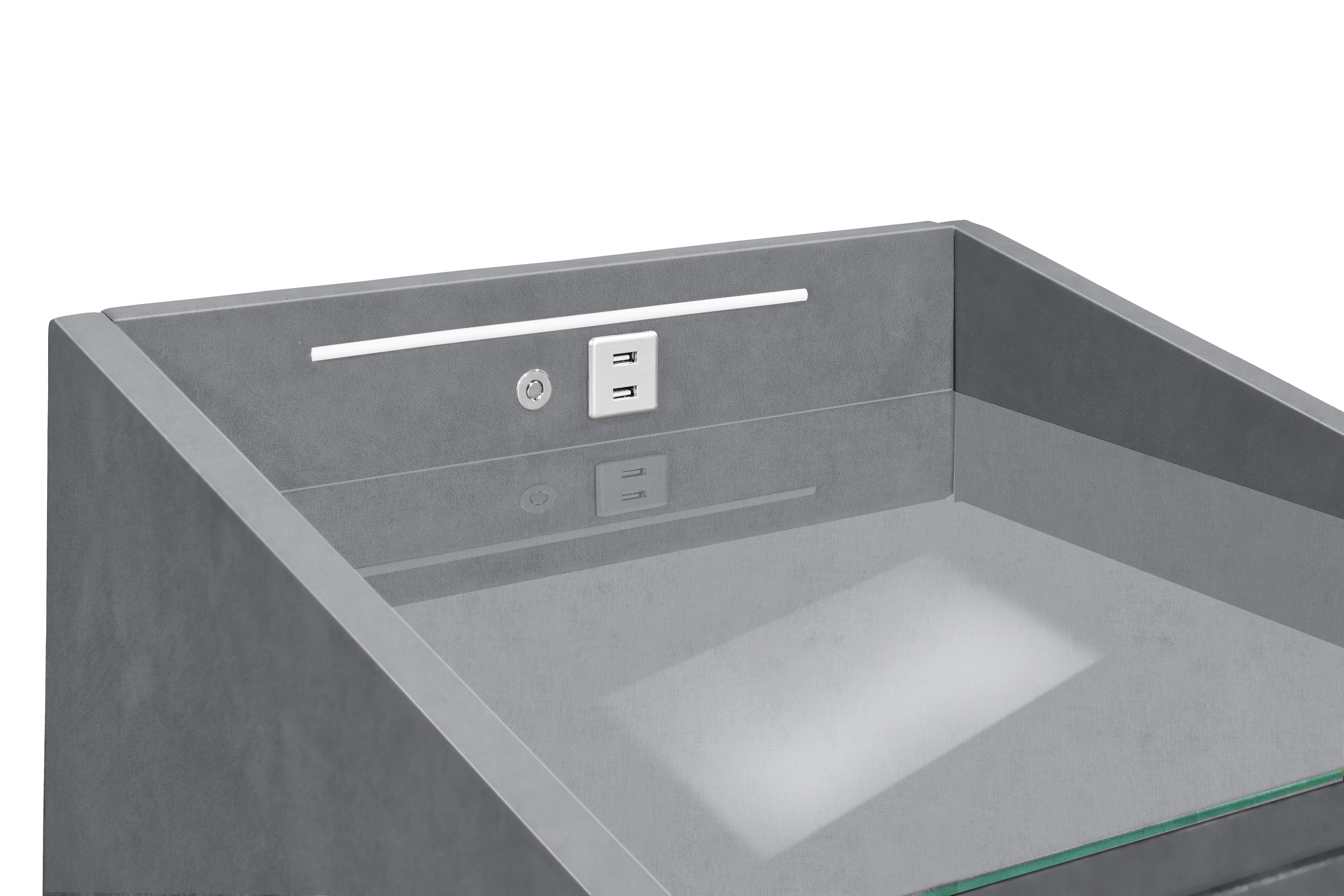 | Ausstattung Kommoden Phono Büro Regal: | Glasplatte, Schublade(n), inkl. Beleuchtung, inkl. USB-Anschluss | ||