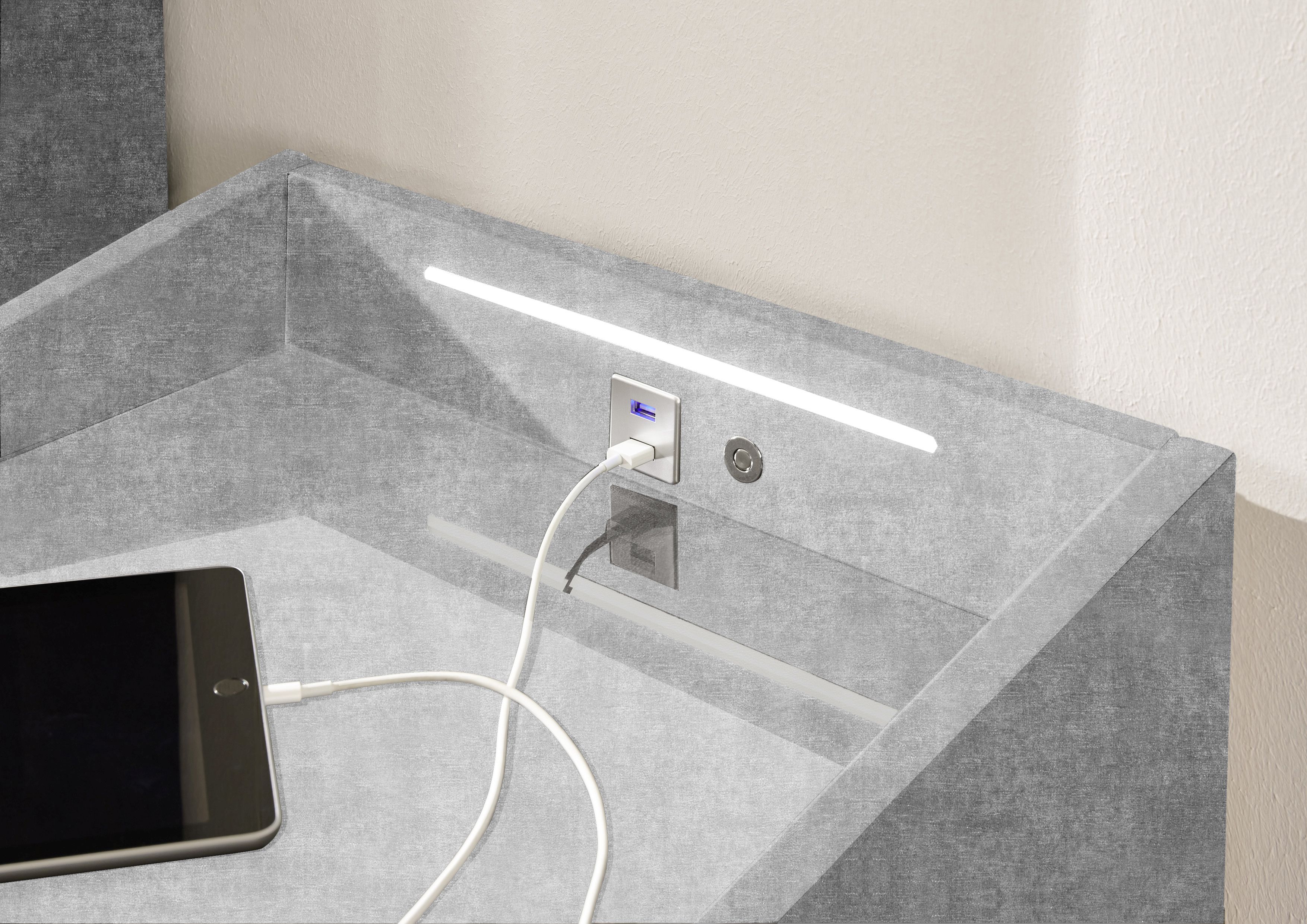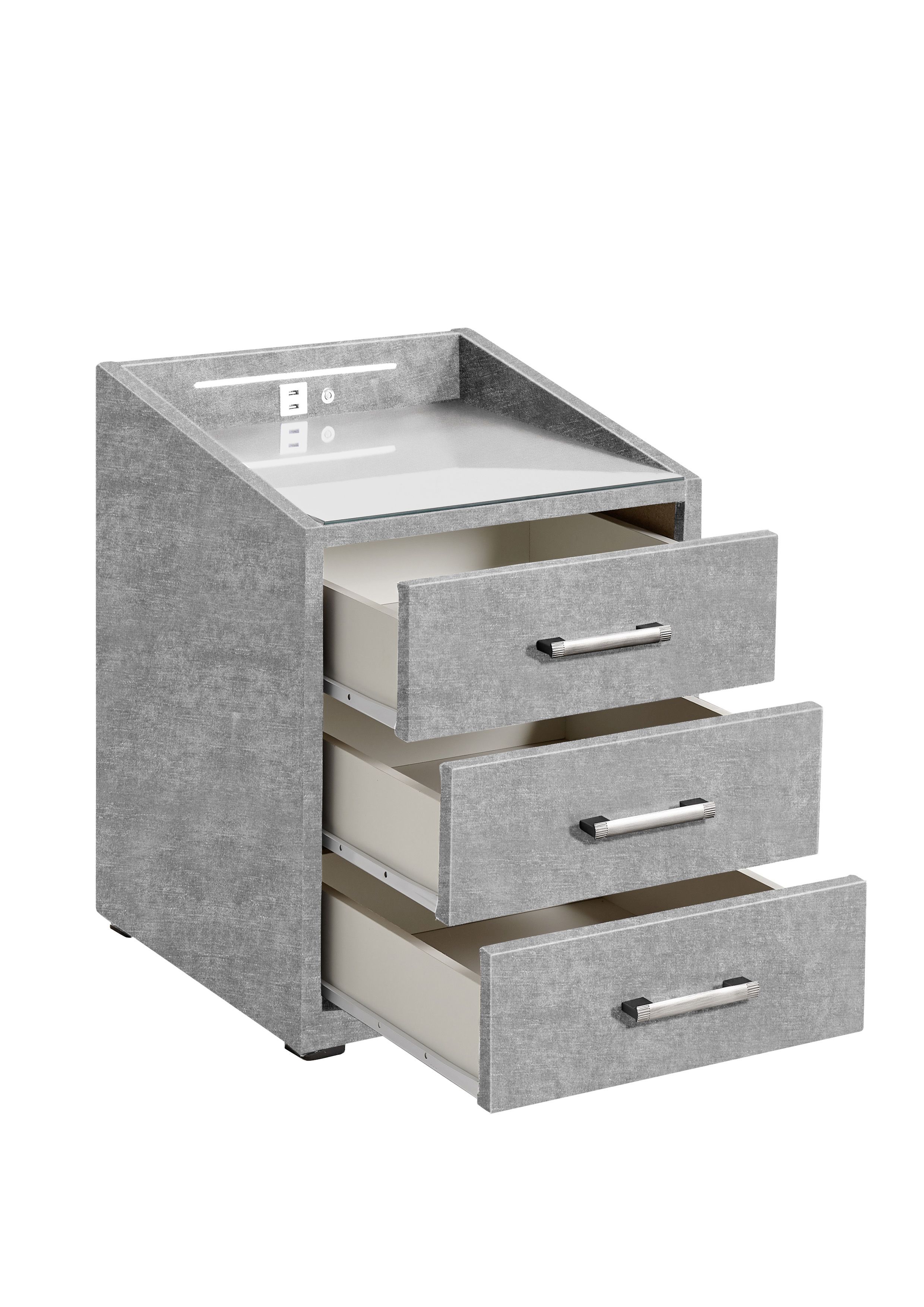 | Ausstattung Kommoden Phono Büro Regal: | Glasplatte, Schublade(n), inkl. Beleuchtung, inkl. USB-Anschluss | ||