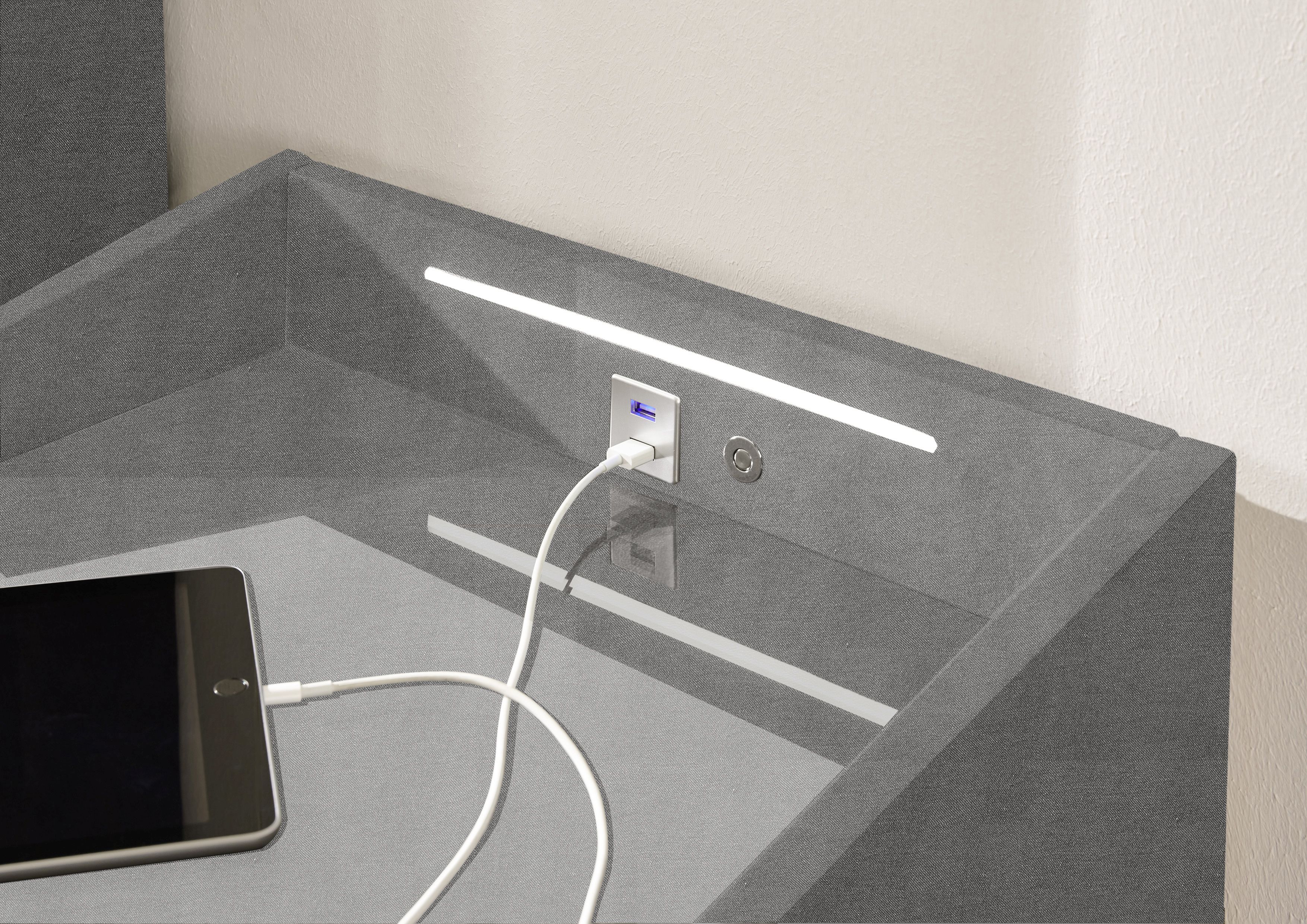 | Ausstattung Kommoden Phono Büro Regal: | Glasplatte, Schublade(n), inkl. Beleuchtung, inkl. USB-Anschluss | ||