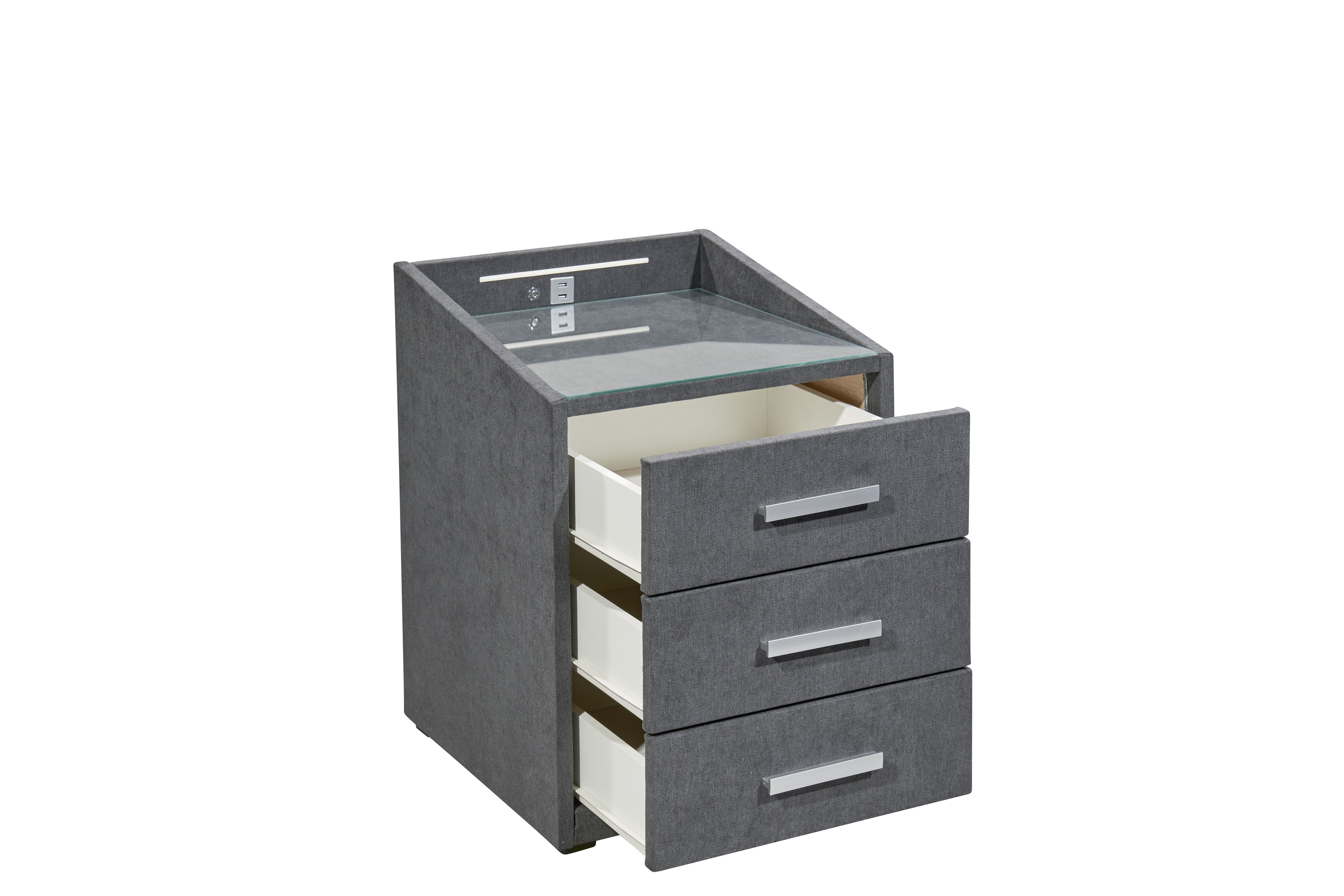| Ausstattung Kommoden Phono Büro Regal: | Glasplatte, Schublade(n), inkl. Beleuchtung, inkl. USB-Anschluss | ||