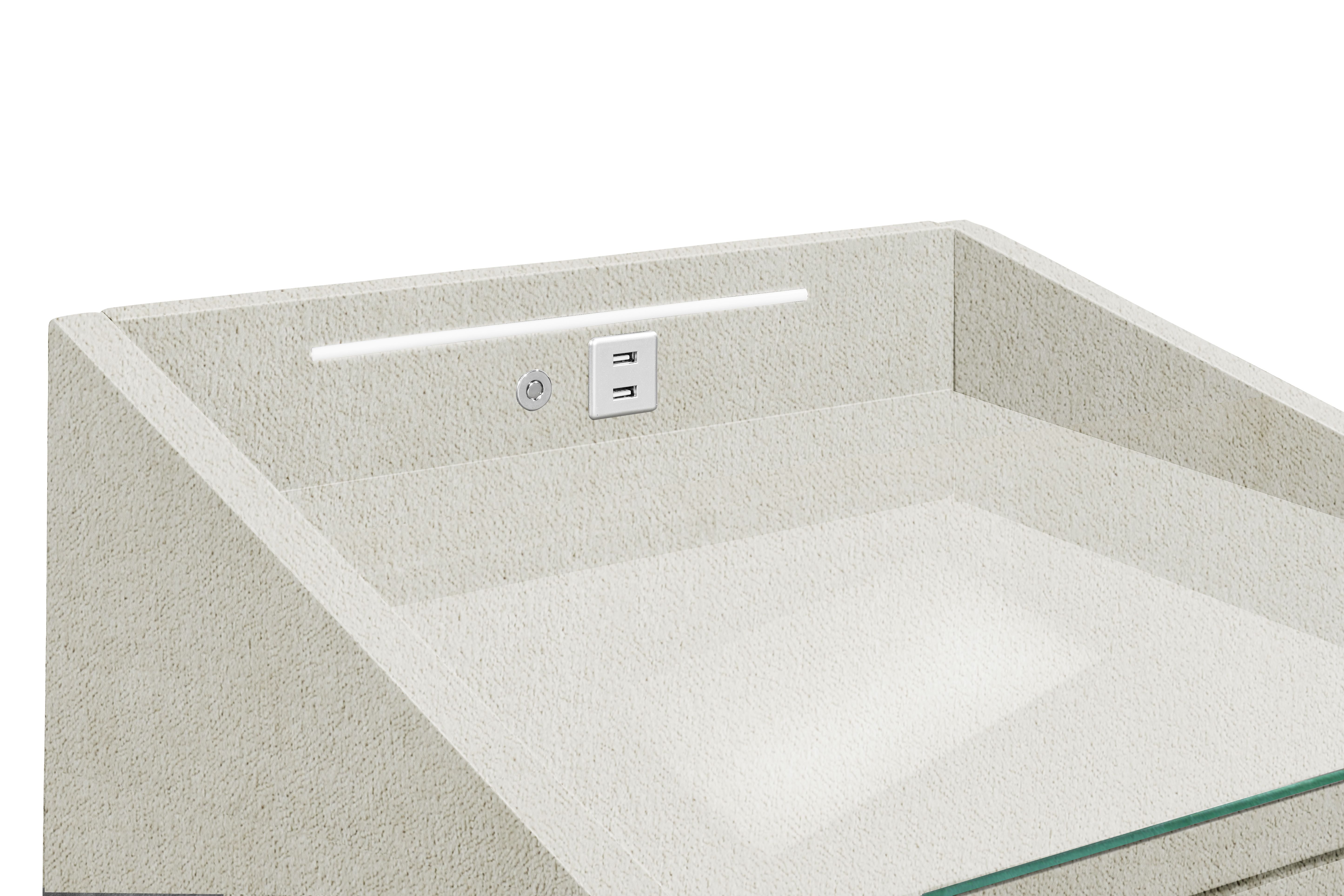| Ausstattung Kommoden Phono Büro Regal: | Glasplatte, Schublade(n), inkl. Beleuchtung, inkl. USB-Anschluss | ||