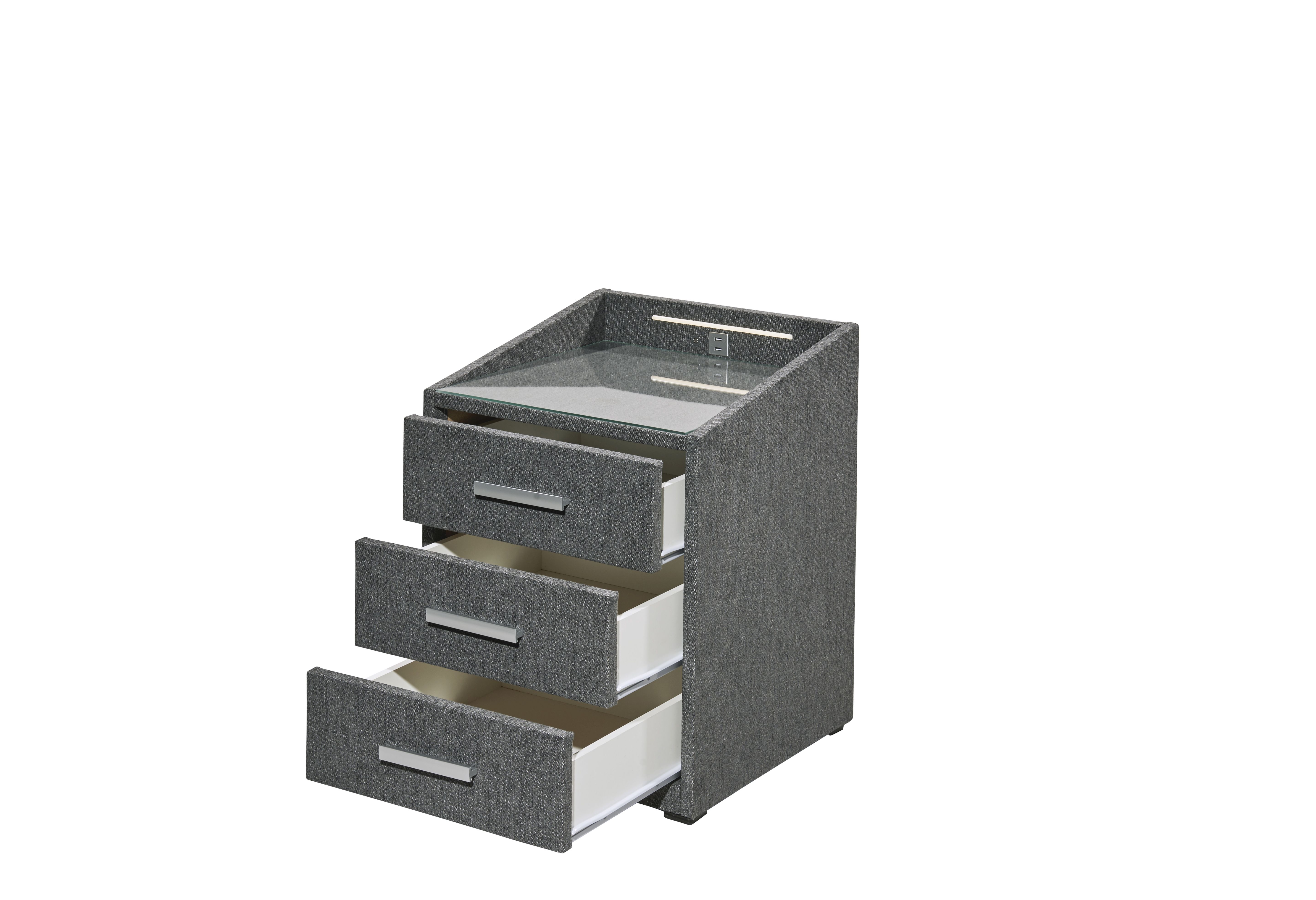 | Ausstattung Kommoden Phono Büro Regal: | Glasplatte, Schublade(n), inkl. Beleuchtung, inkl. USB-Anschluss | ||