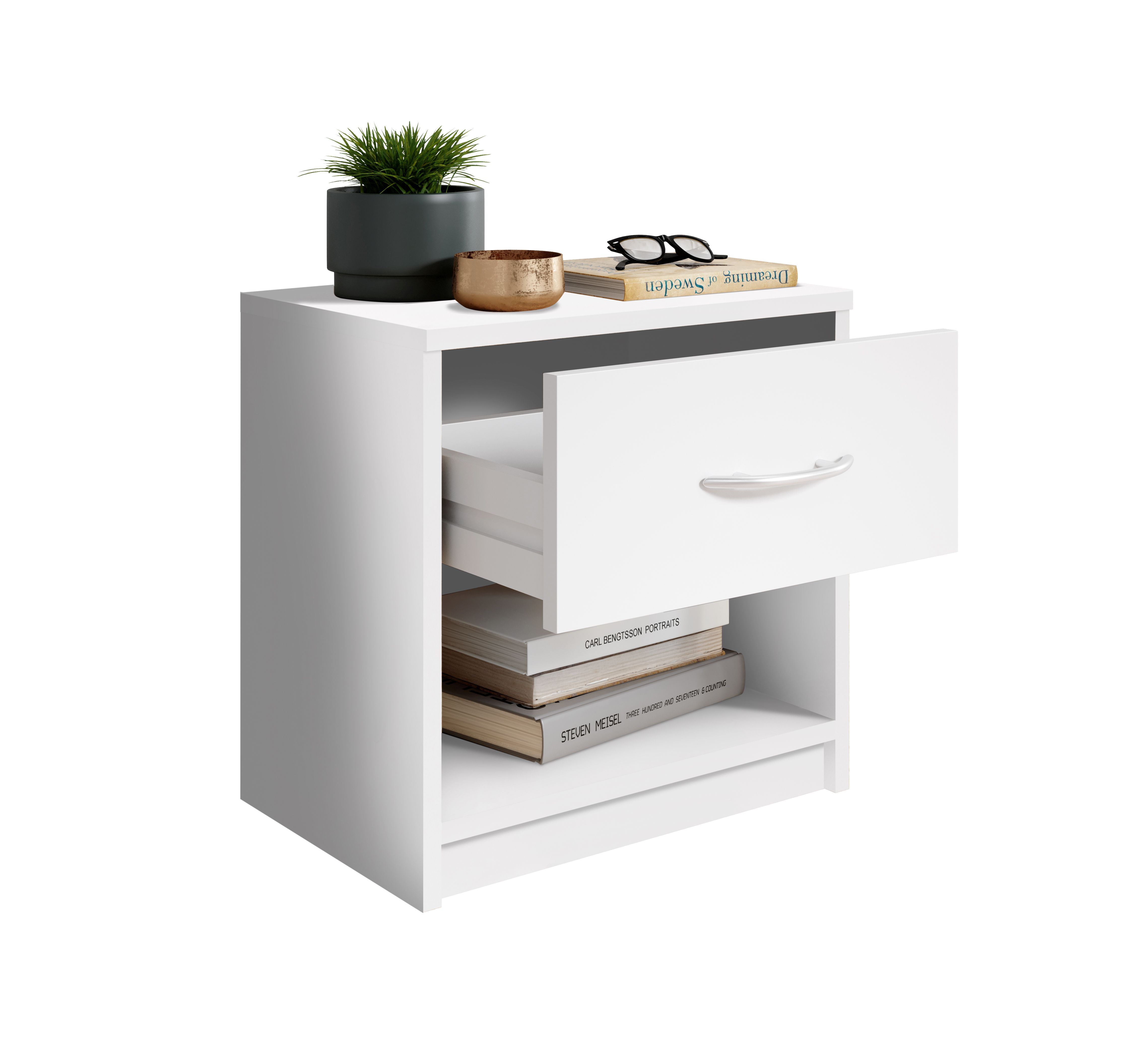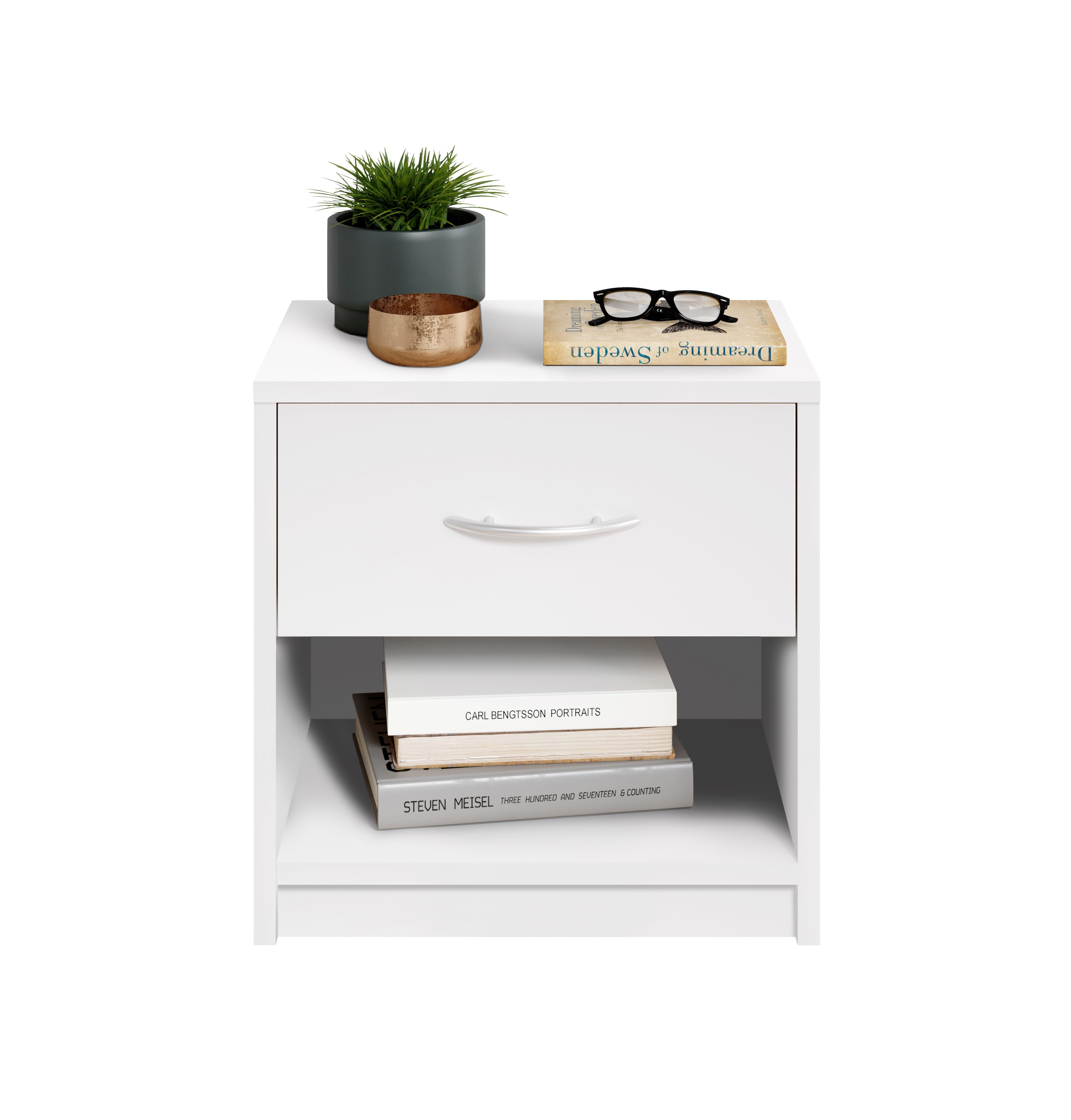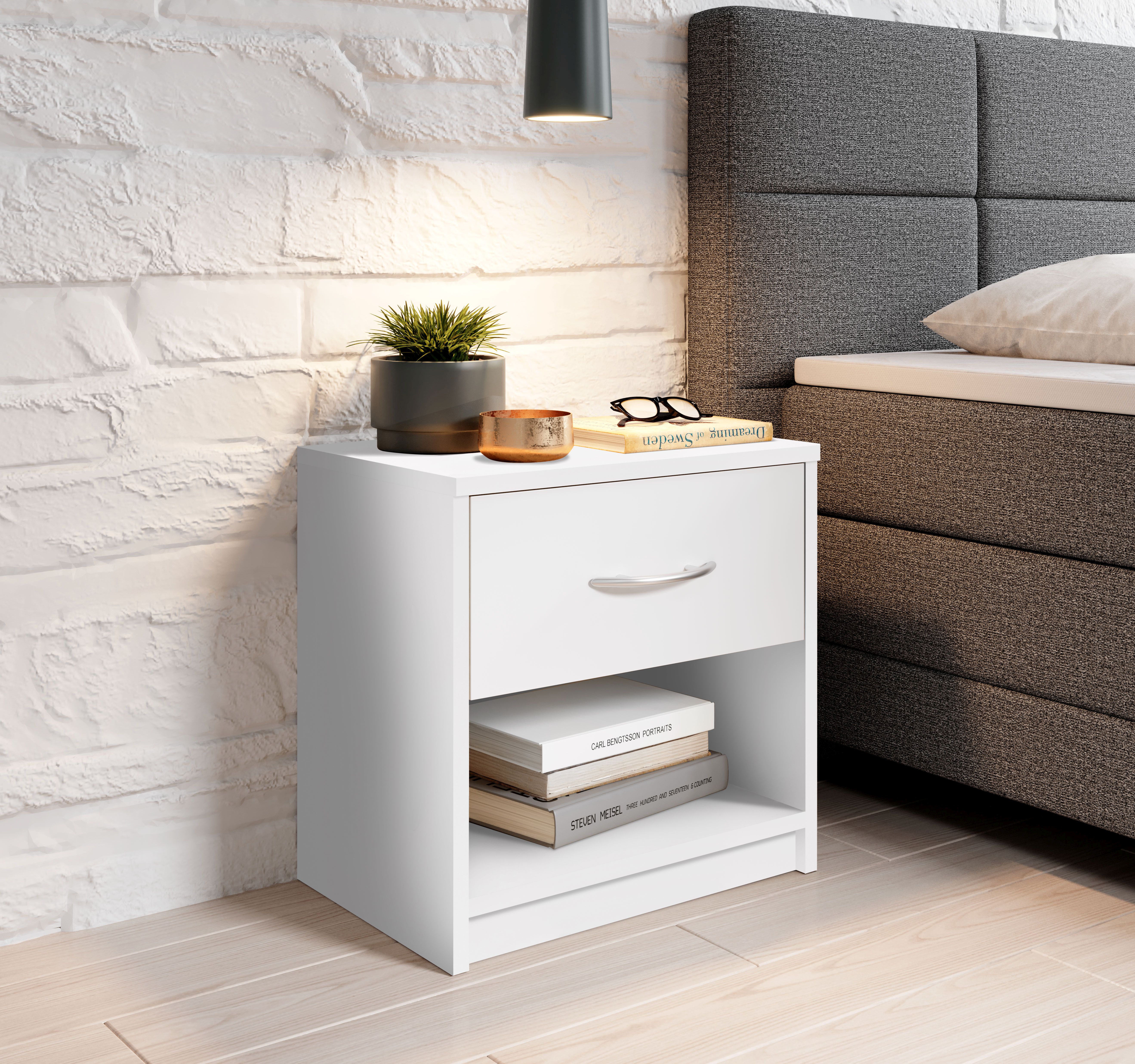 PEPE Nachttisch Weiß - Schlichter Nachtschrank mit einer Schublade passend zu jedem Bett & Schlafzimmer - 39 x 41 x 28 cm (B/H/T)