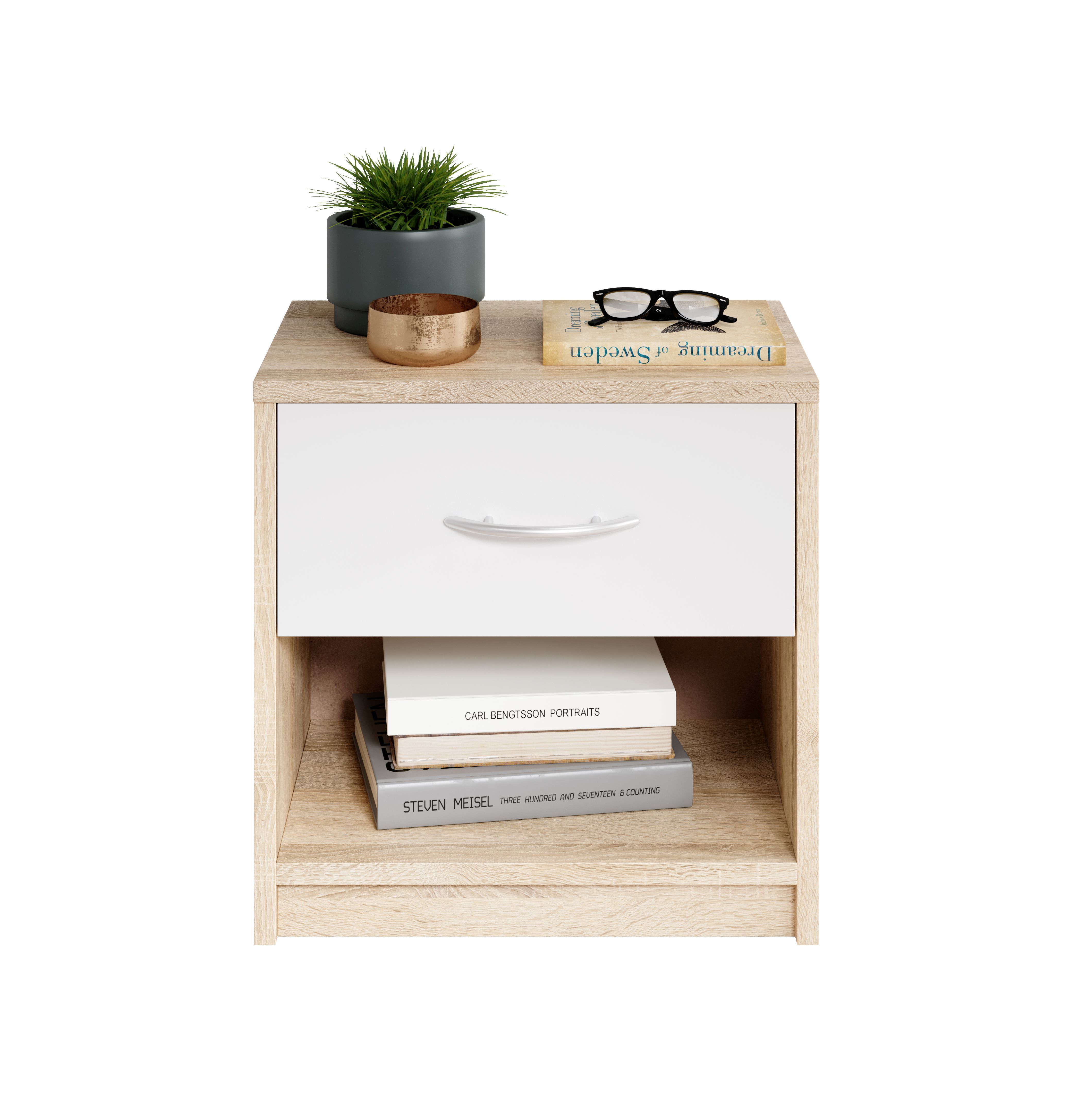 Front: Eiche Sonoma Holznachbildung mit einem Schubkasten in weiß