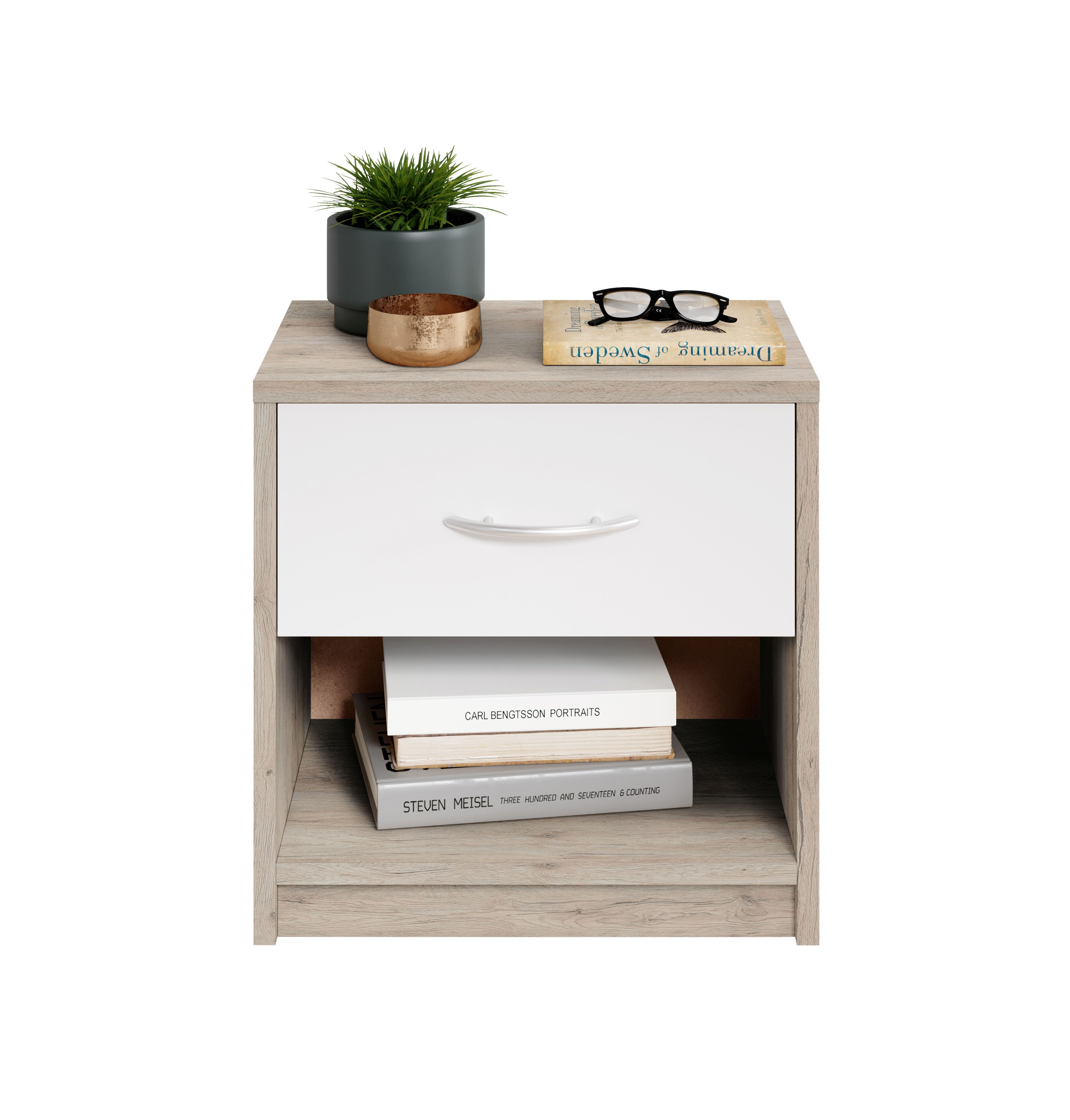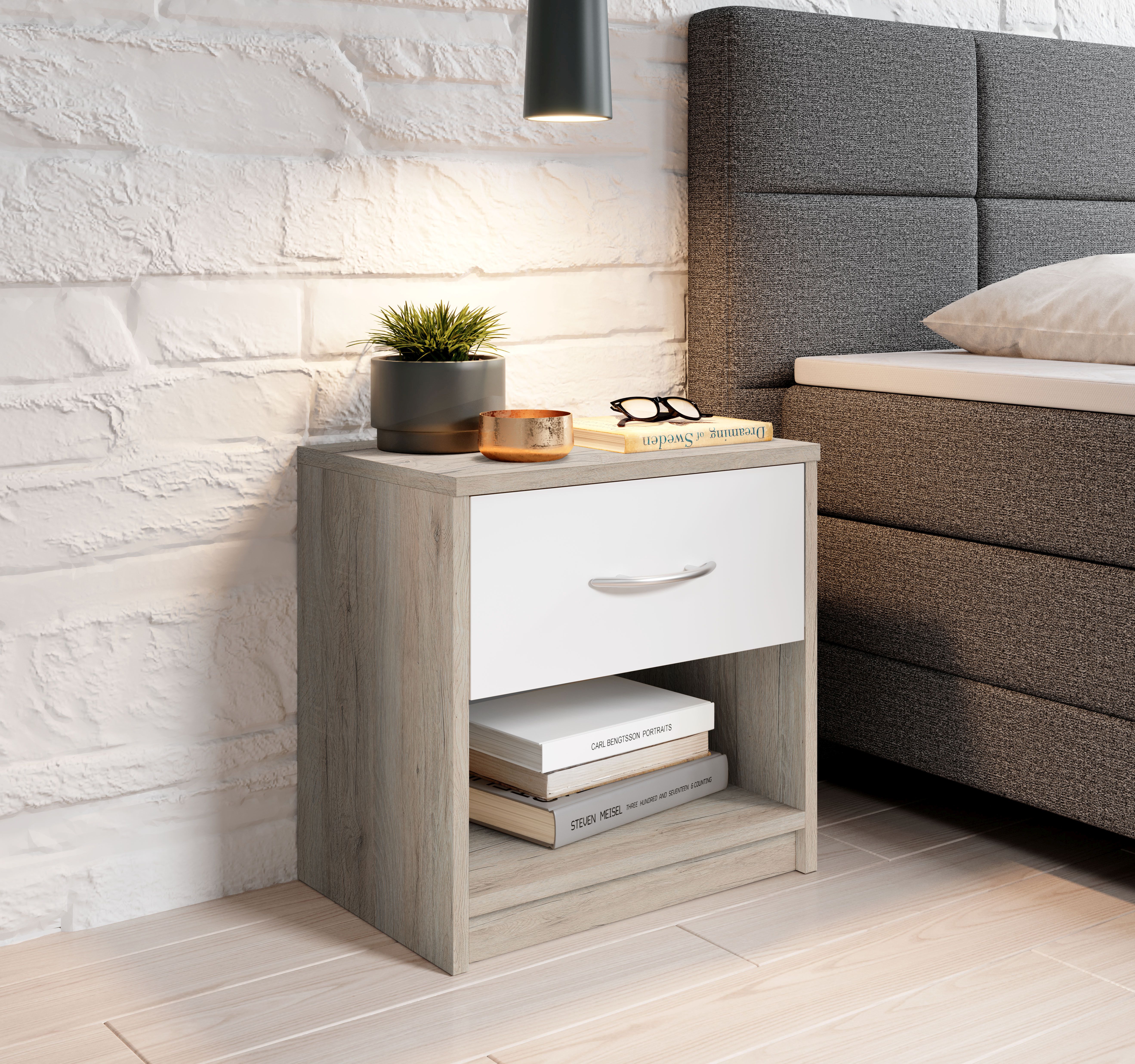 PEPE Nachttisch in San Remo Optik, Weiß - Schlichter Nachtschrank mit einer Schublade passend zu jedem Bett & Schlafzimmer - 39 x 41 x 28 cm (B/H/T)