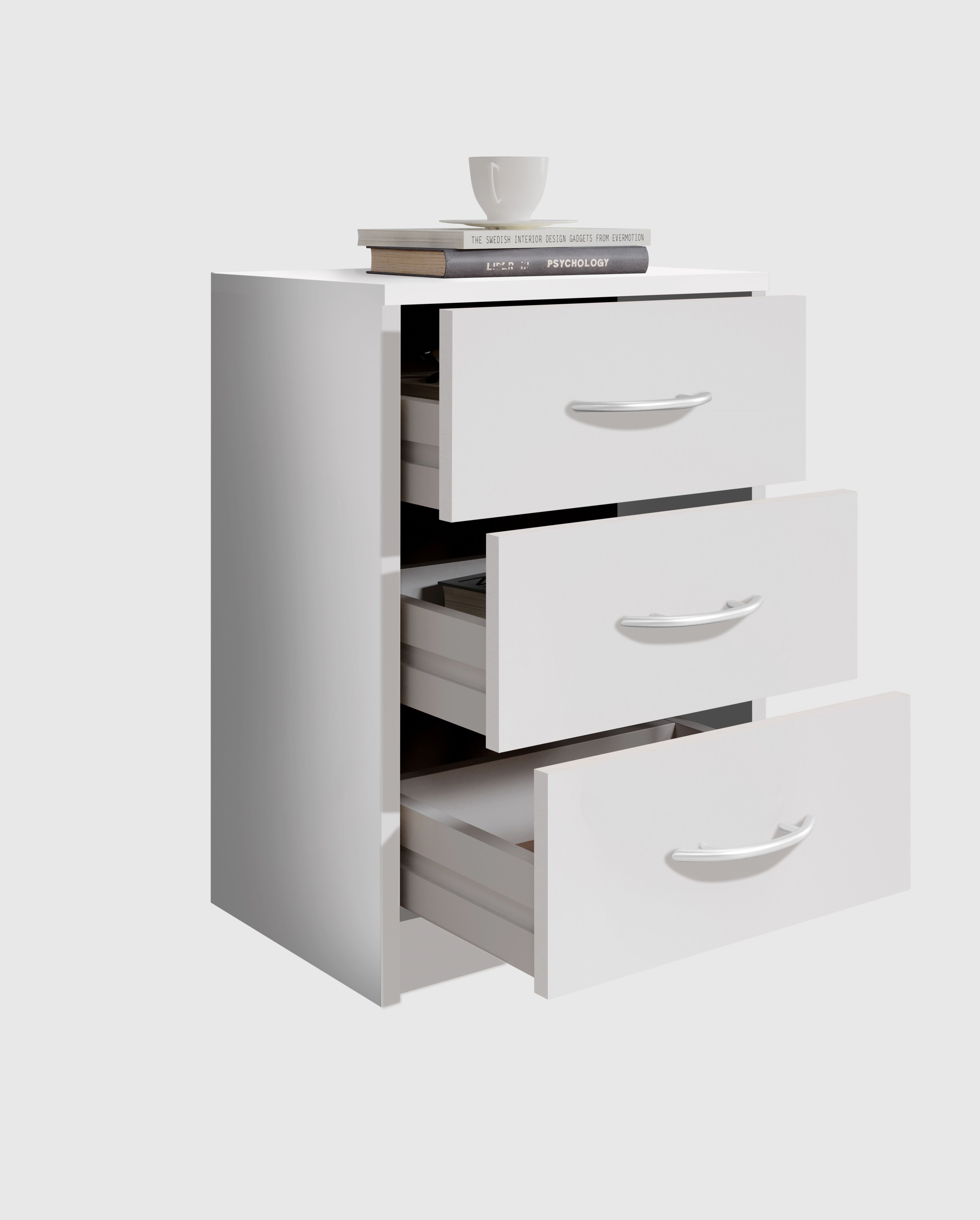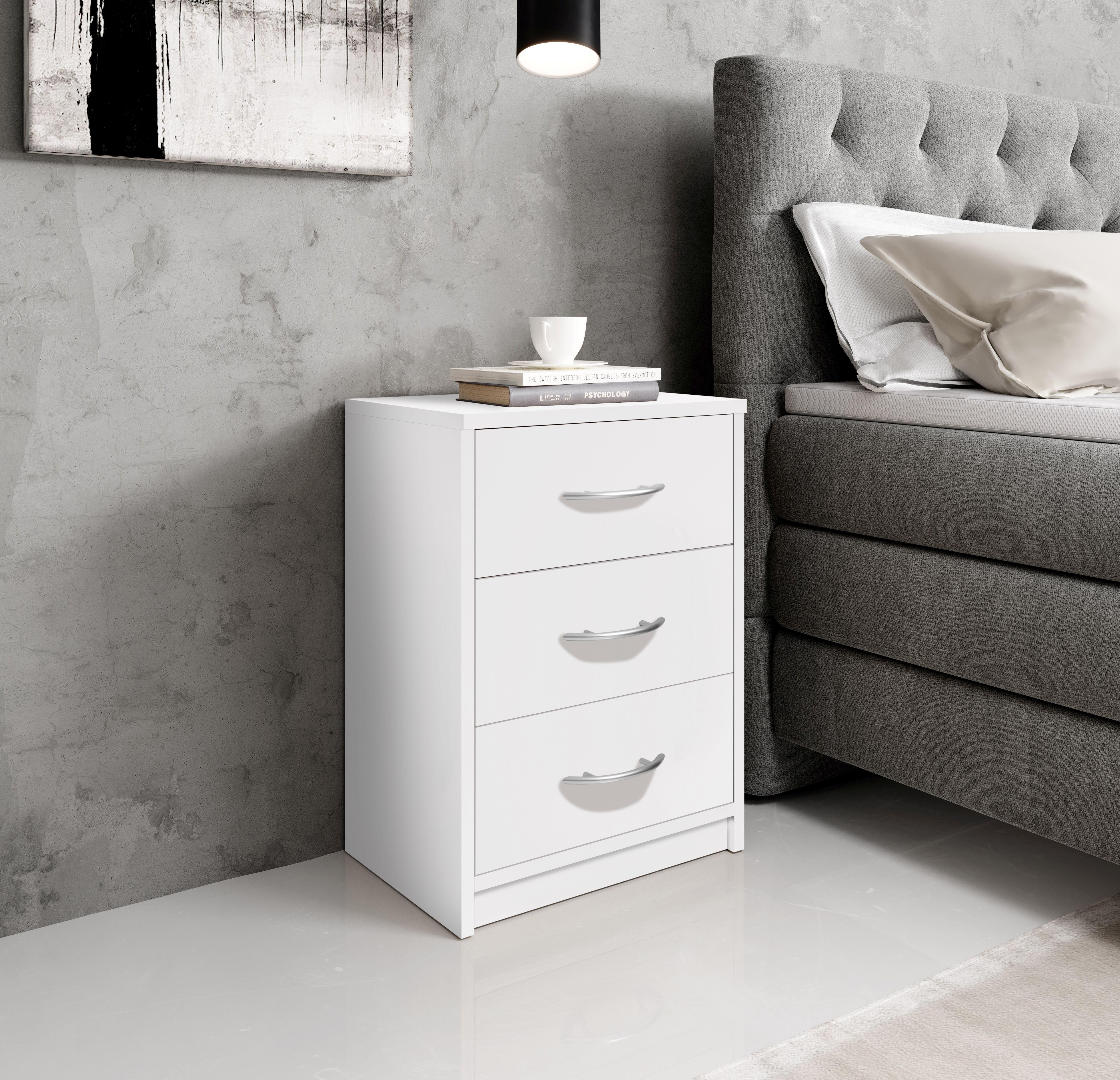 PEPE Nachttisch Weiß - Schlichter Nachtschrank mit drei Schubladen passend zu jedem Bett & Schlafzimmer - 39 x 54 x 28 cm (B/H/T)