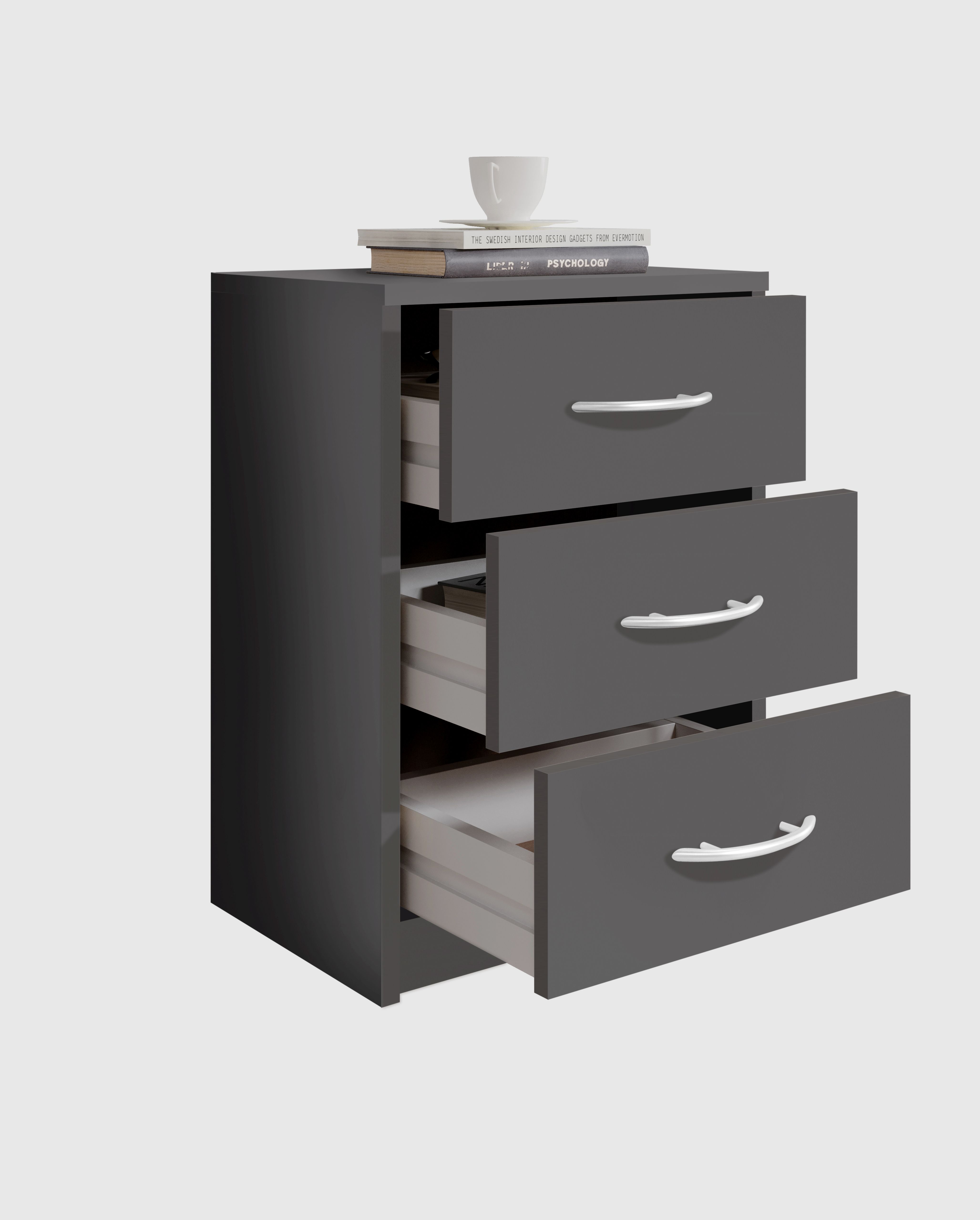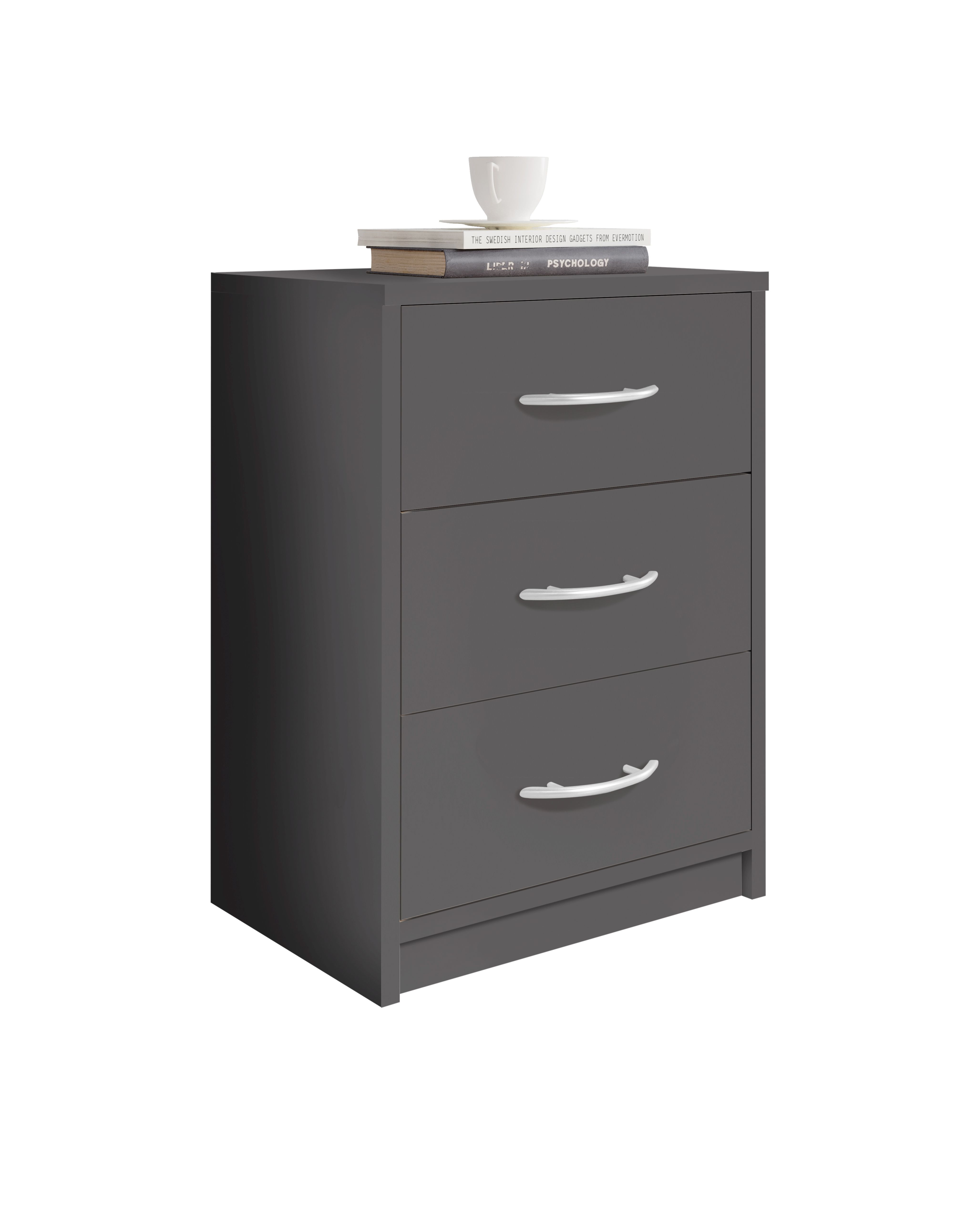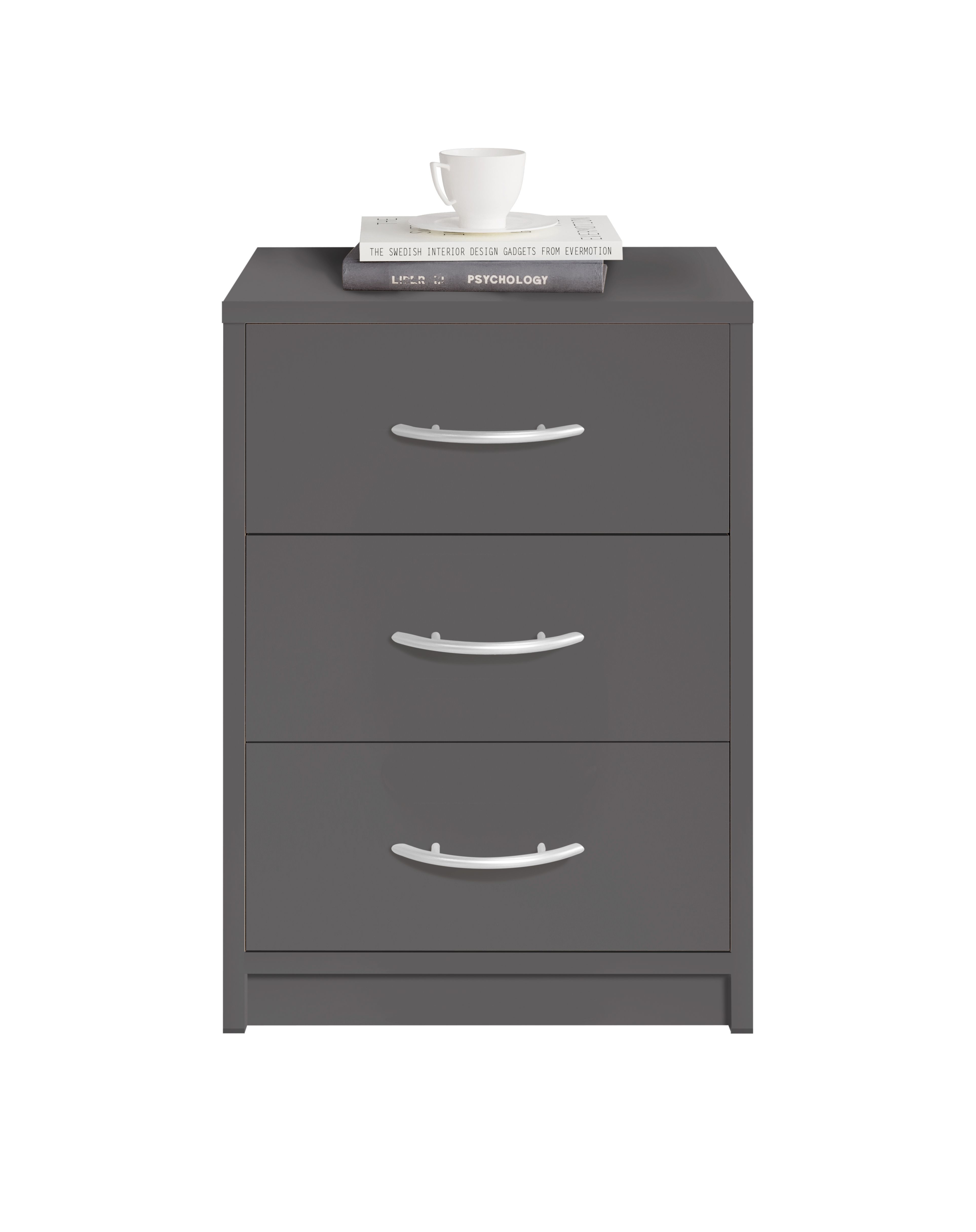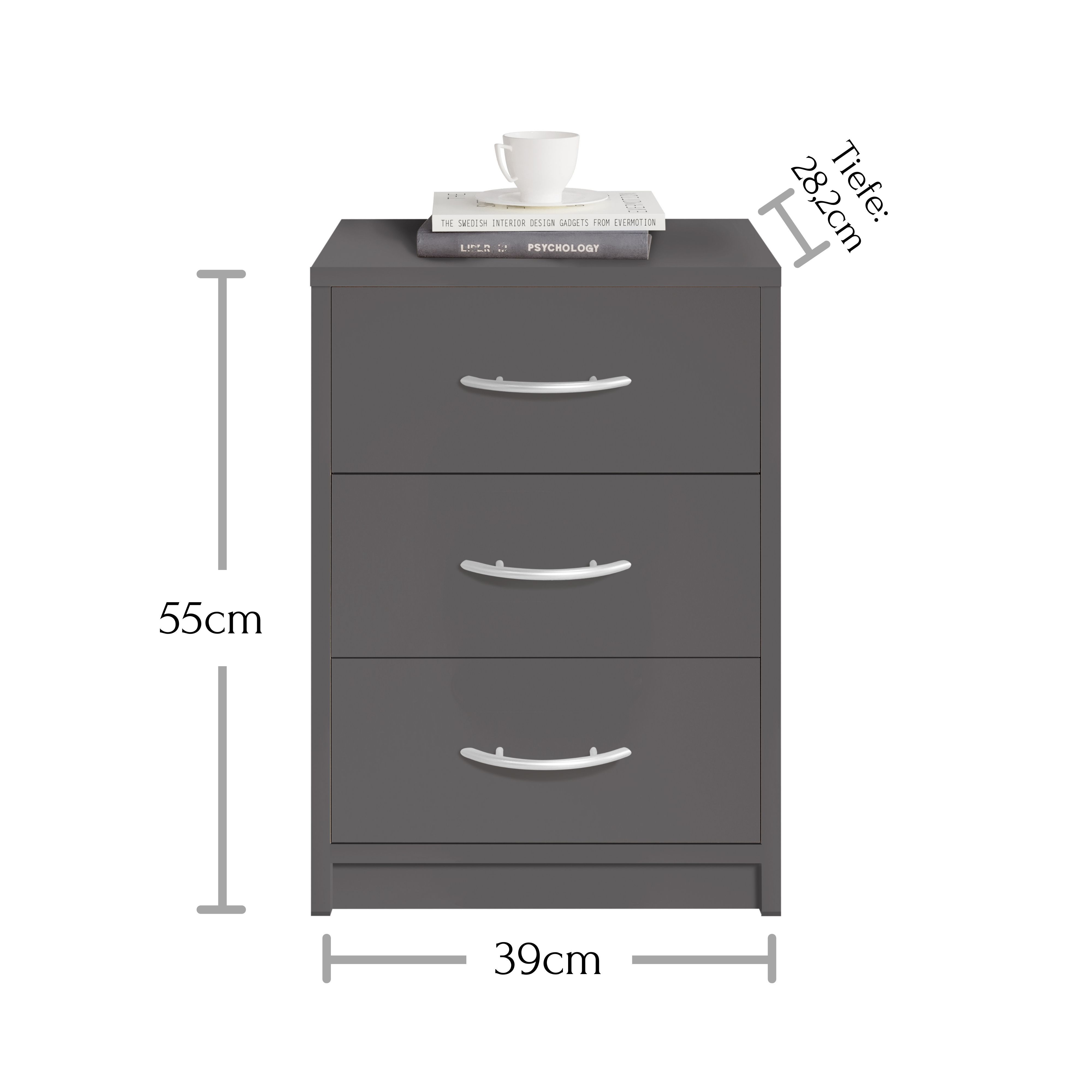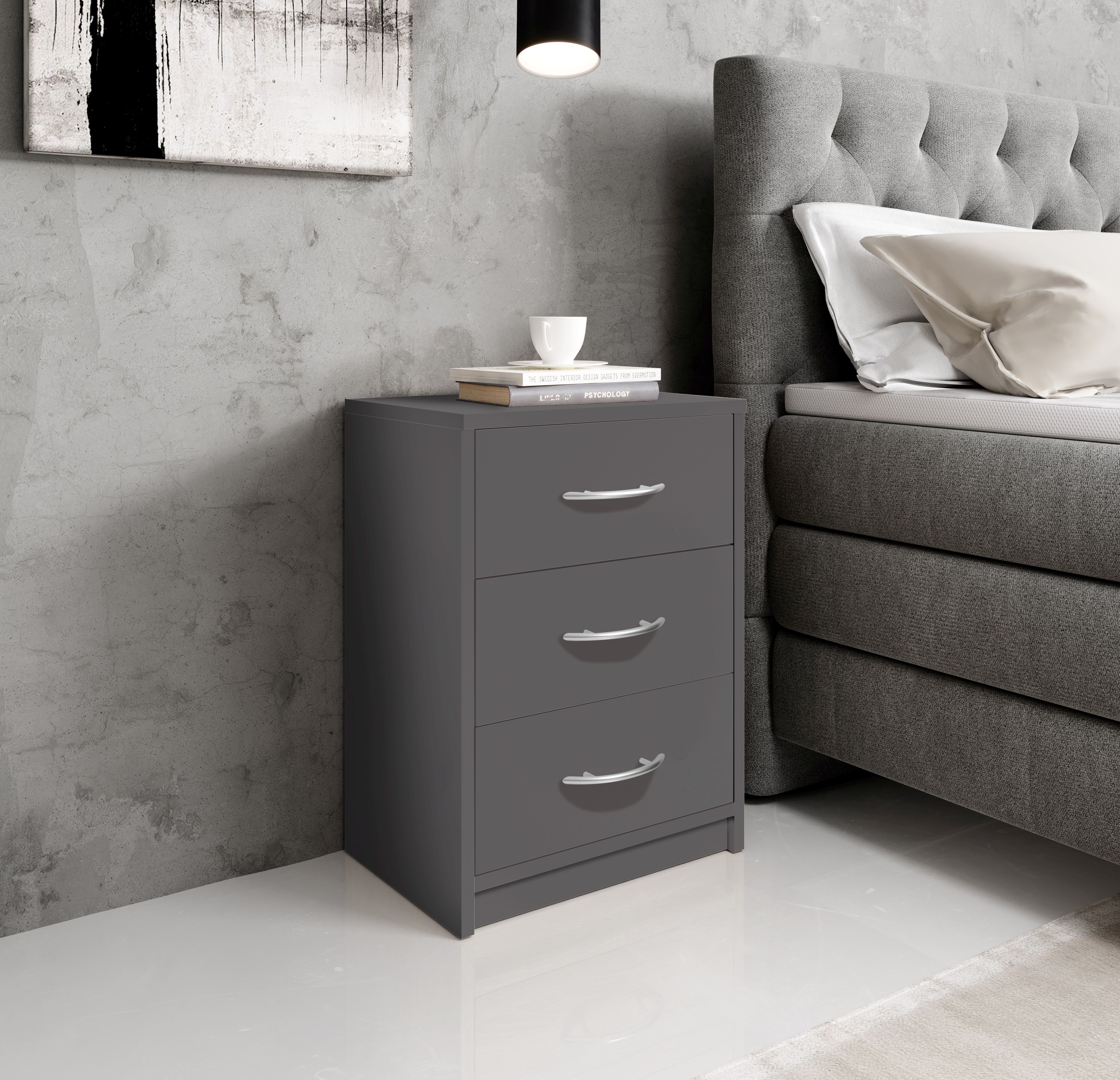 PEPE Nachttisch Graphit - Schlichter Nachtschrank mit drei Schubladen passend zu jedem Bett & Schlafzimmer - 39 x 54 x 28 cm (B/H/T)