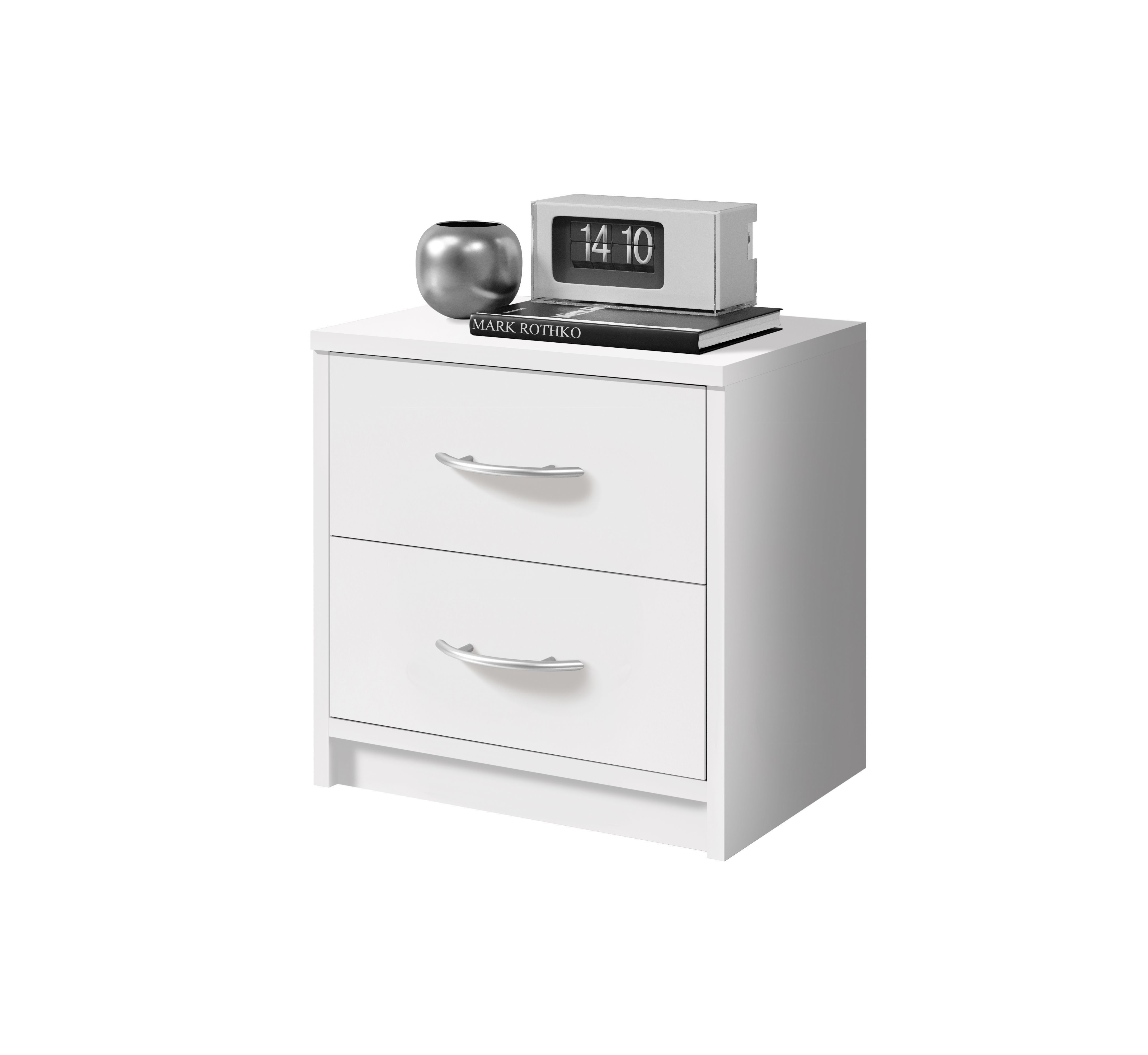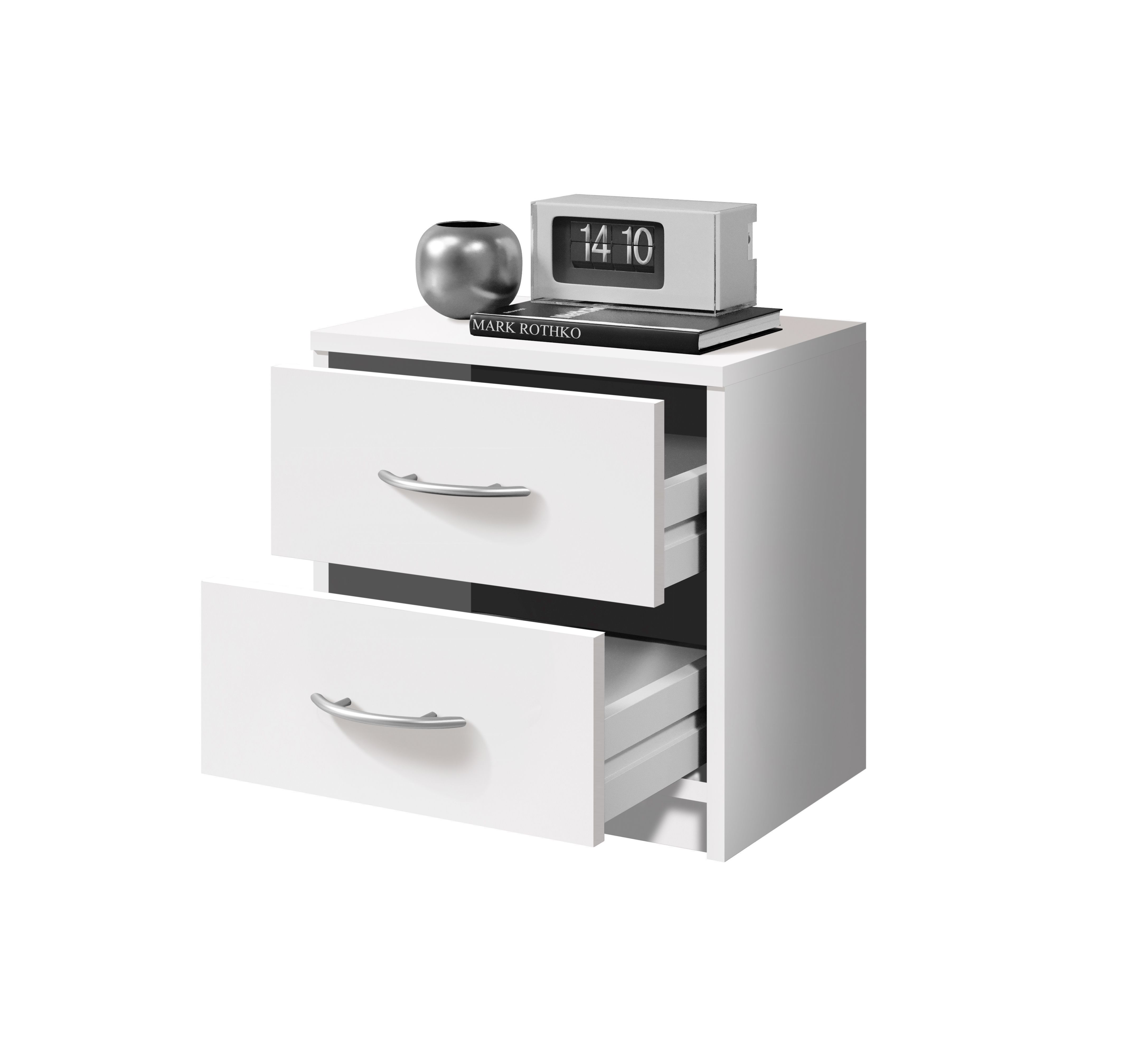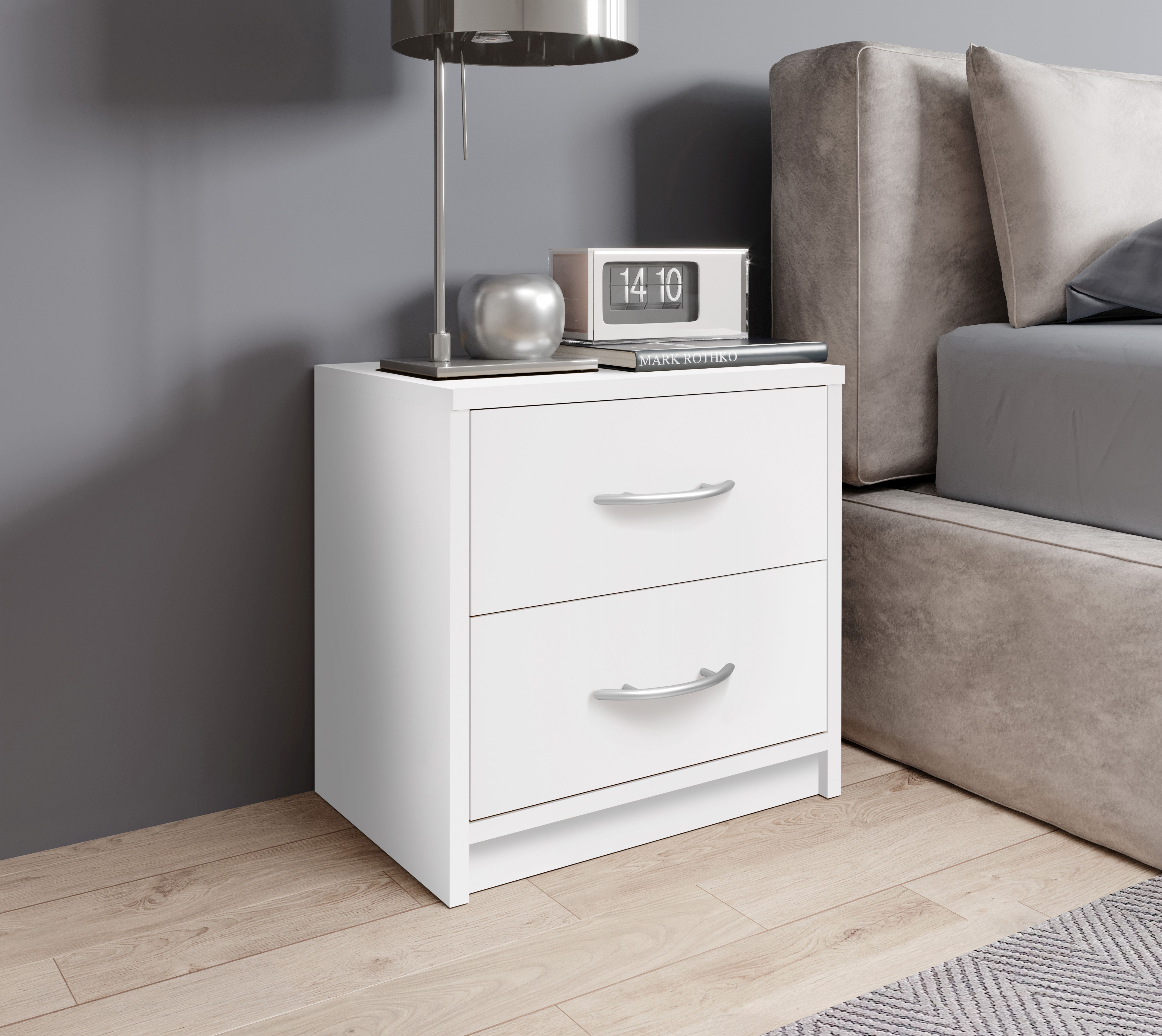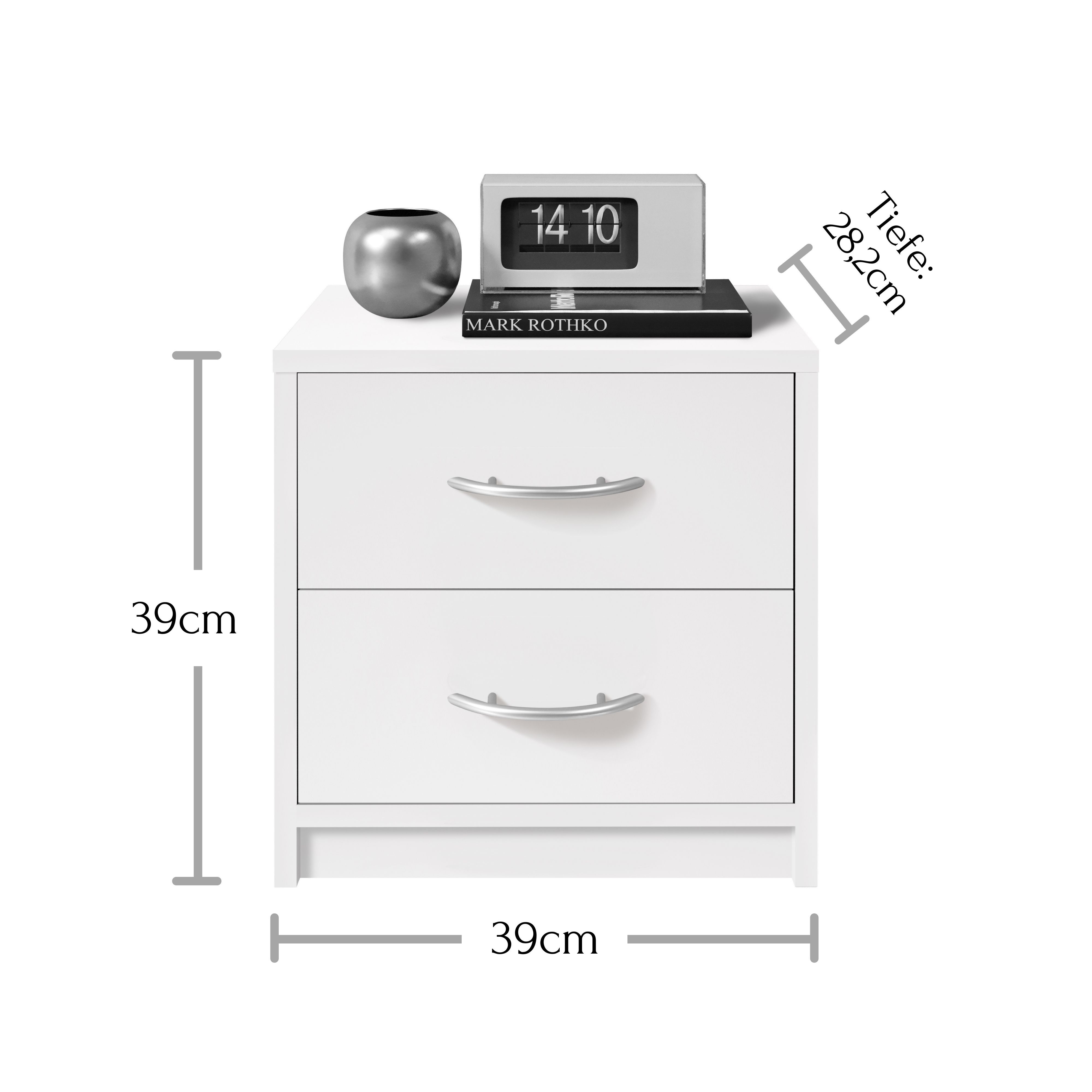 PEPE Nachttisch Weiß - Schlichter Nachtschrank mit zwei Schubladen passend zu jedem Bett & Schlafzimmer - 39 x 39 x 28 cm (B/H/T)