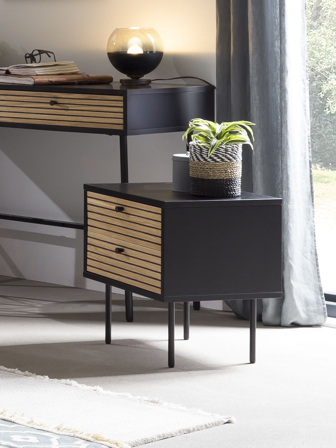 Korpus: MDF (Mitteldichte Holzfaserplatte) mit Melaminbeschichtung in schwarz