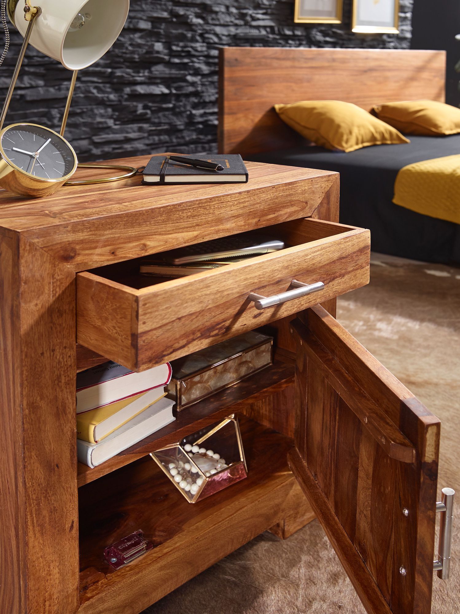 - Kompletter Nachtkasten: Massivholz Sheesham