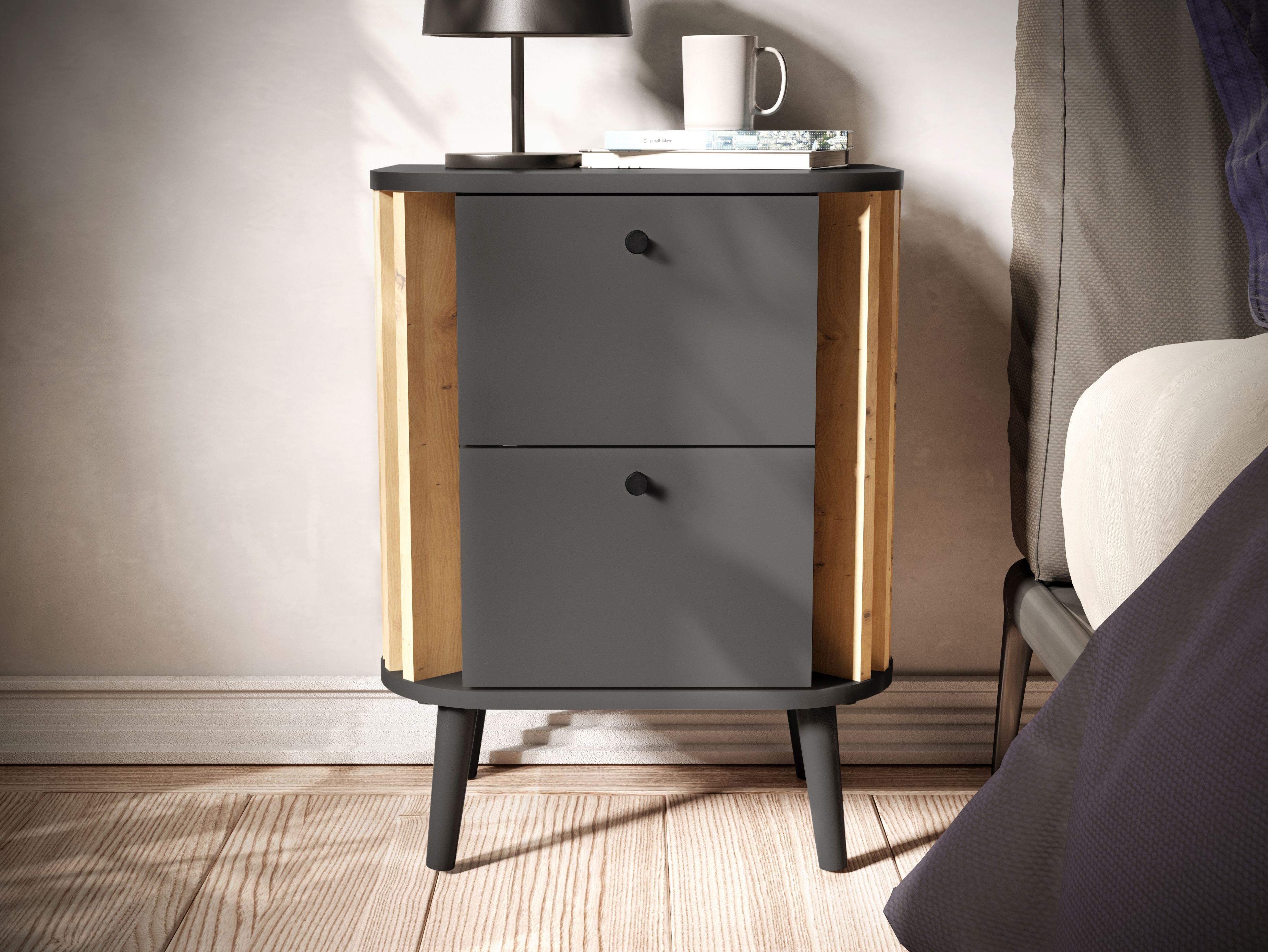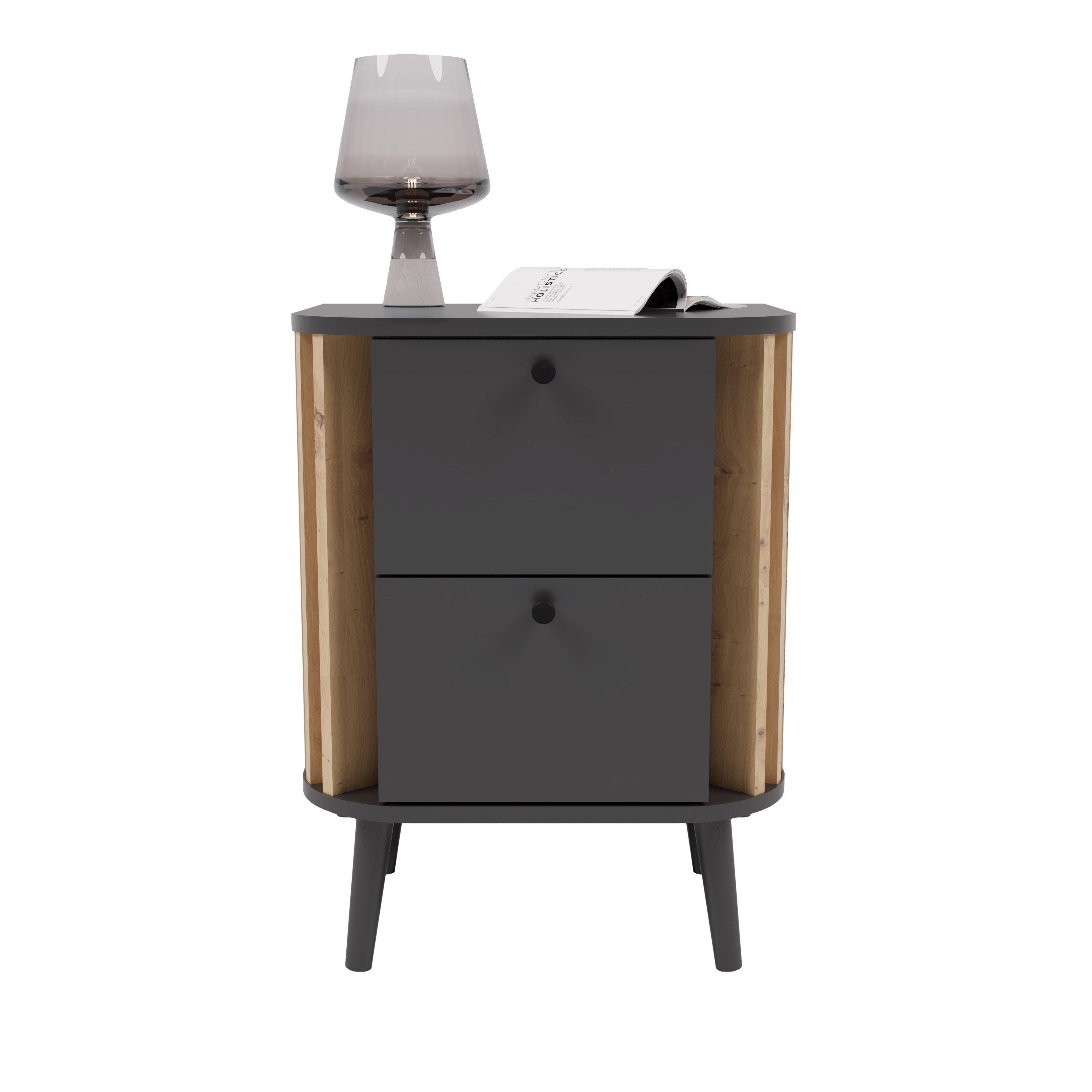 - Funktionalität: Mit zwei geräumigen Schubladen bietet die Nachtkommode ausreichend Stauraum für Bücher, Lesebrillen und andere Schlafzimmerutensilien. Die kompakte Größe ermöglicht eine platzsparende Aufstellung neben dem Bett und sorgt für eine praktische Nutzung im täglichen Gebrauch.