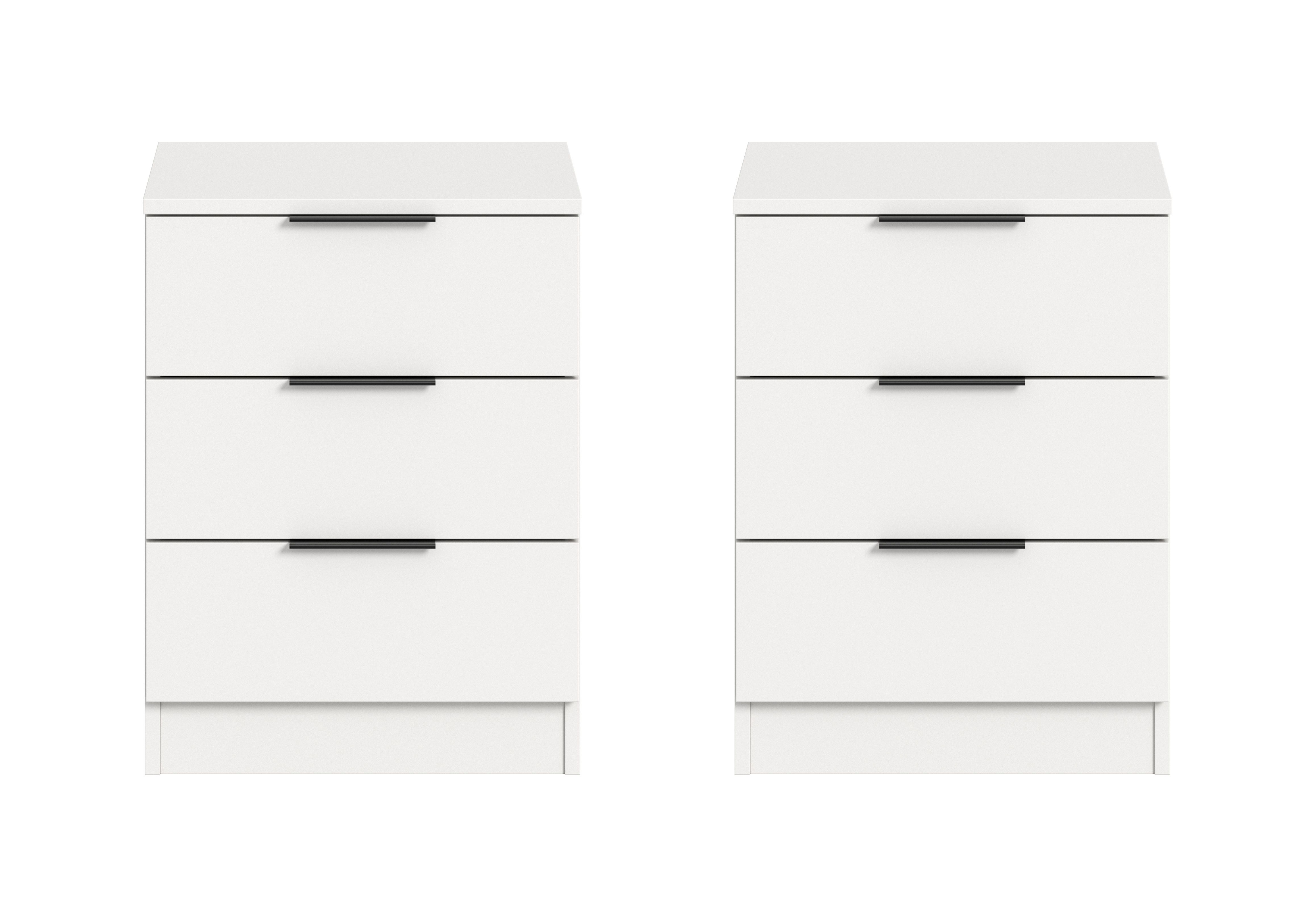 Dieses 2er Nachtkommoden-Set bietet Ihnen praktischen Stauraum und schafft gleichzeitig eine harmonische Atmosphäre in Ihrem Schlafzimmer. Mit seinem klaren, weißen Design bringt es Ruhe und Ordnung in Ihren persönlichen Rückzugsort. Die drei geräumigen Schubkästen pro Kommode mit Vollauszug ermöglichen ein einfaches Verstauen und schnellen Zugriff auf Ihre Lieblingsgegenstände. Gefertigt aus hochwertigen Materialien überzeugen die Nachtkommoden durch ihre pflegeleichten Oberflächen, die sich mühelos reinigen lassen – so bleibt Ihr Schlafzimmer stets einladend und sauber. Mit den Maßen von 45 x 60 x 40 cm passen die Kommoden perfekt neben jedes Bett und bieten vielseitige Einsatzmöglichkeiten, sei es als Ablage für Bücher, Lampen oder persönliche Accessoires.