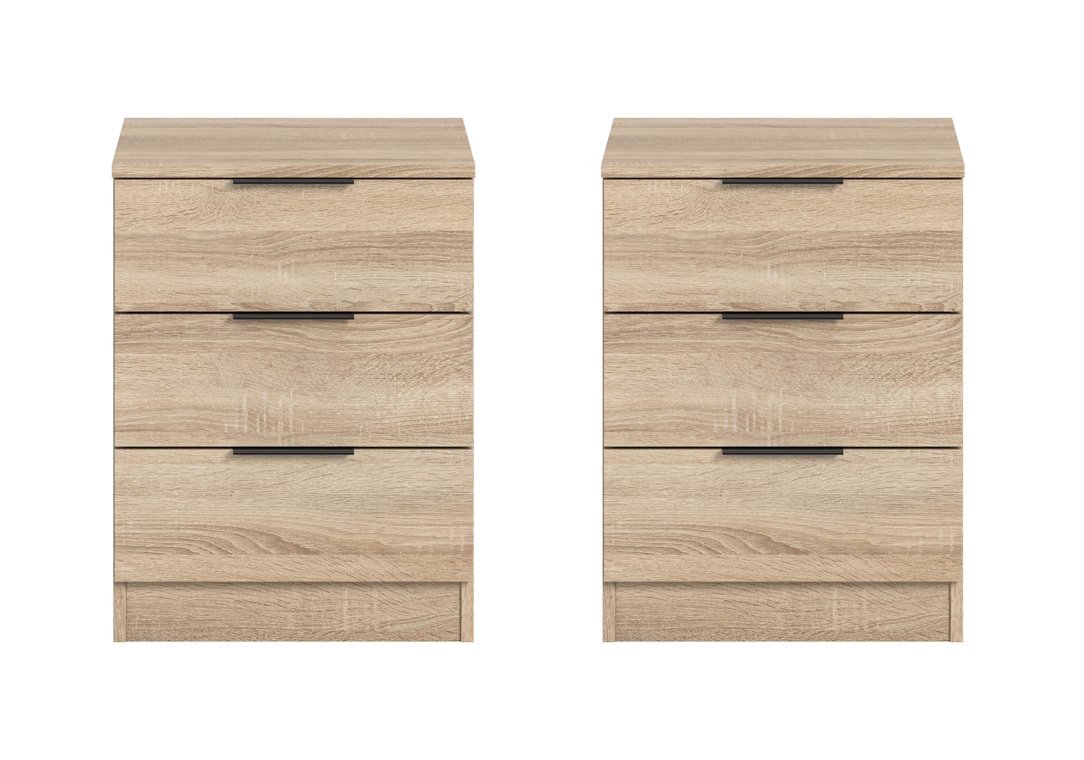 Dieses 2er Nachtkommoden-Set bietet Ihnen praktischen Stauraum und schafft gleichzeitig eine harmonische Atmosphäre in Ihrem Schlafzimmer. Die drei geräumigen Schubkästen pro Kommode mit Vollauszug ermöglichen ein einfaches Verstauen und schnellen Zugriff auf Ihre Lieblingsgegenstände. Gefertigt aus hochwertigen Materialien überzeugen die Nachtkommoden durch ihre pflegeleichten Oberflächen, die sich mühelos reinigen lassen – so bleibt Ihr Schlafzimmer stets einladend und sauber. Mit den Maßen von 45 x 60 x 40 cm passen die Kommoden perfekt neben jedes Bett und bieten vielseitige Einsatzmöglichkeiten, sei es als Ablage für Bücher, Lampen oder persönliche Accessoires.