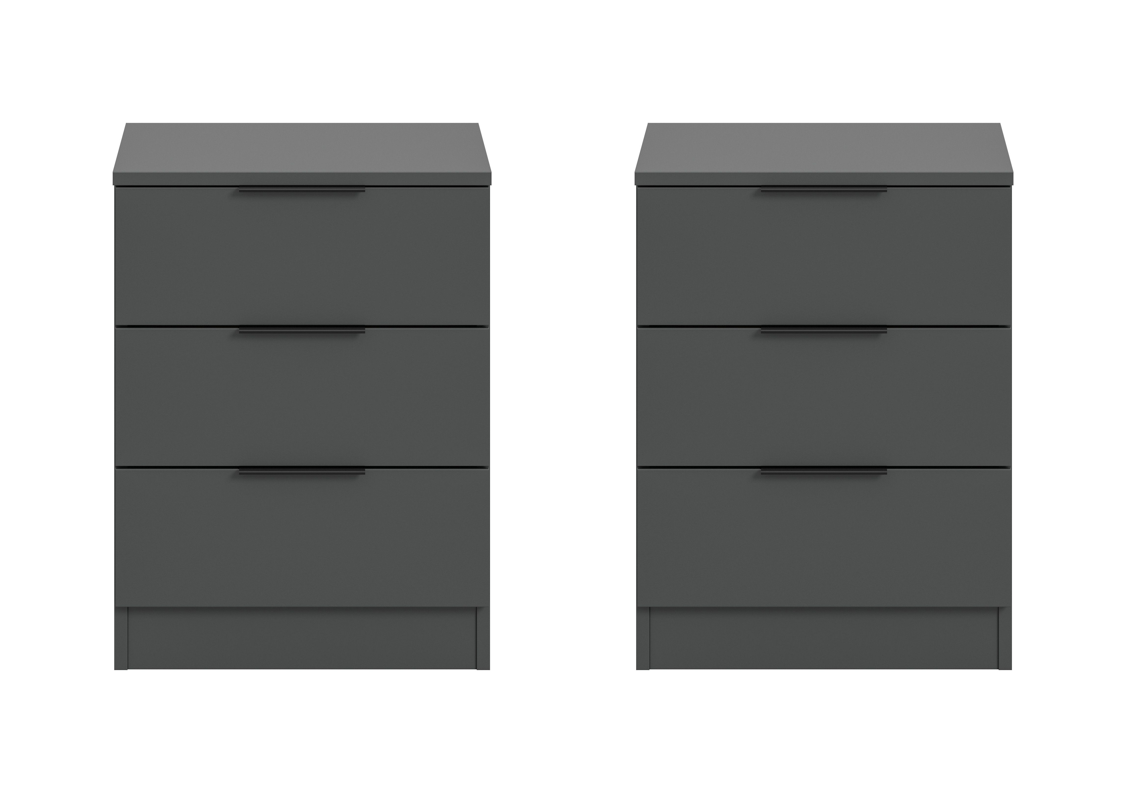 Dieses 2er Nachtkommoden-Set bietet Ihnen praktischen Stauraum und schafft gleichzeitig eine harmonische Atmosphäre in Ihrem Schlafzimmer. Die drei geräumigen Schubkästen pro Kommode mit Vollauszug ermöglichen ein einfaches Verstauen und schnellen Zugriff auf Ihre Lieblingsgegenstände. Gefertigt aus hochwertigen Materialien überzeugen die Nachtkommoden durch ihre pflegeleichten Oberflächen, die sich mühelos reinigen lassen – so bleibt Ihr Schlafzimmer stets einladend und sauber. Mit den Maßen von 45 x 60 x 40 cm passen die Kommoden perfekt neben jedes Bett und bieten vielseitige Einsatzmöglichkeiten, sei es als Ablage für Bücher, Lampen oder persönliche Accessoires.