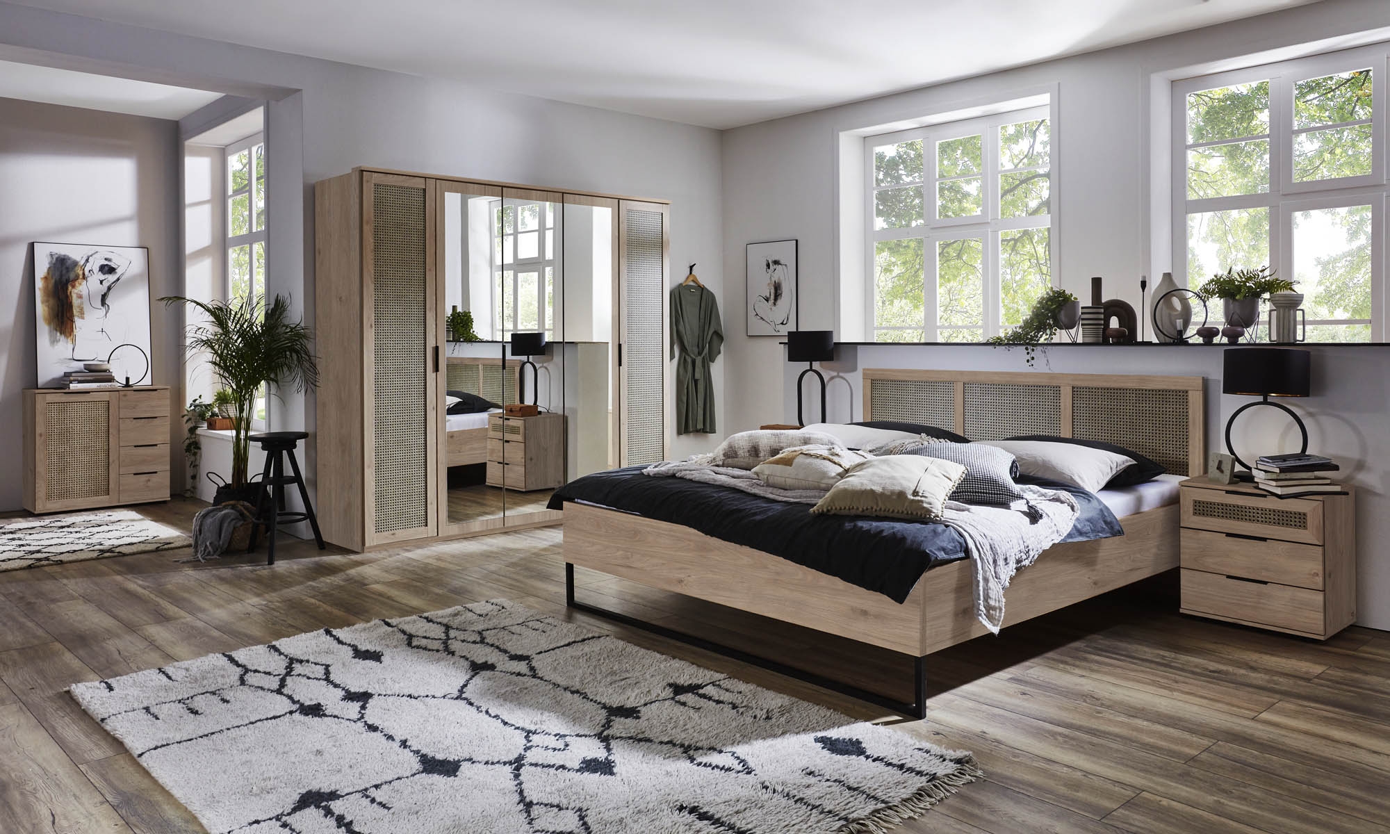 Front: Wiener Geflecht Holznachbildung kombiniert mit Hickory Eiche Holznachbildung