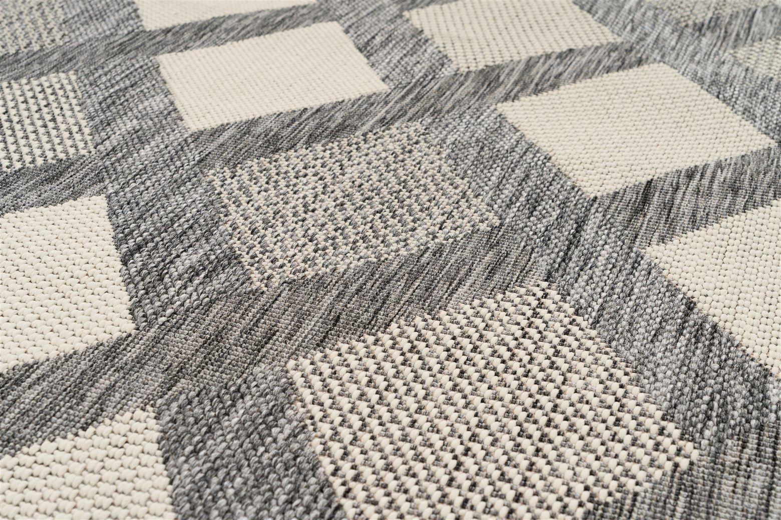 Der Flachgewebeteppich mit dezenter Farbgebung schafft durch das moderne Design ein gemütliches Ambiente in jedem Außenbereich. Dank seiner feuchtigkeitsbeständigen Kunstfaser aus Polypropylen ist er wasserabweisend und wetterfest.