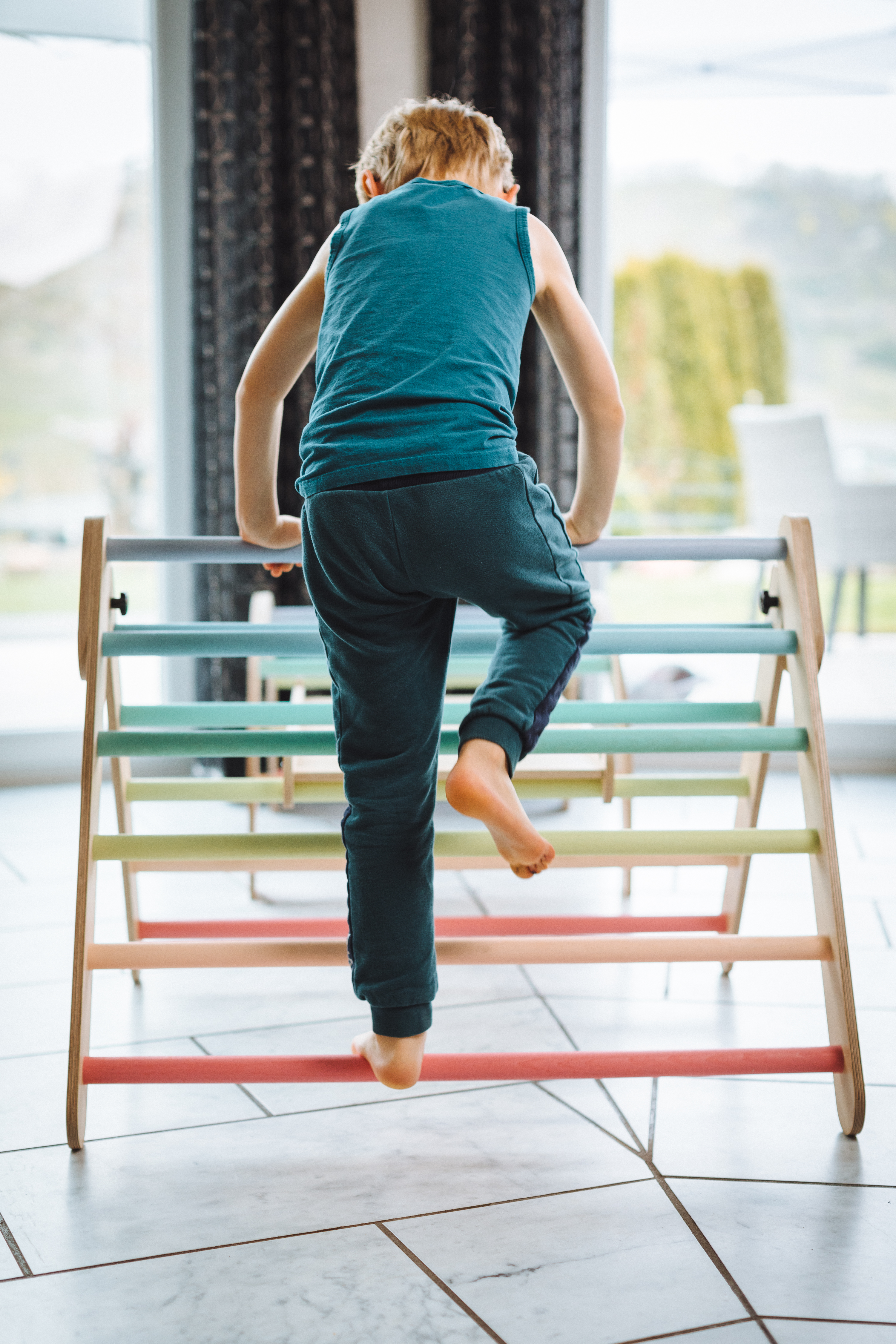 Das Kletterspielzeug fördert die motorischen Fähigkeiten und bietet eine sichere Umgebung für die körperliche und geistige Entfaltung der Kinder.