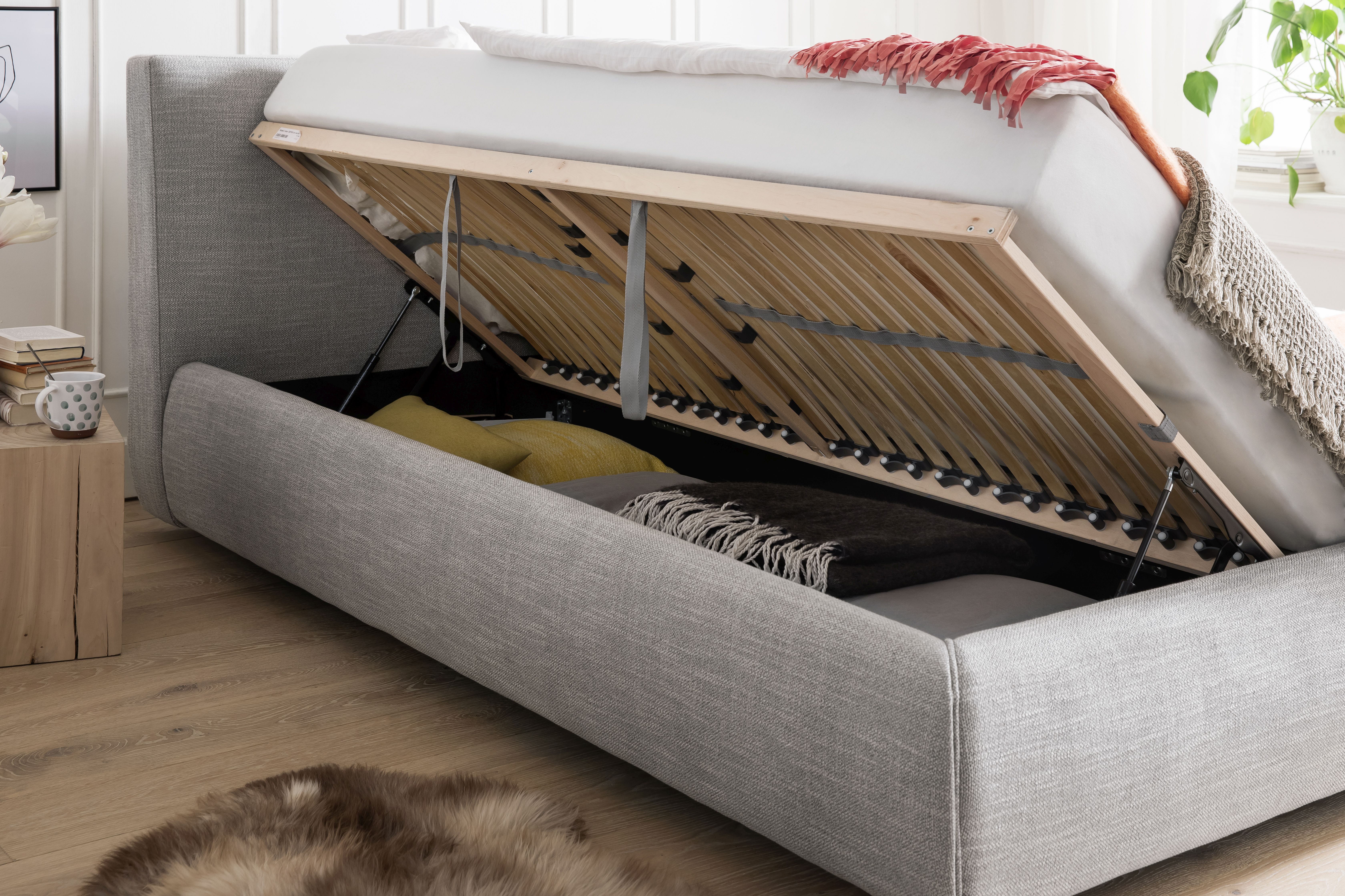 inklusive 2 Bettkästen mit Multi-Lochung und seitlich zu öffnende Federholzrahmen