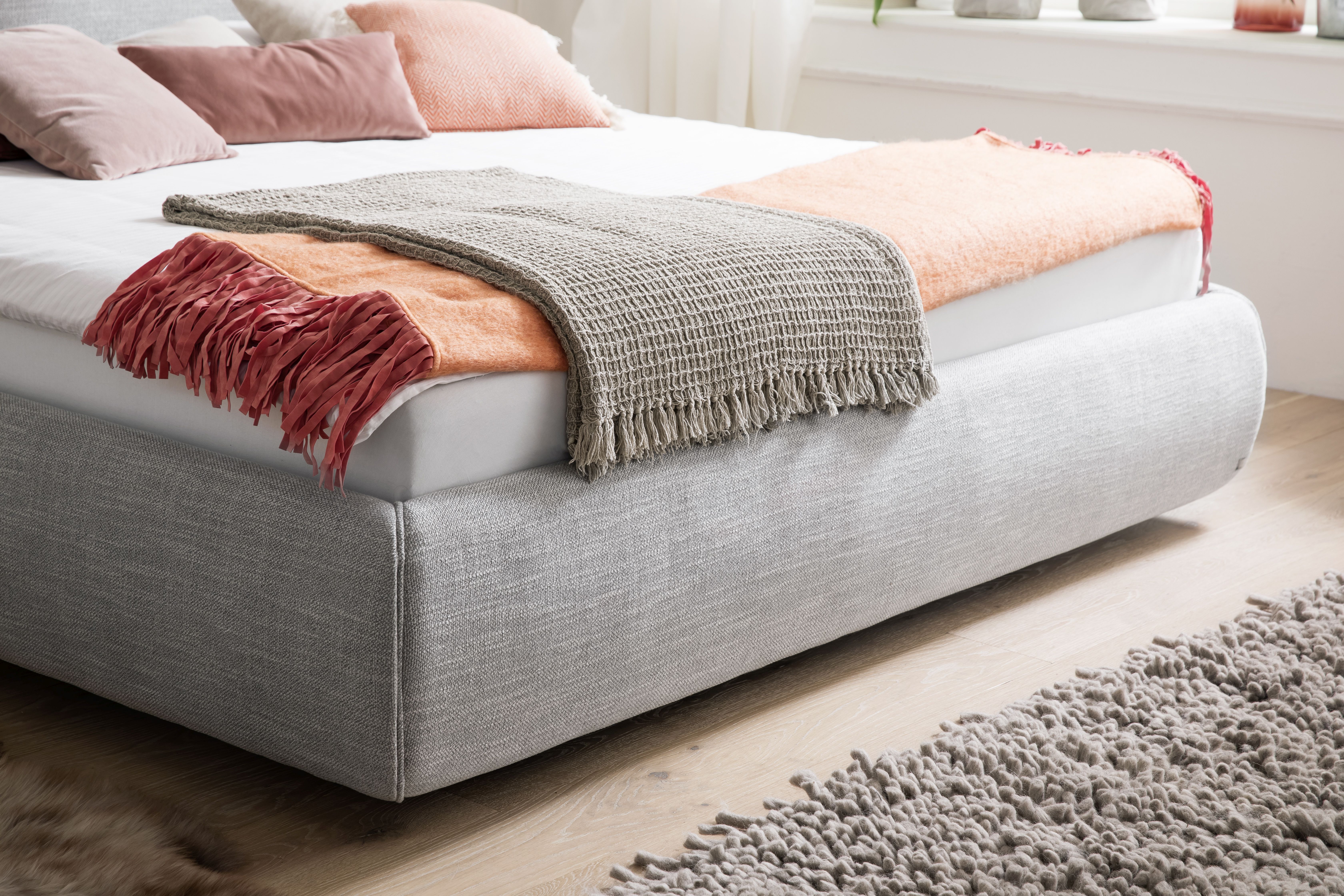 Bezug: Stoff in der Farbe hellgrau aus 90% Polyester und 10% Baumwolle