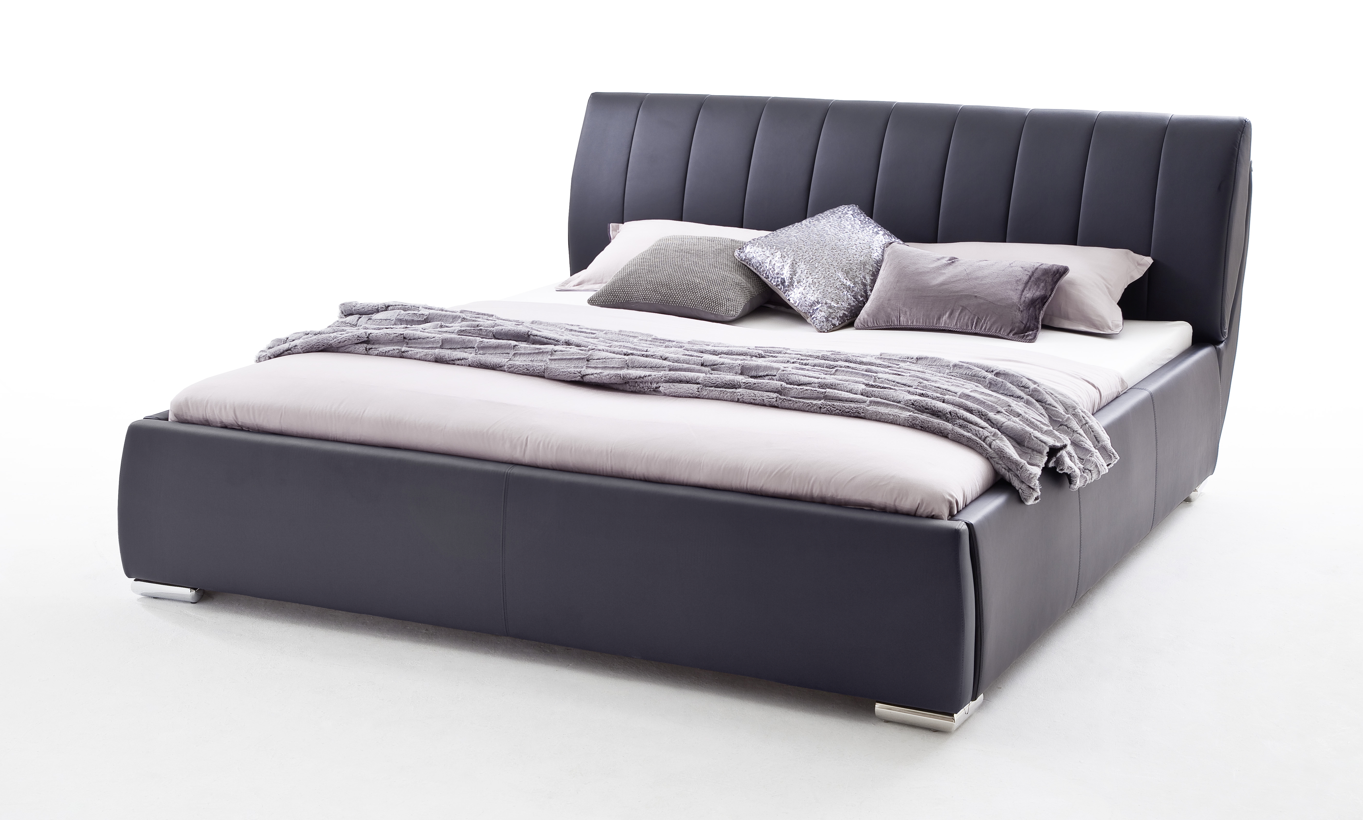 Polsterbett in der Farbe schwarz in einem Kunstlederbezug: Vorderseite 100% Polyurethan, Rückseite: 50% Baumwolle, 50% Polyester