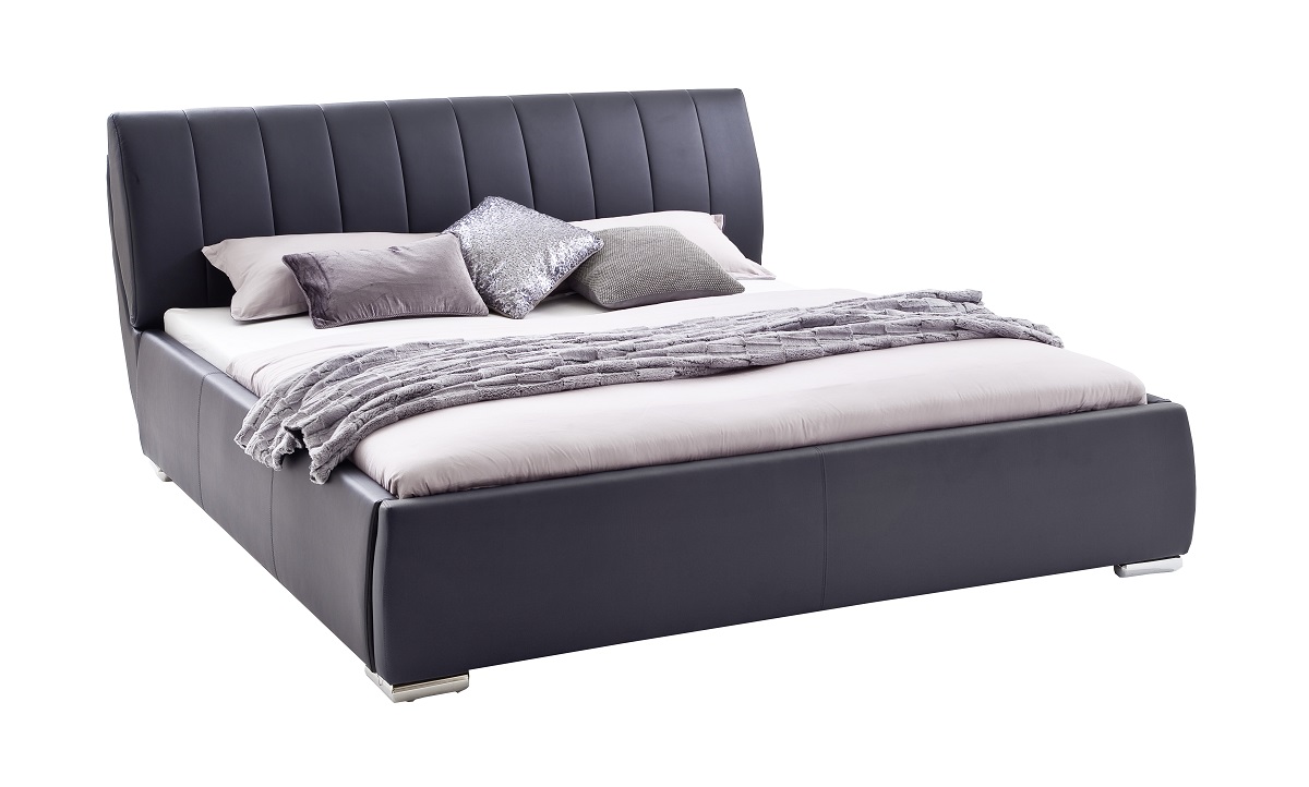 Polsterbett in der Farbe schwarz in einem Kunstlederbezug: Vorderseite 100% Polyurethan, Rückseite: 50% Baumwolle, 50% Polyester