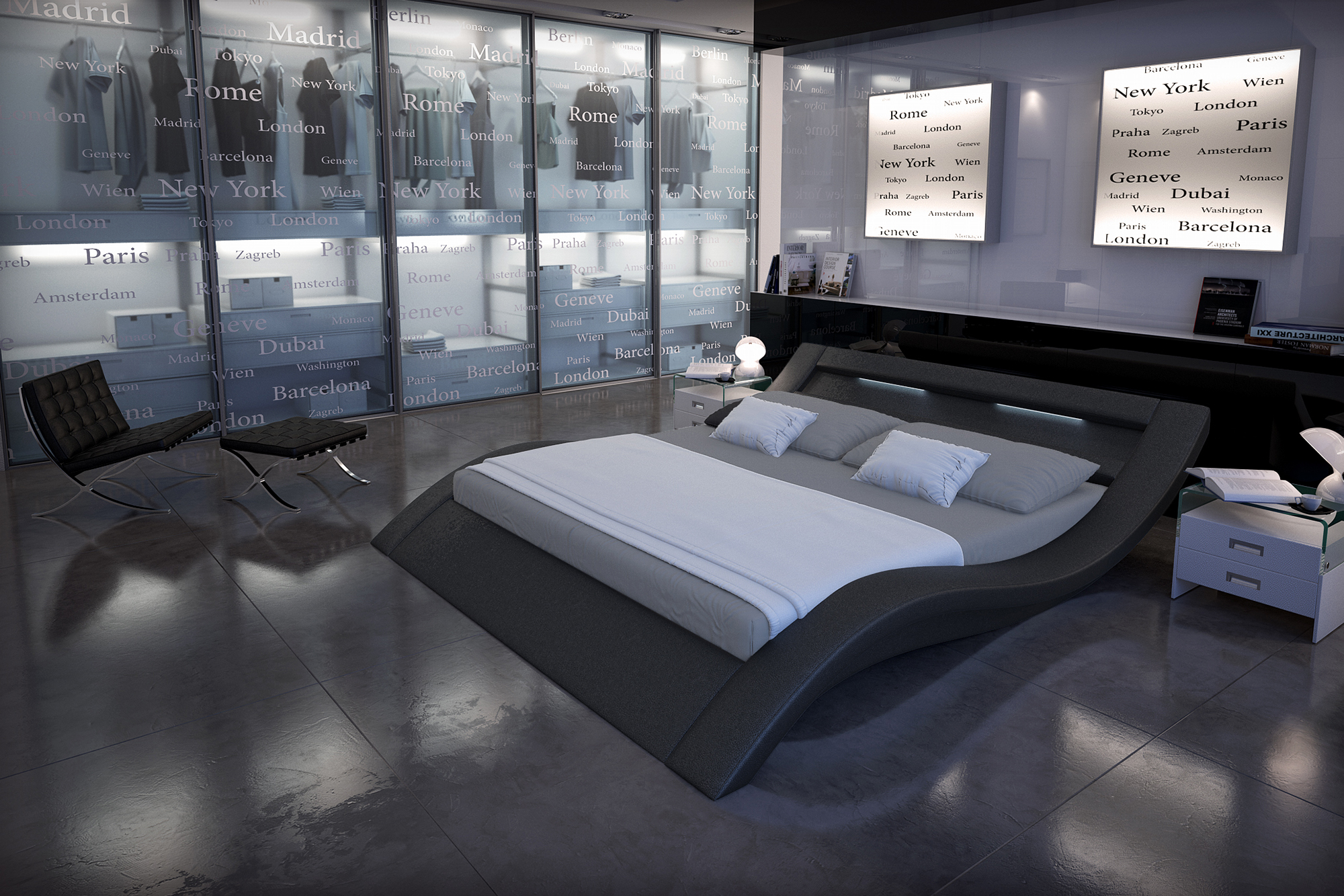 - Polsterbett mit geschwungener Linienführung