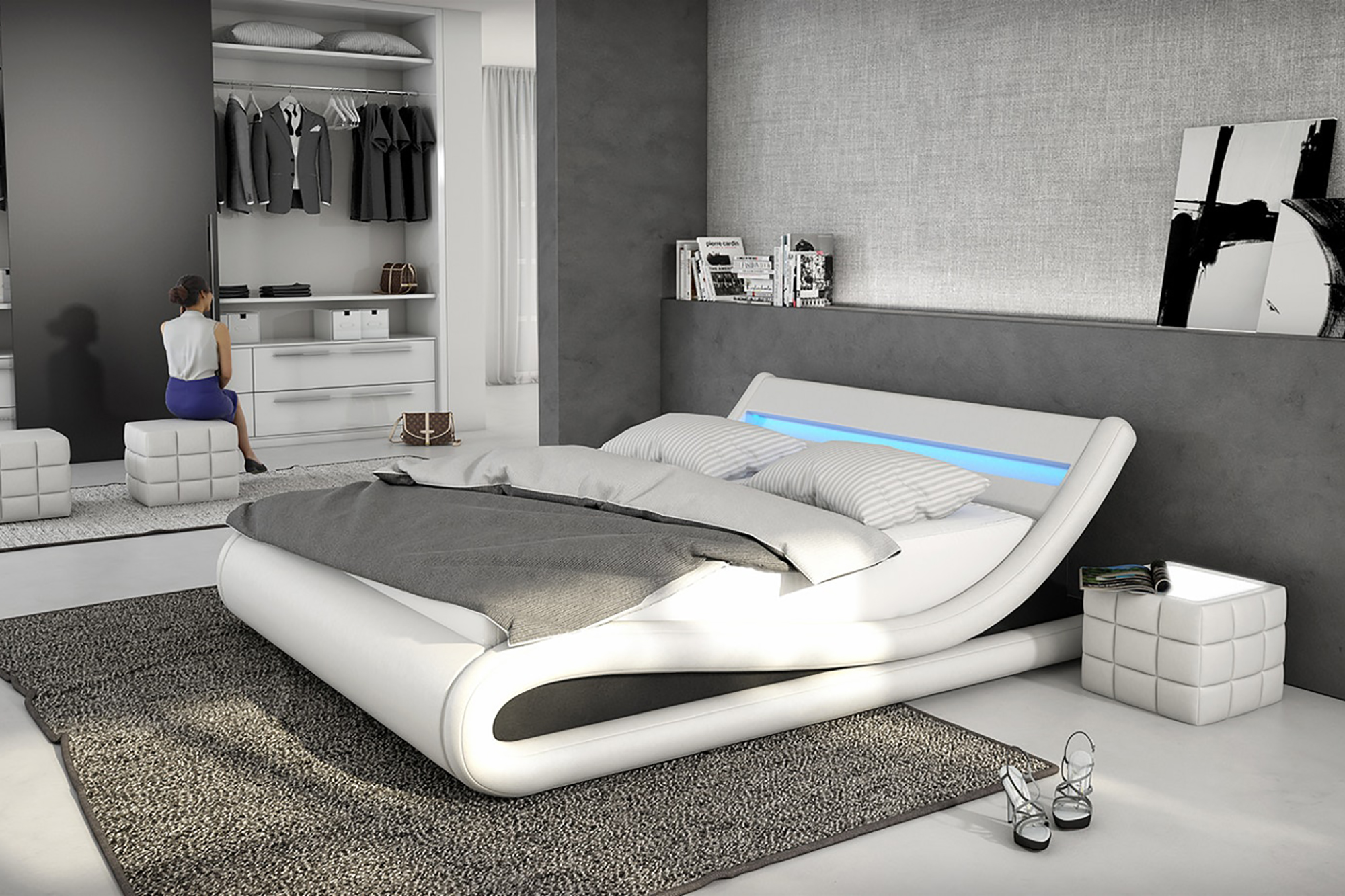 - Polsterbett mit geschwungener Linienführung