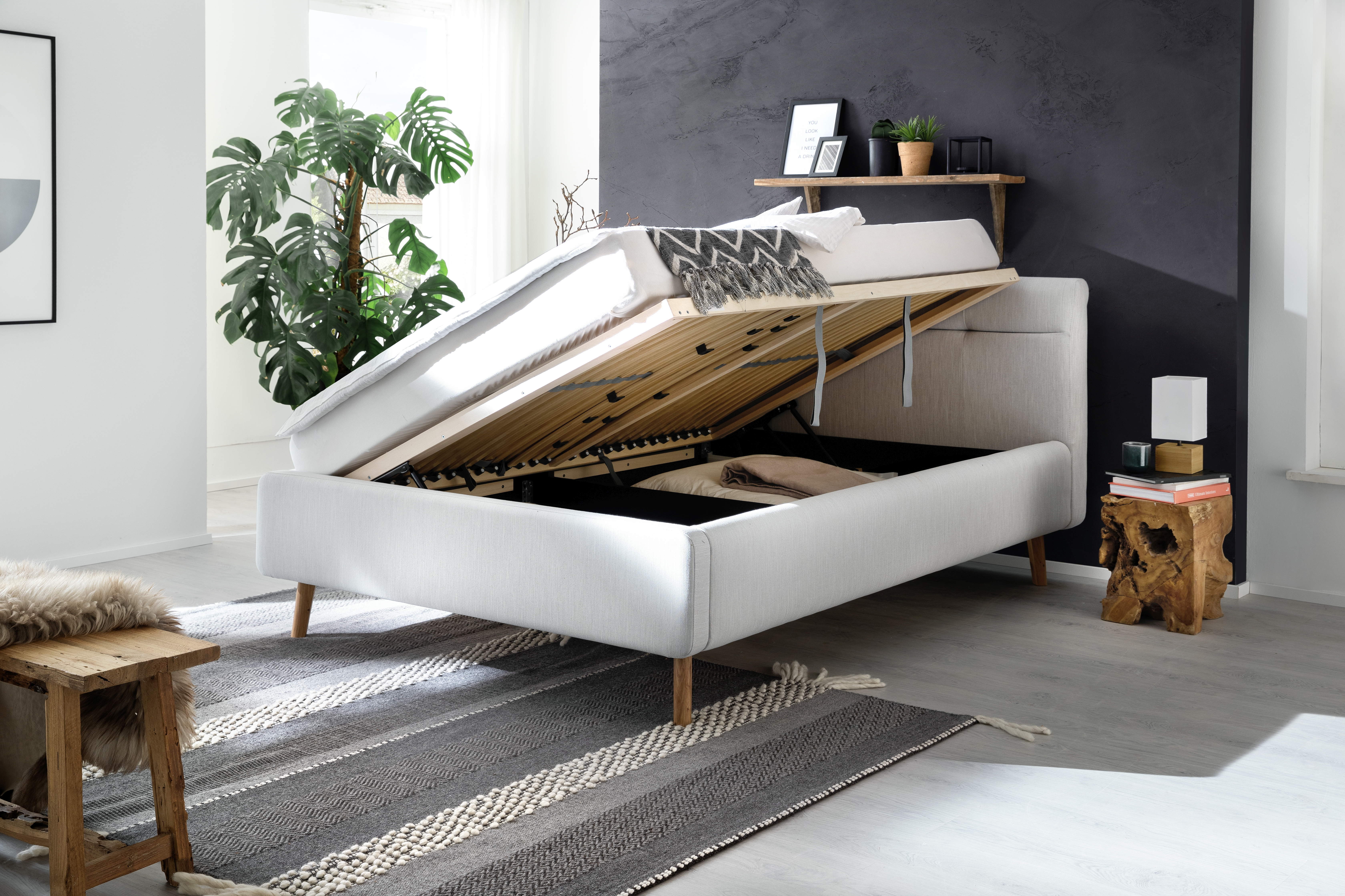 inklusive belüftetem Bettkasten und seitlich zu öffnenden Federholzrahmen