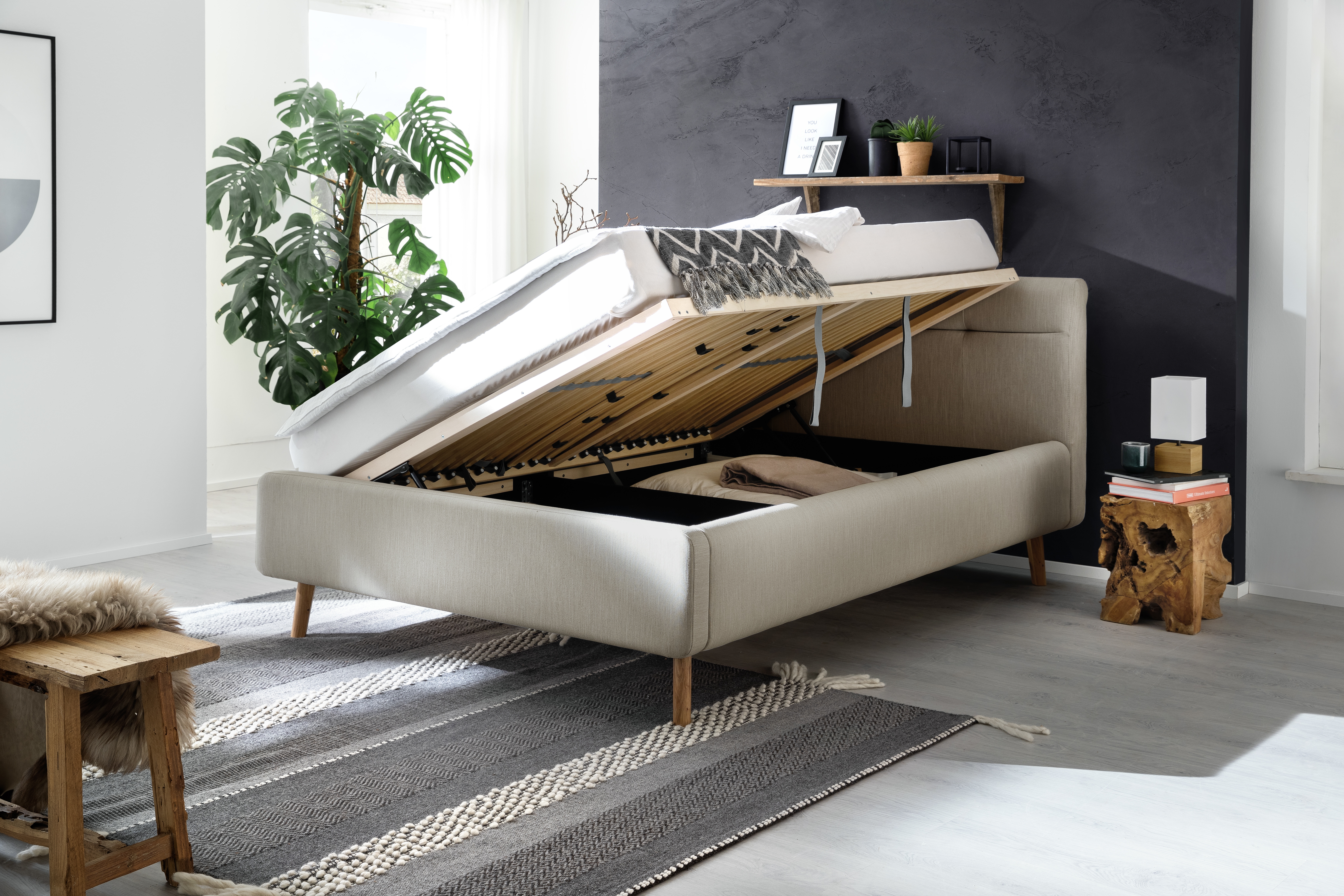 inklusive belüftetem Bettkasten und seitlich zu öffnenden Federholzrahmen