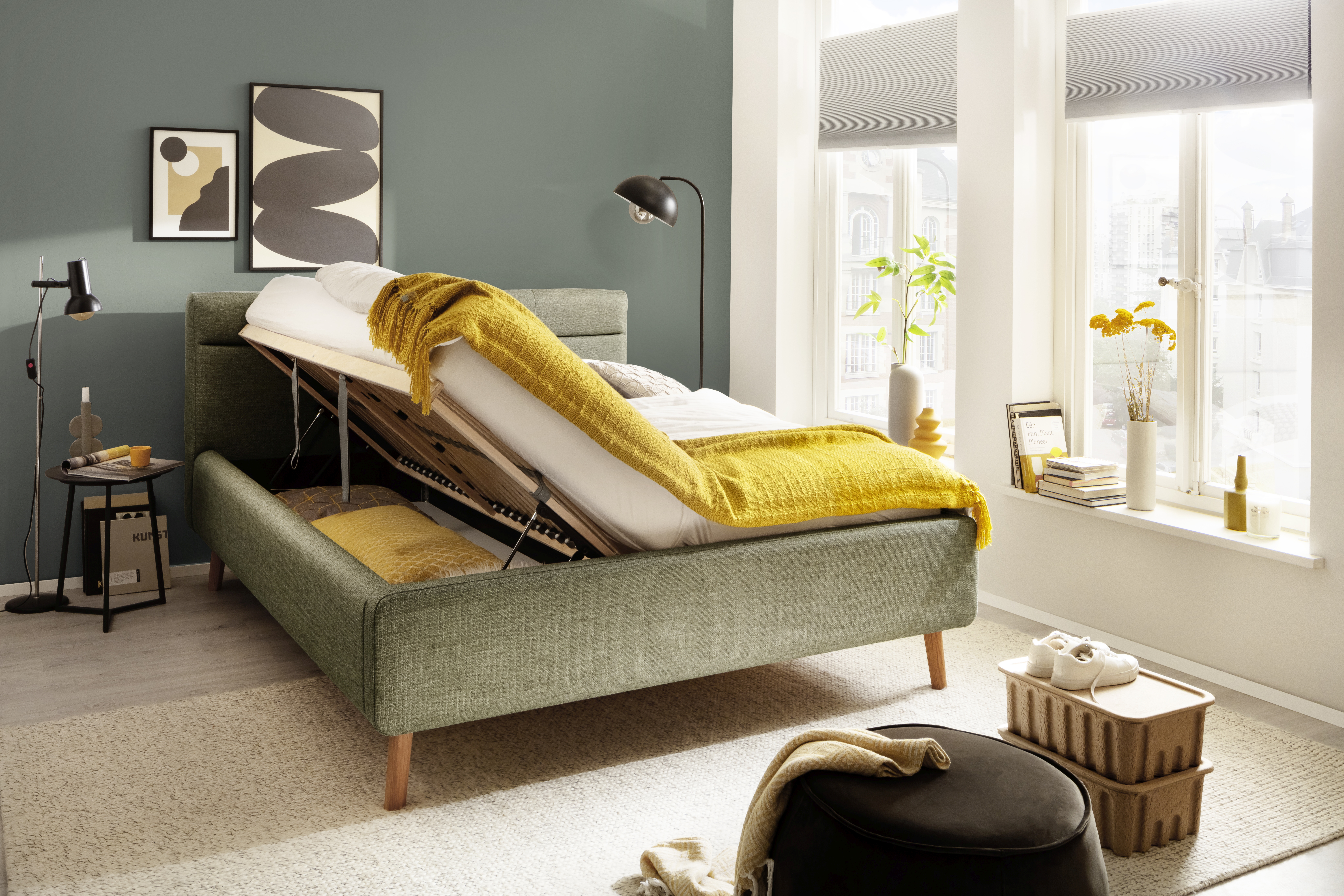 inklusive 2 belüfteten Bettkästen und seitlich zu öffnenden Federholzrahmen