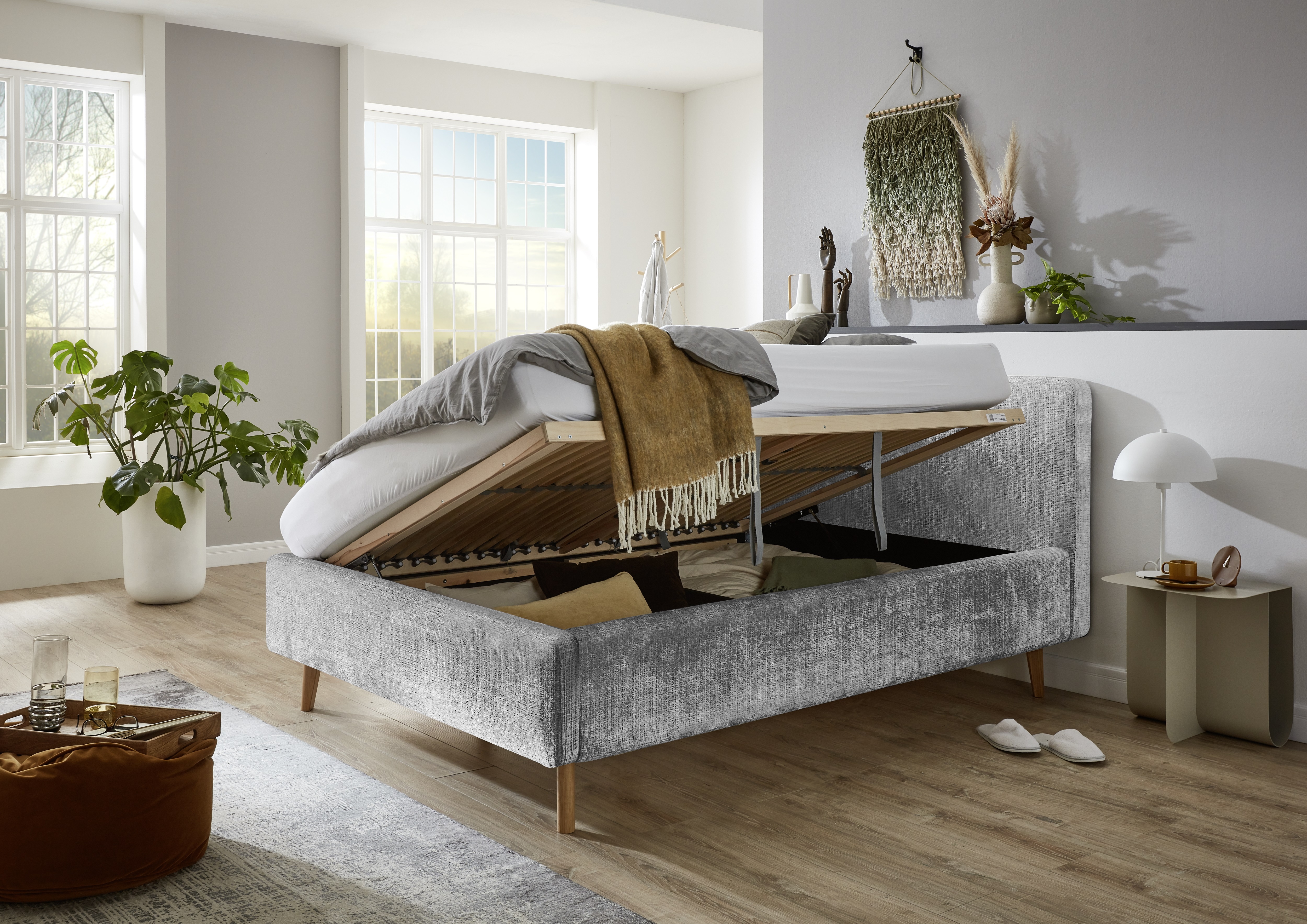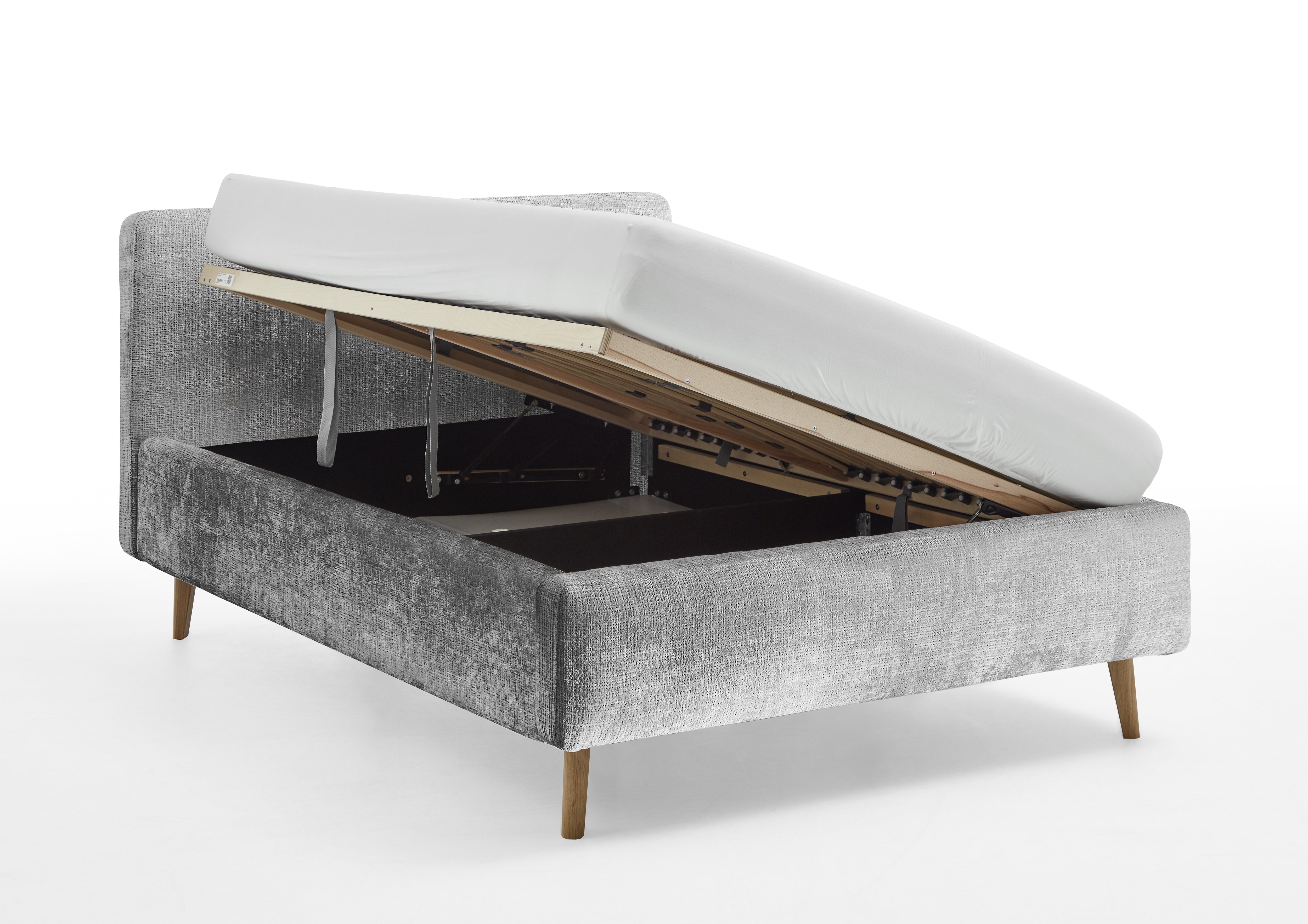 inklusive einem belüftetem Bettkasten und seitlich zu öffnendem Federholzrahmen