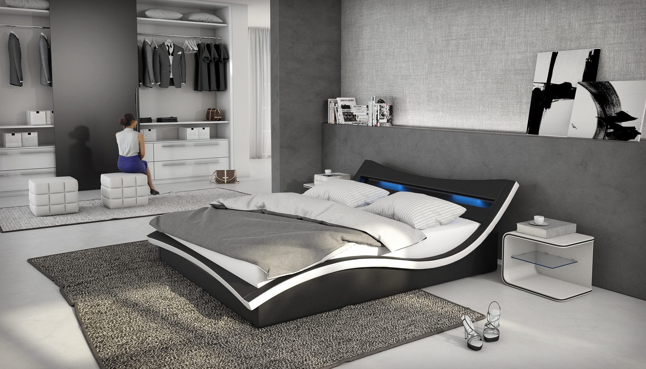 - zwei integrierte LED-Lichtleisten (je 30 cm) im Kopfteil