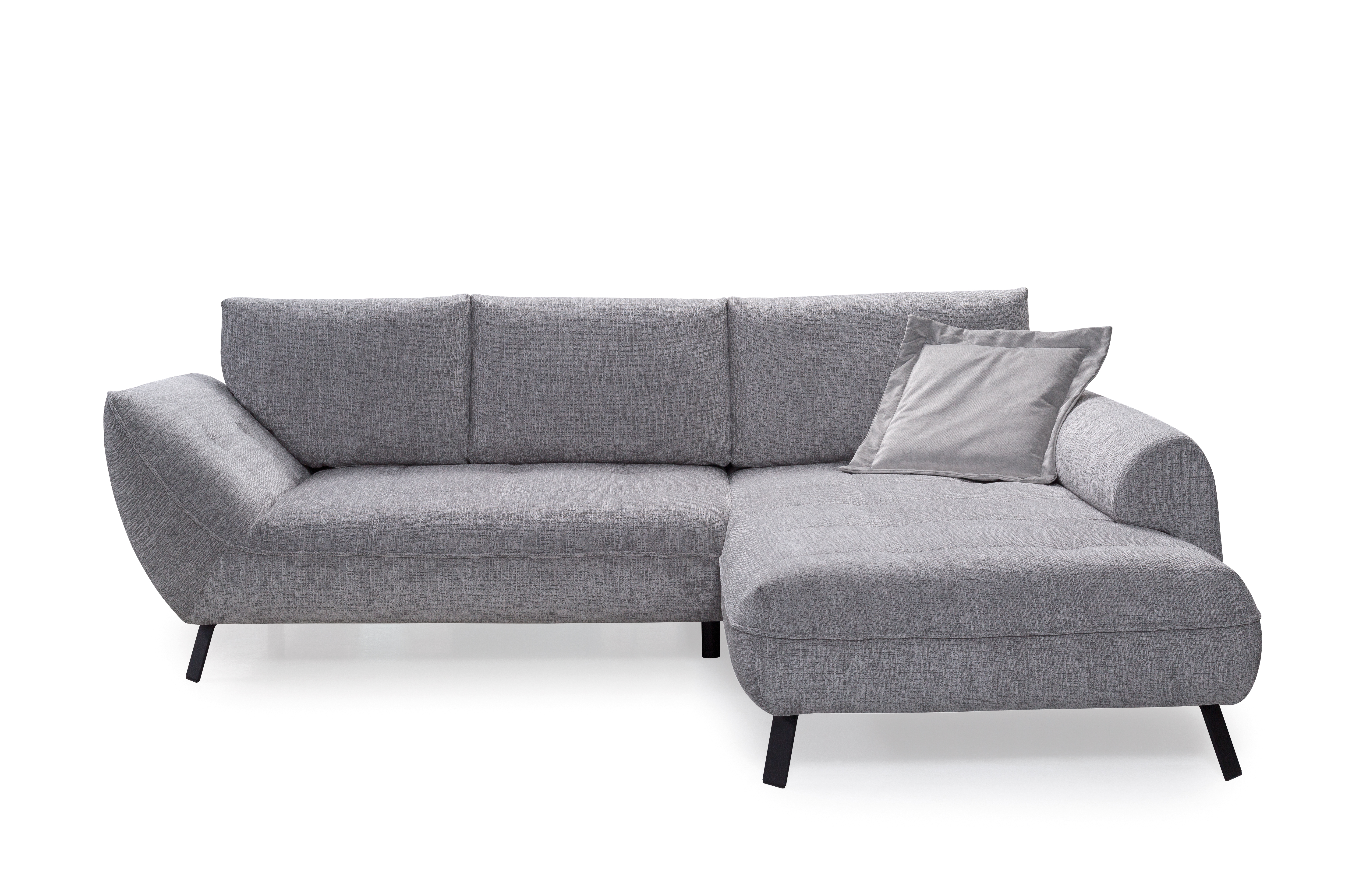 Bezug: Polsterecke im Stoff Kansas 14 in der Farbe dunkelgrau aus 100% Polyester; Plaidkissen im Stoff Tiffany 15 in silberfarben aus 100% Polyester
