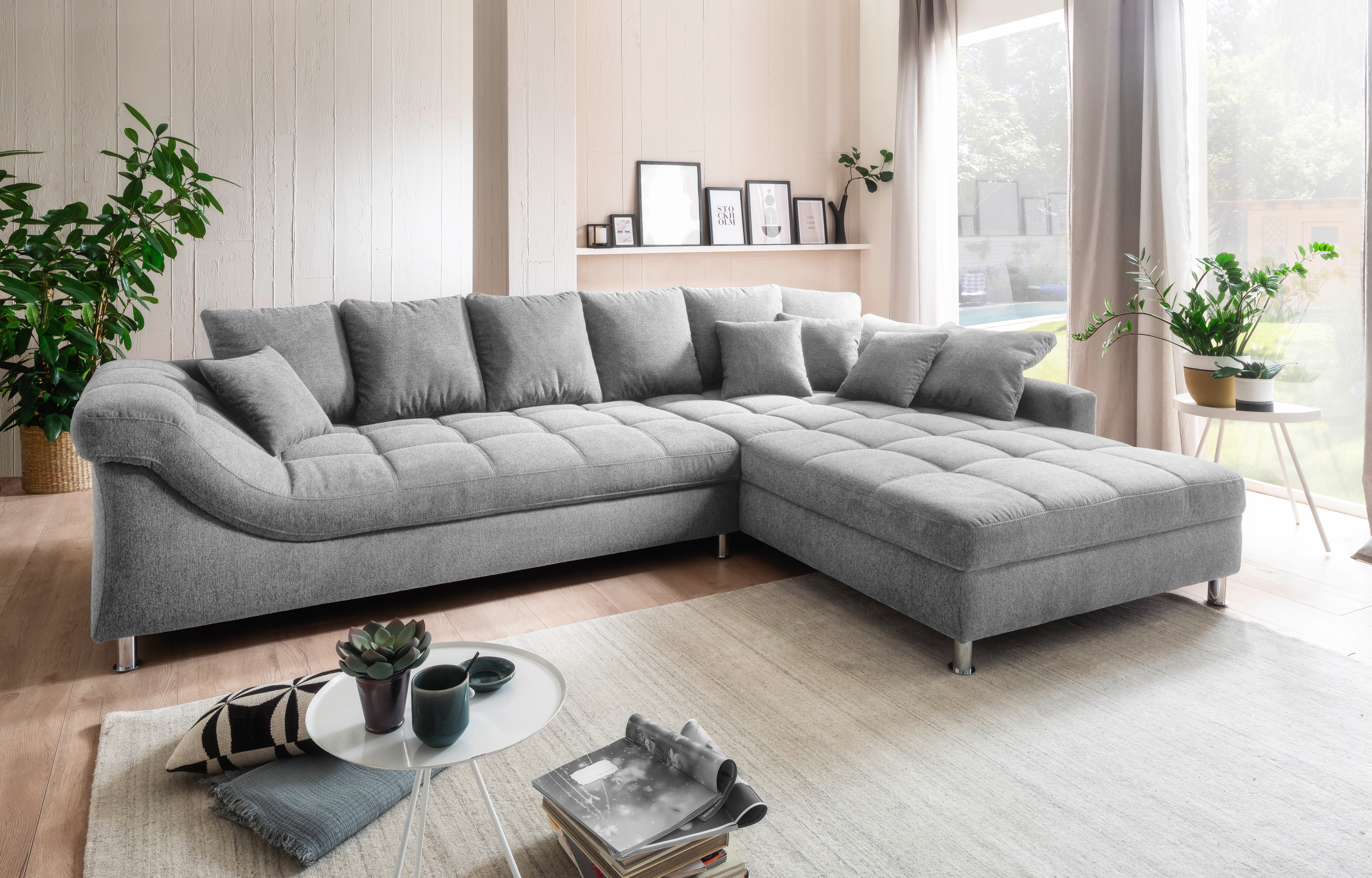 | Ausstattung Polster: | Ottomane rechts links wählbar, Rücken echt, inkl. Kissen | ||