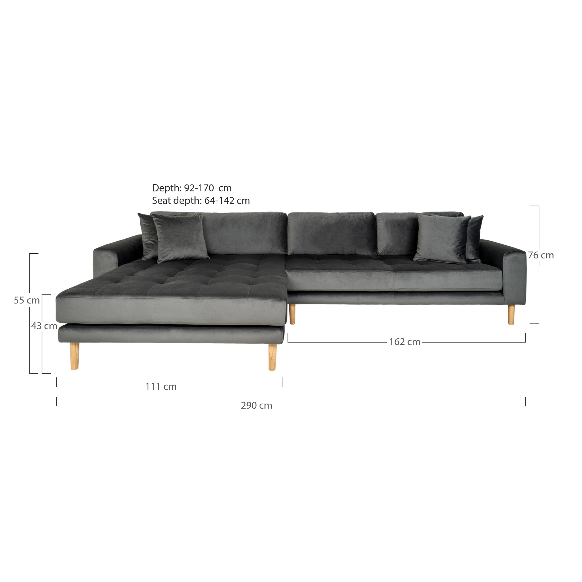 | Ausstattung Polster: | Ottomane links, Rücken echt, inkl. Kissen | ||
