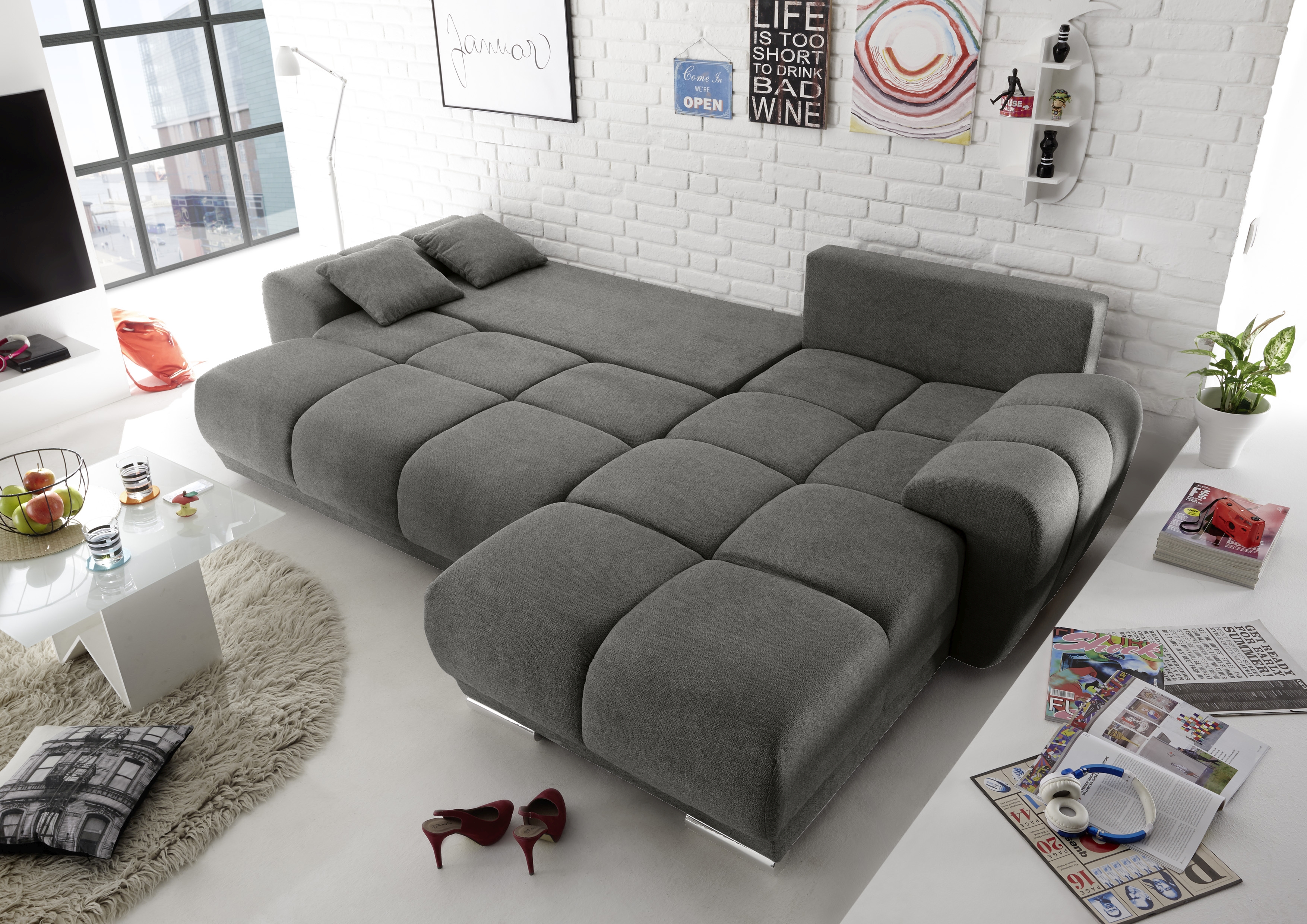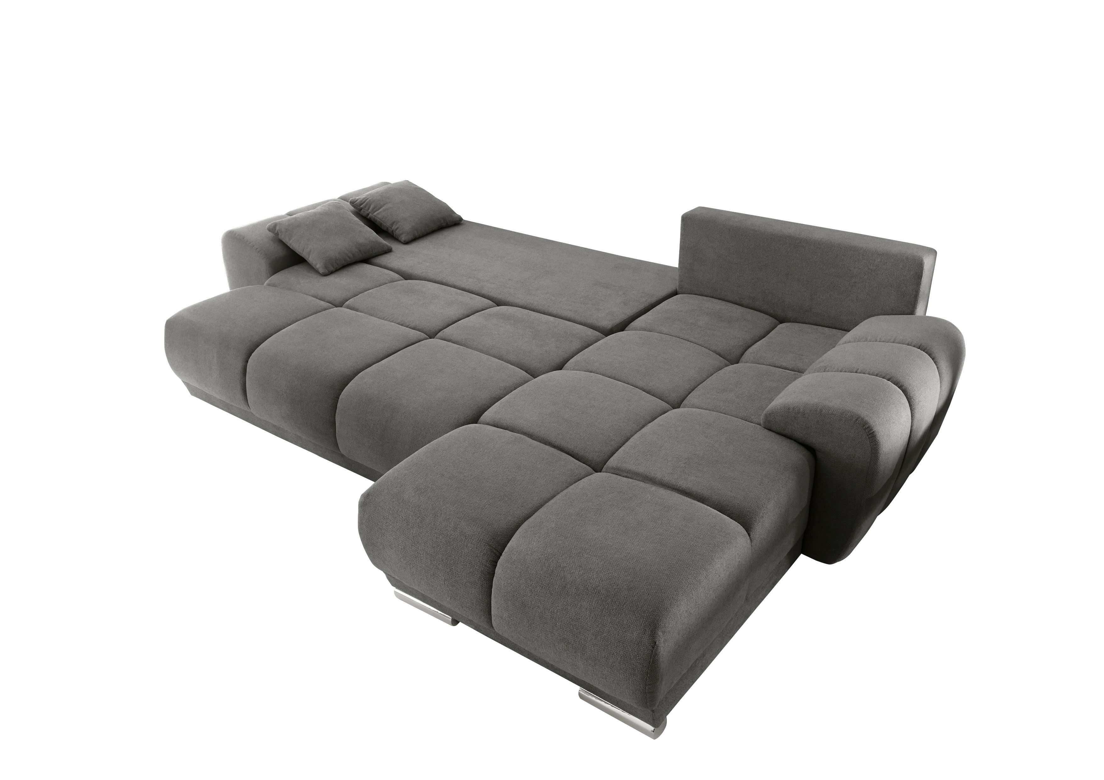 | Ausstattung Polster: | Ottomane rechts links wählbar, Rücken echt, inkl. Bettkasten, inkl. Kissen | ||