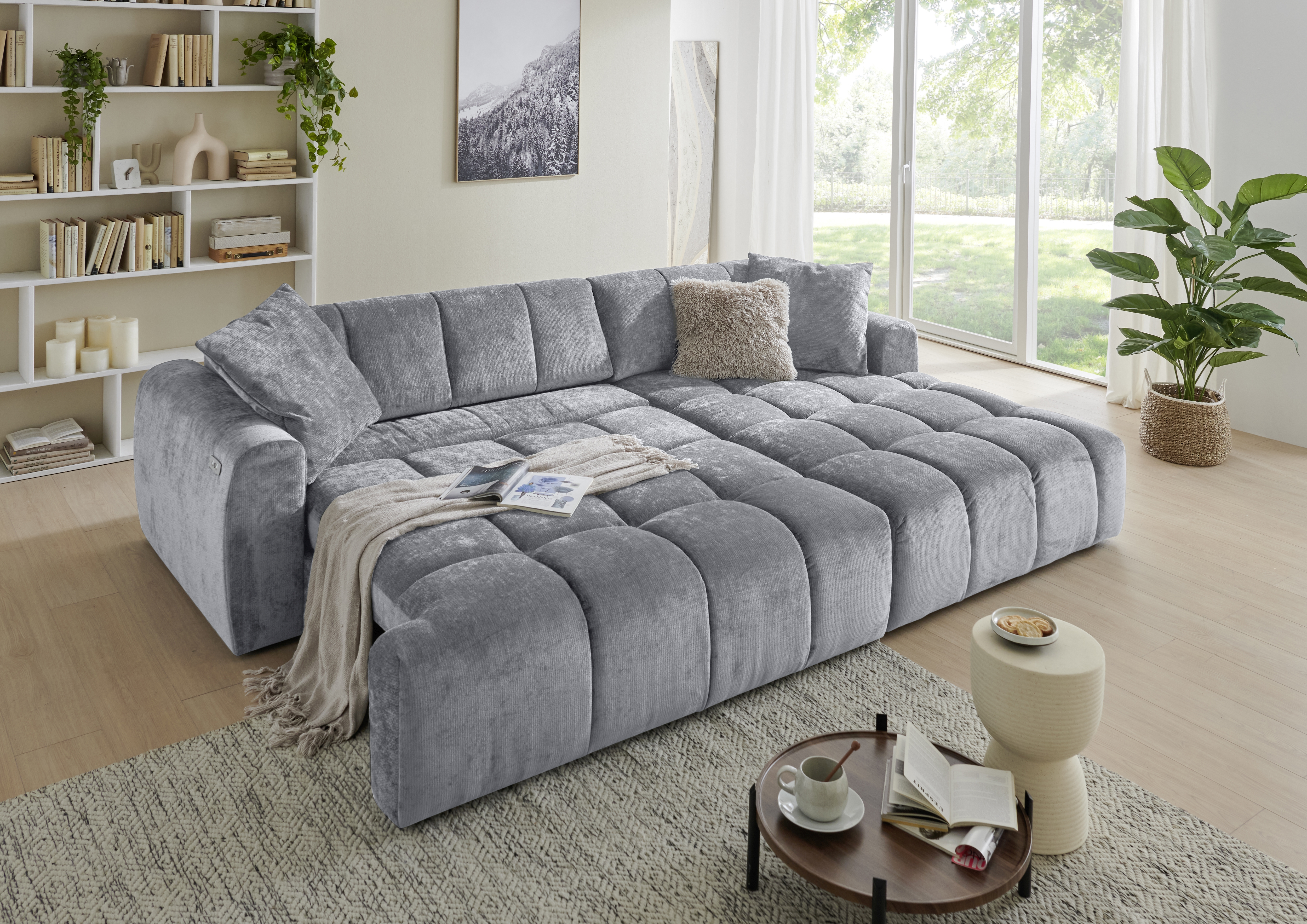 | Ausstattung Polster: | Ottomane rechts, Sitzvorzug motorisch, inkl. Kissen | ||