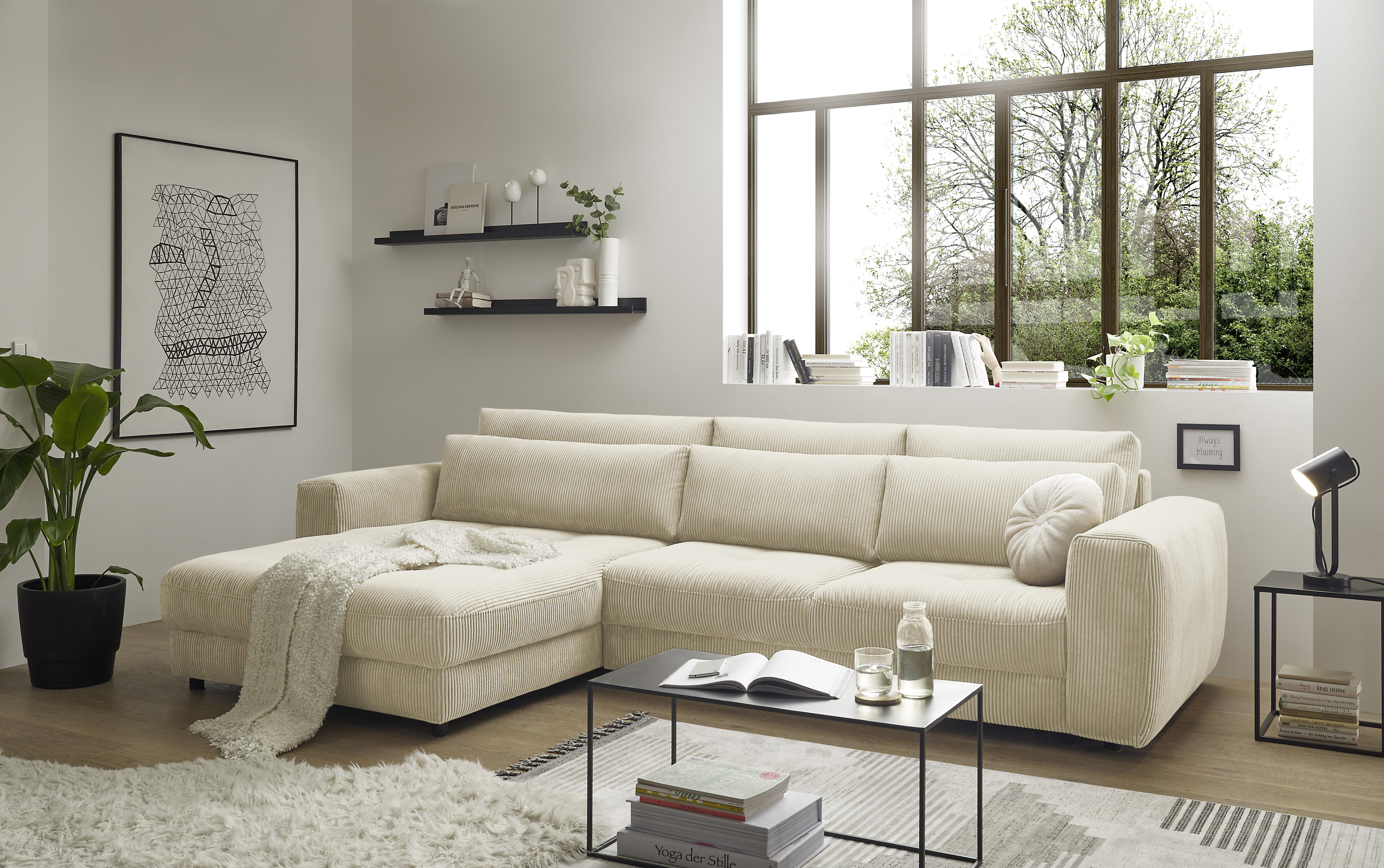 | Ausstattung Polster: | Rücken echt, inkl. Kissen | ||
