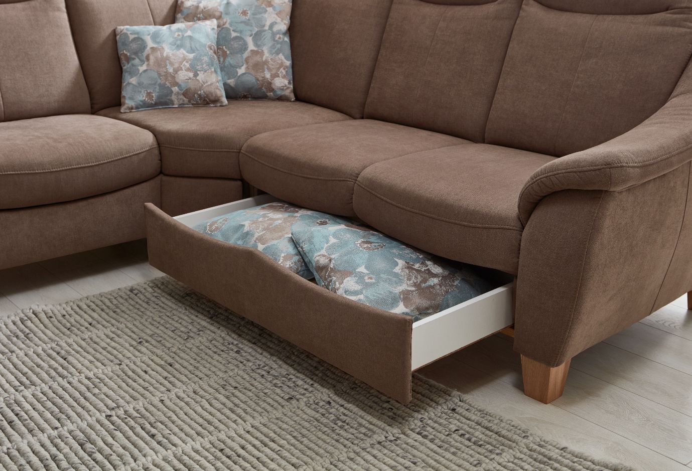 | Ausstattung Polster: | Kopfstützen, Rücken echt, inkl. Bettkasten | ||