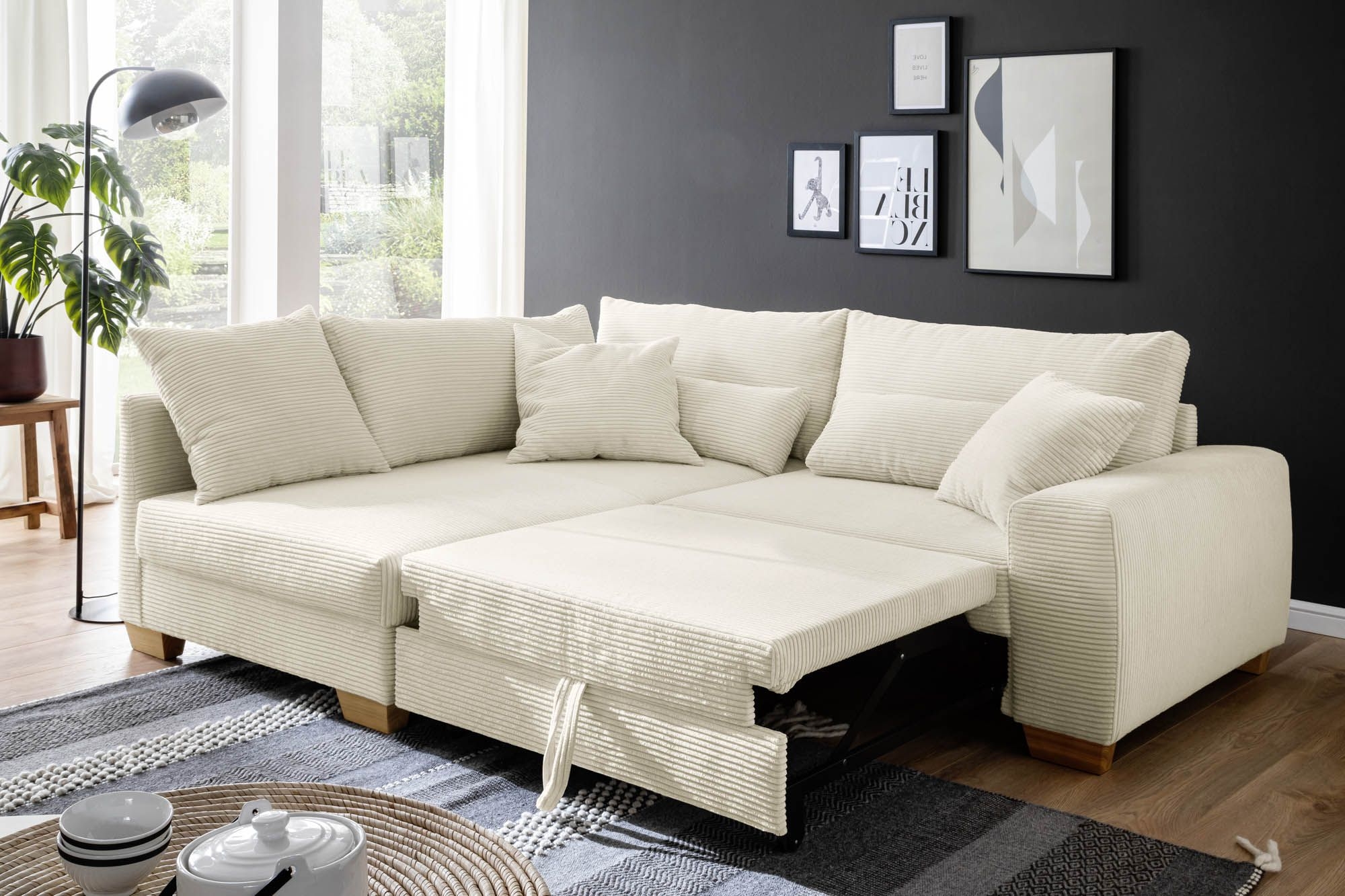 | Ausstattung Polster: | Ottomane links, Rücken echt, inkl. Kissen | ||