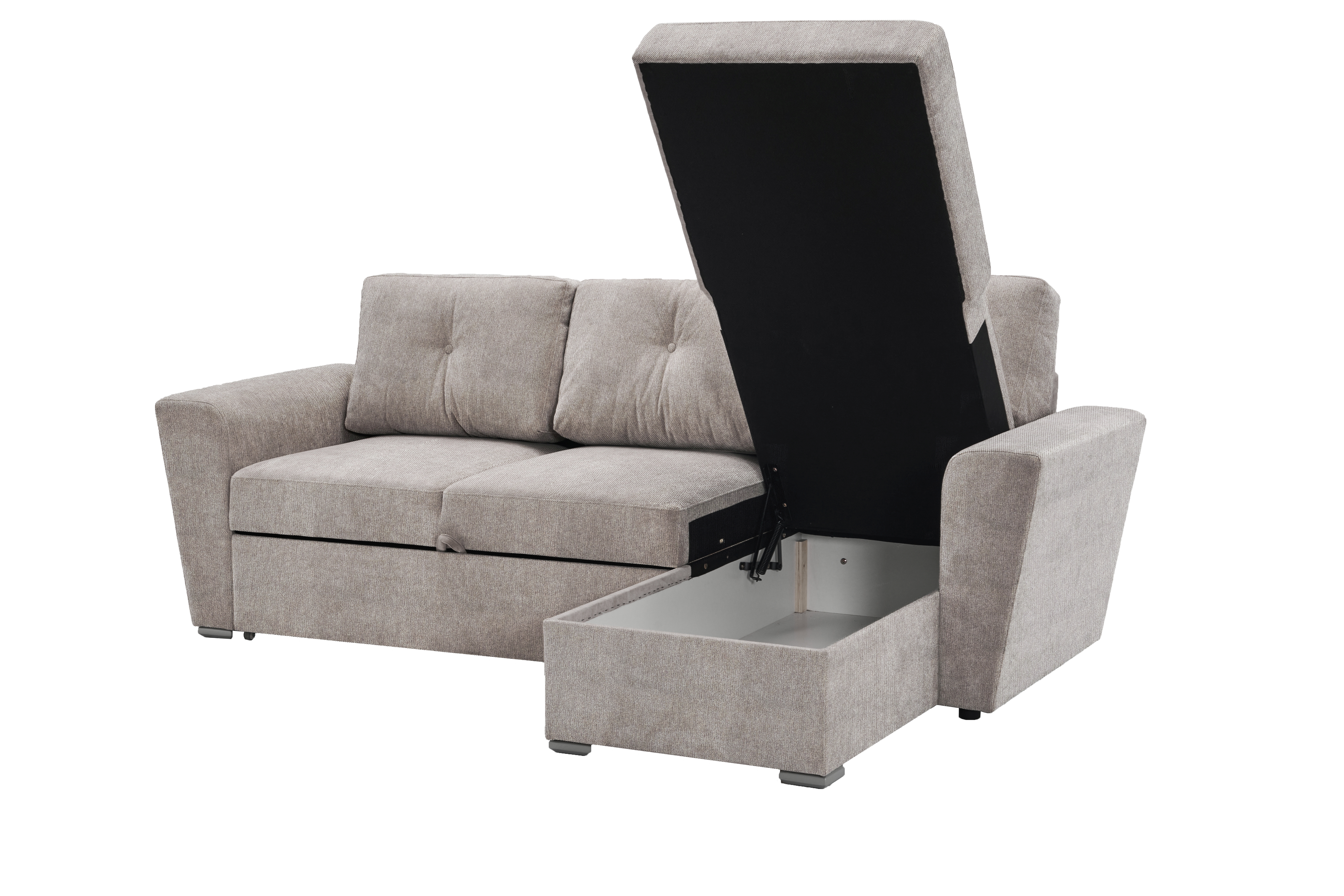 - Integrierter Stauraum in der Recamiere für Decken und Kissen