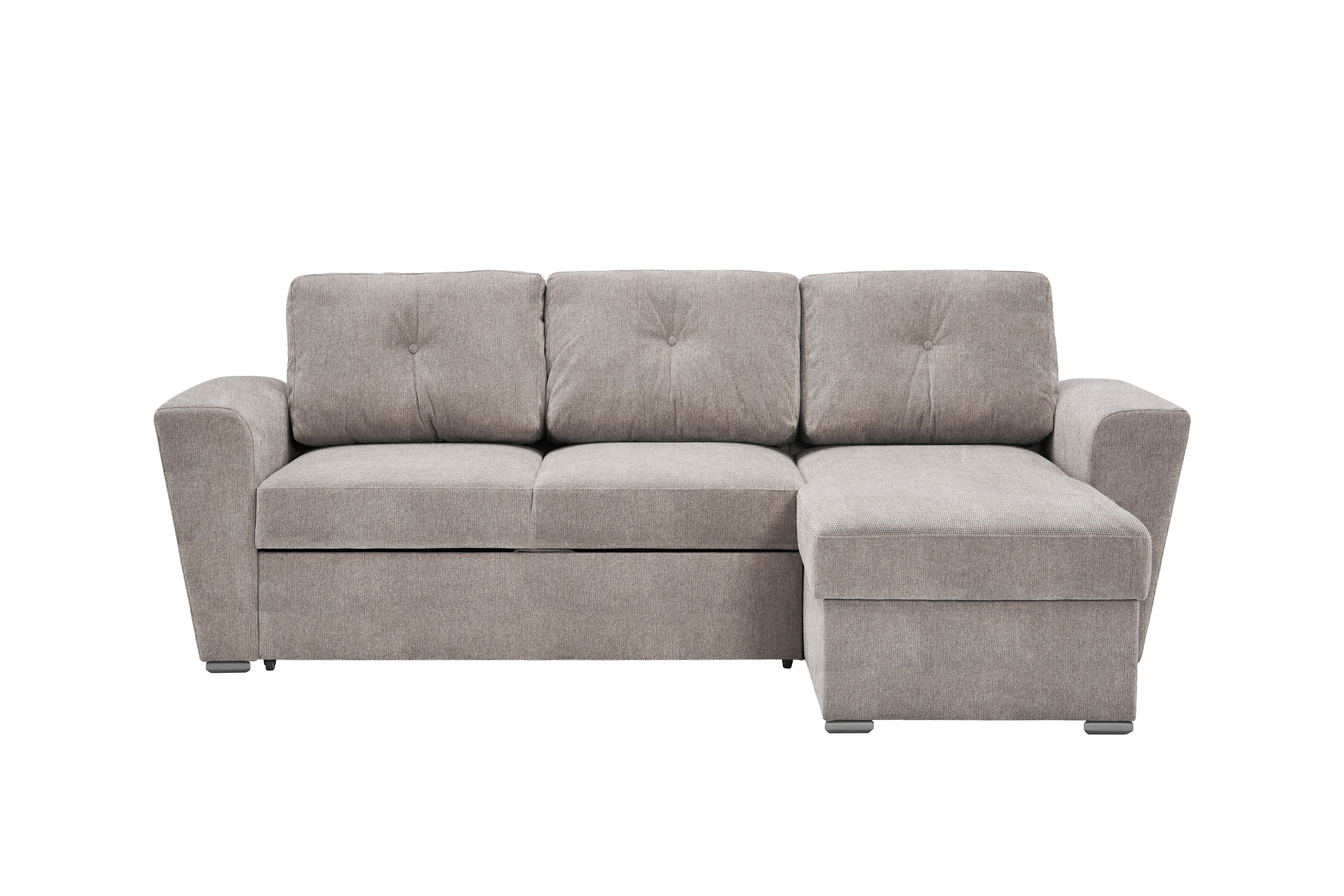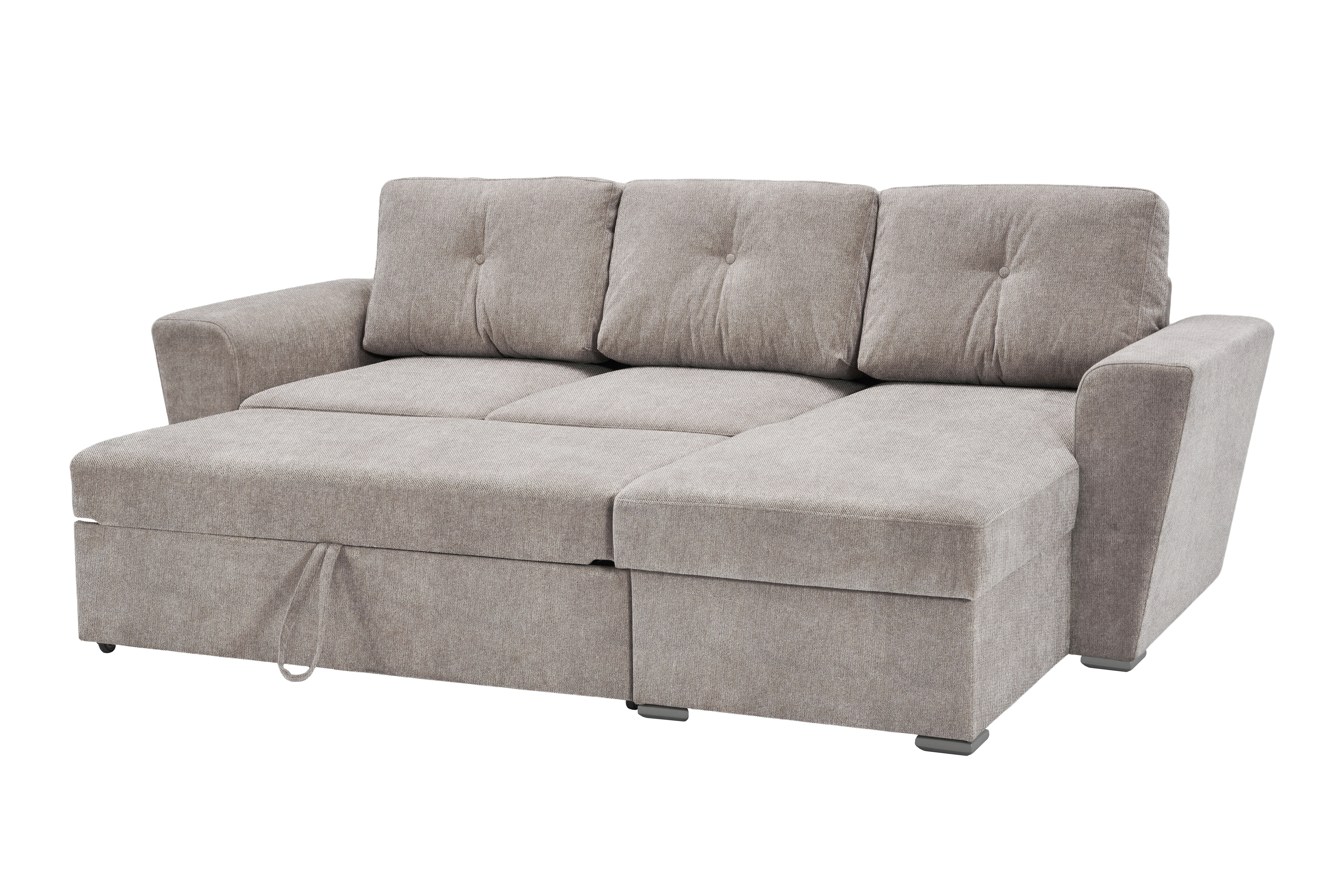 Diese Polsterecke überzeugt mit praktischer Funktion und pflegeleichtem Bezug in hellbraun. Der Stoff Lord 35 aus 100 % Polyester ist strapazierfähig und alltagstauglich. Mit wenigen Handgriffen lässt sich das Sofa in ein komfortables Schlafsofa verwandeln und bietet so eine flexible Lösung für Übernachtungsbesuch. Zusätzlichen Stauraum hält die integrierte Recamiere bereit – ideal für Decken, Kissen oder andere Wohnaccessoires. Durch die kompakte Bauweise eignet sich das Modell sowohl für Wohnräume als auch für kleinere Apartments. Eine funktionale Sitz- und Schlafgelegenheit zu einem attraktiven Preis-Leistungs-Verhältnis.