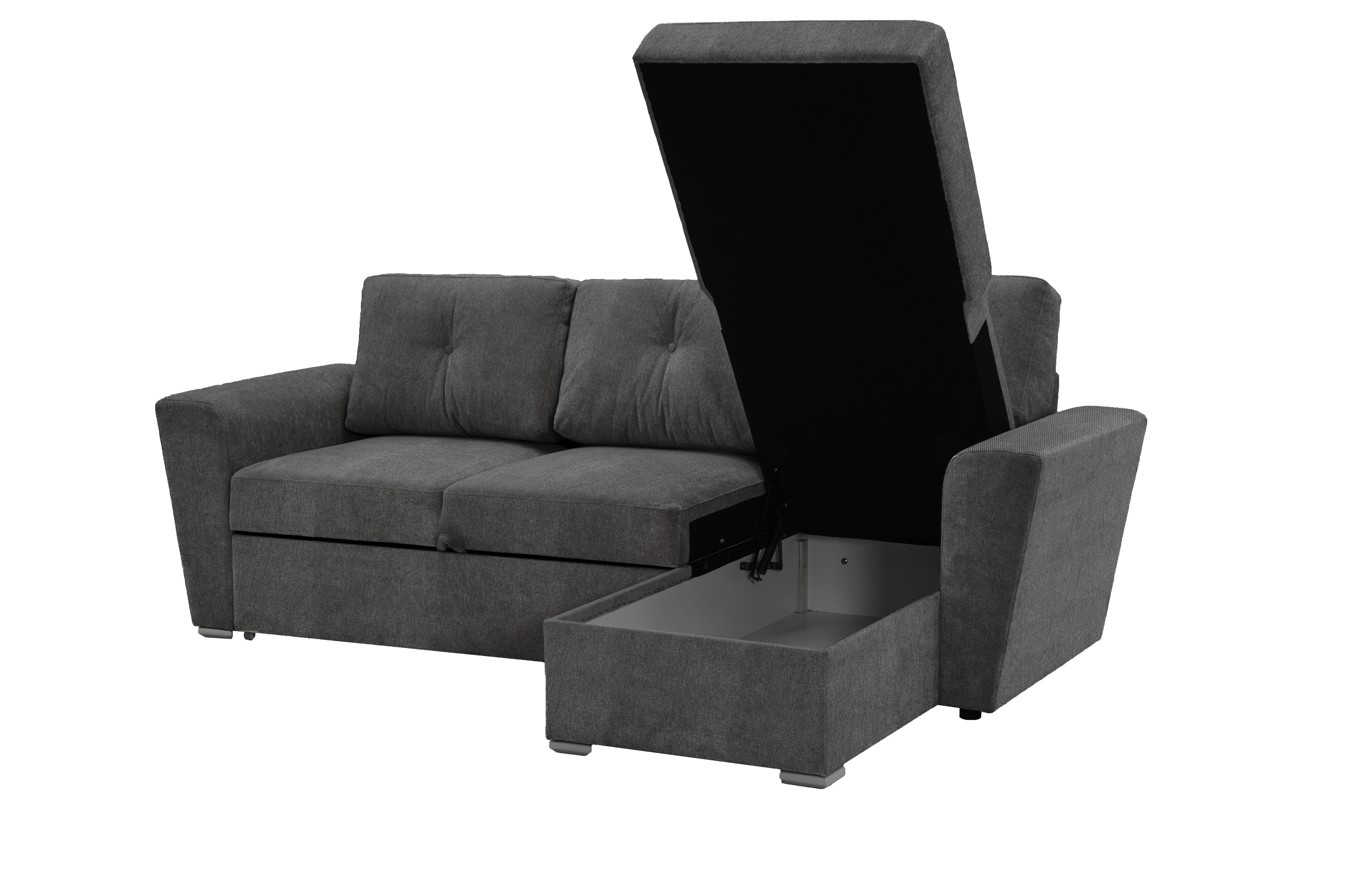 Diese Polsterecke in schwarzem Stoffbezug bietet eine praktische Kombination aus Sitzkomfort und Funktionalität. Der Bezug Lord aus 100 % Polyester ist strapazierfähig und pflegeleicht – ideal für den täglichen Gebrauch. Dank der integrierten Schlaffunktion lässt sich die Polsterecke mit wenigen Handgriffen in eine Liegefläche verwandeln und eignet sich somit auch für Übernachtungsbesuch. In der Recamiere befindet sich zusätzlicher Stauraum für Decken, Kissen oder andere Wohnaccessoires. Durch ihre klare Form und die zeitlose Farbgebung passt sich die Polsterecke unterschiedlichen Wohnstilen an und bietet eine durchdachte Lösung zu einem attraktiven Preis.
