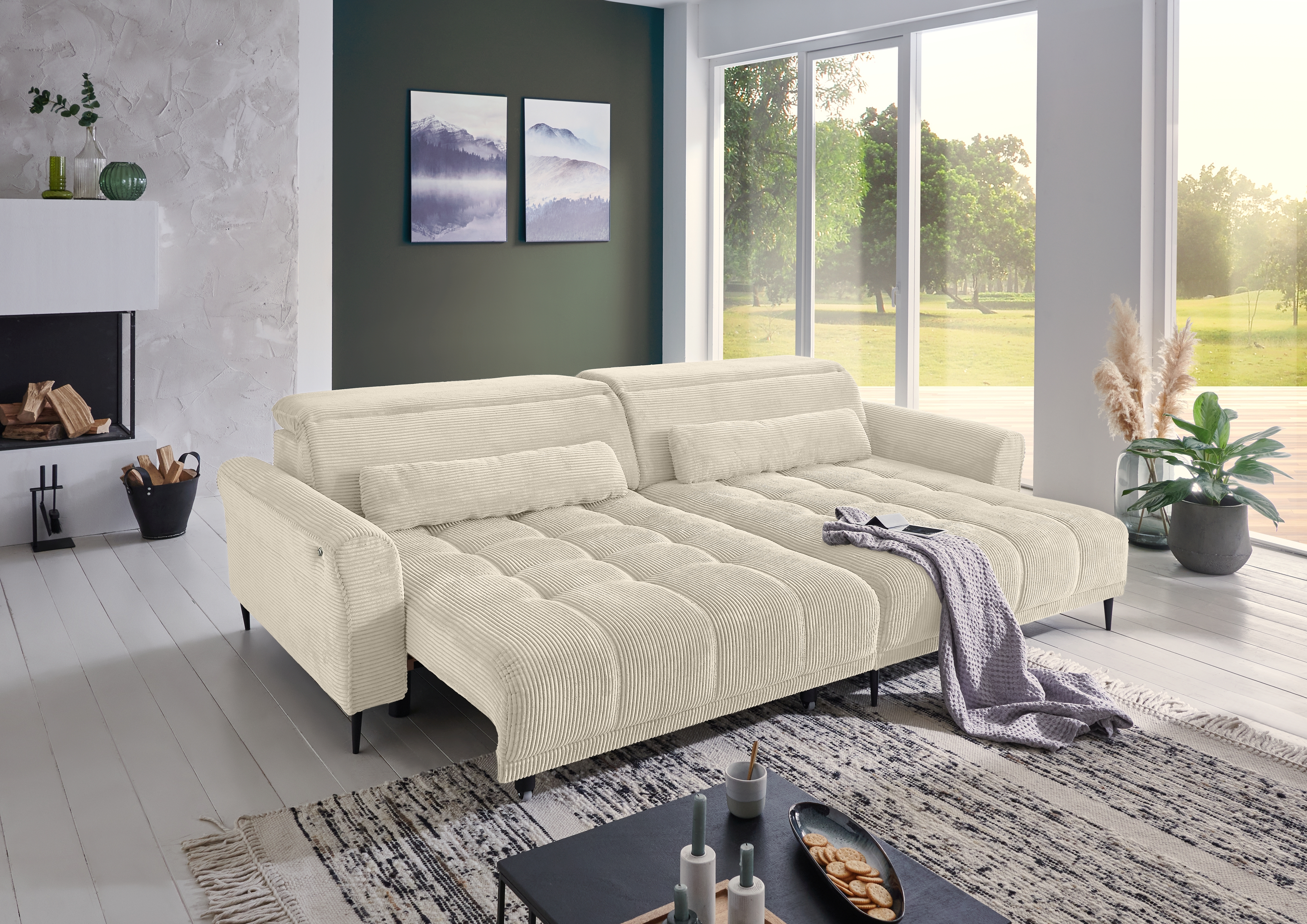 | Ausstattung Polster: | Kopfstützen, Ottomane rechts, Sitzvorzug motorisch, inkl. Kissen | ||